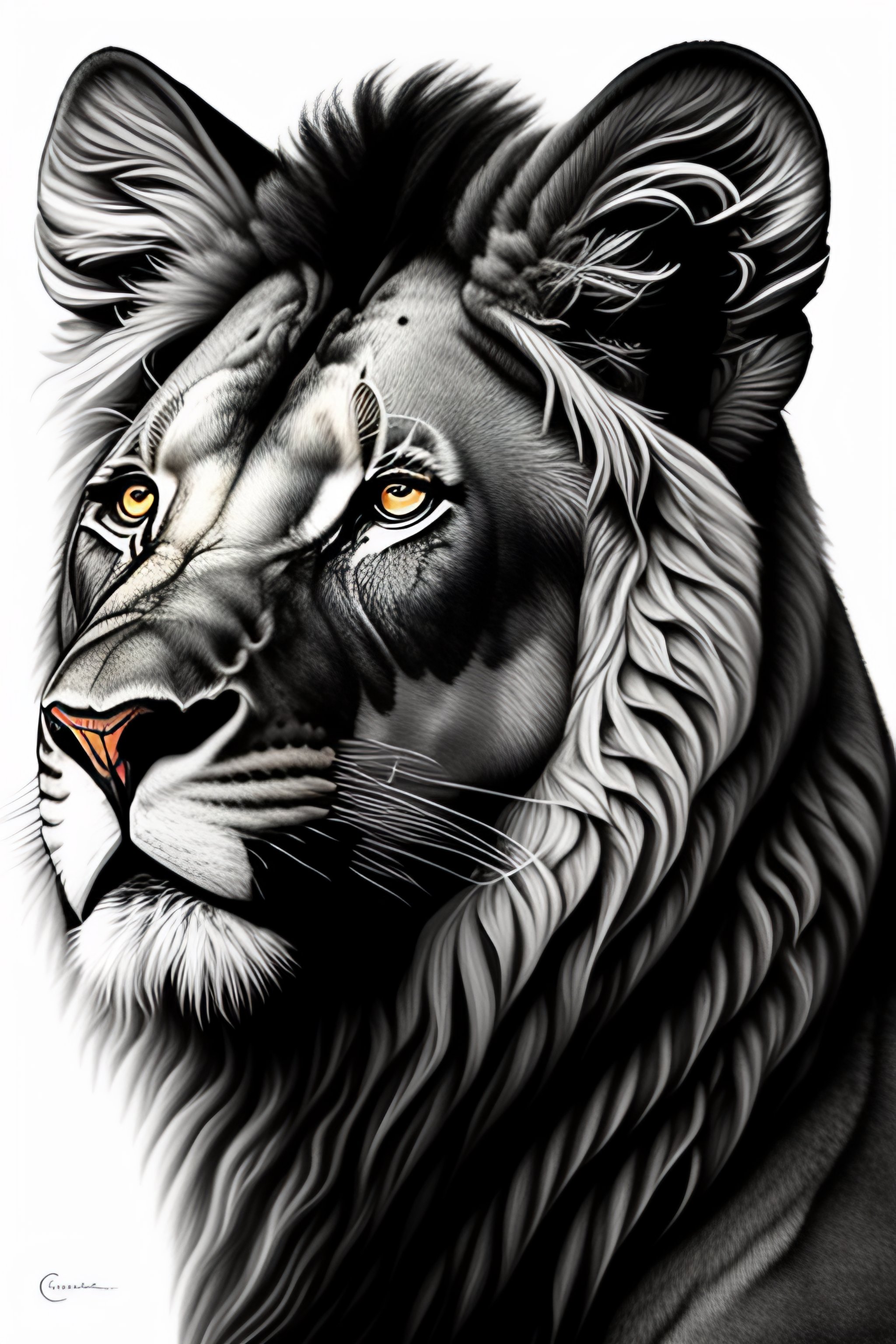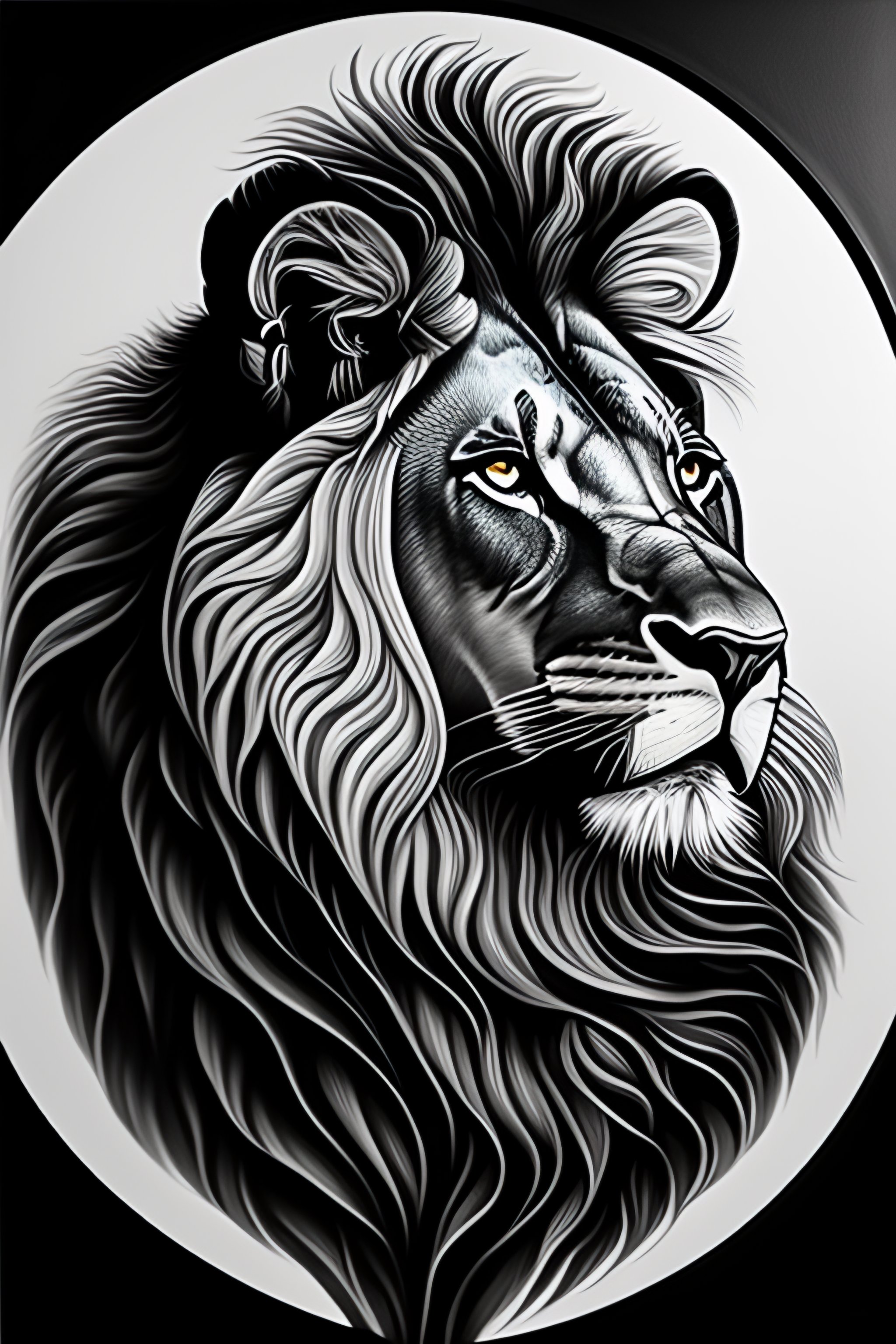 A symmetrical black and white drawing of a lion's head, a drawing by christabel dennison, lyco art, outlined art, high detailed