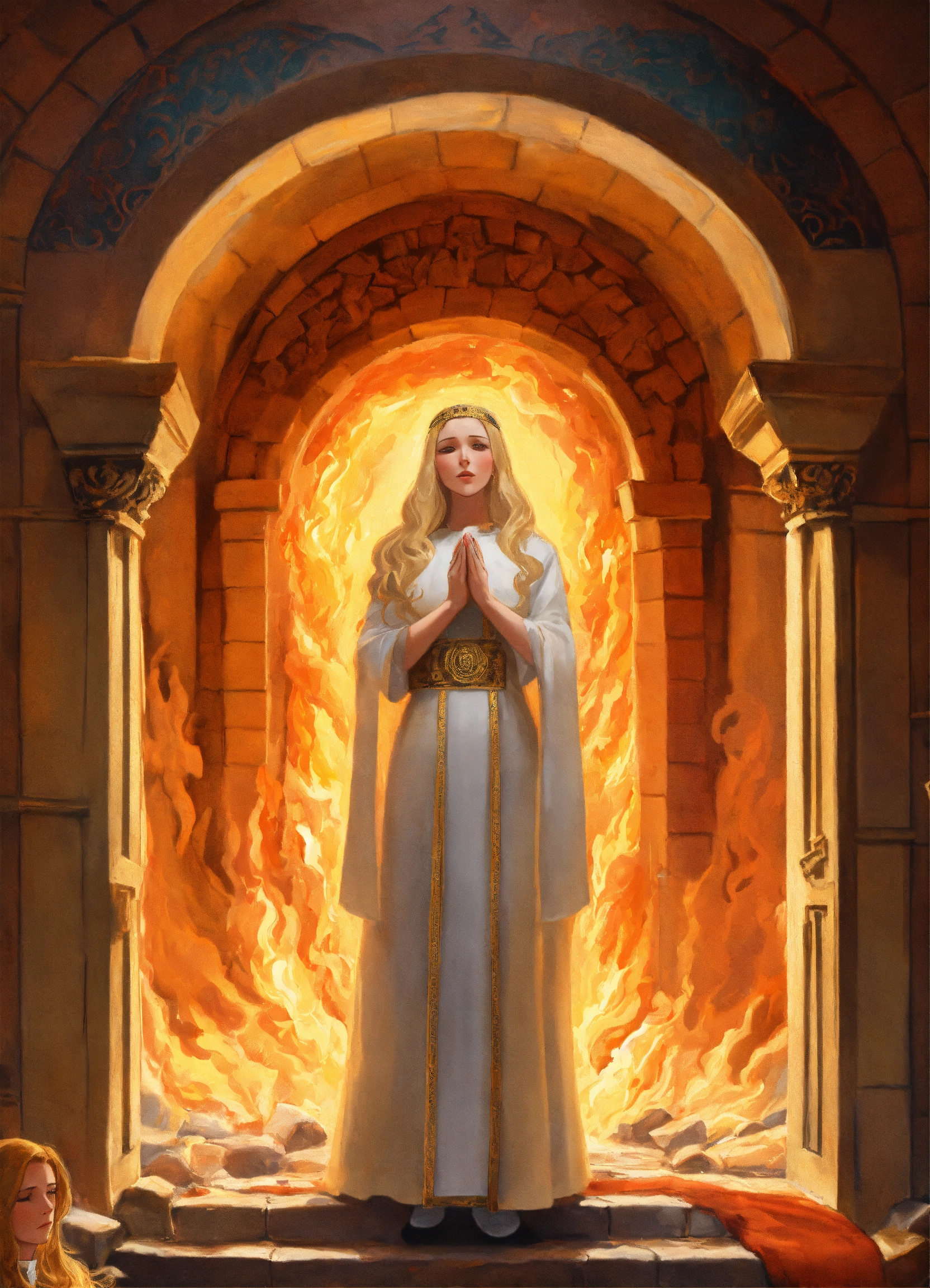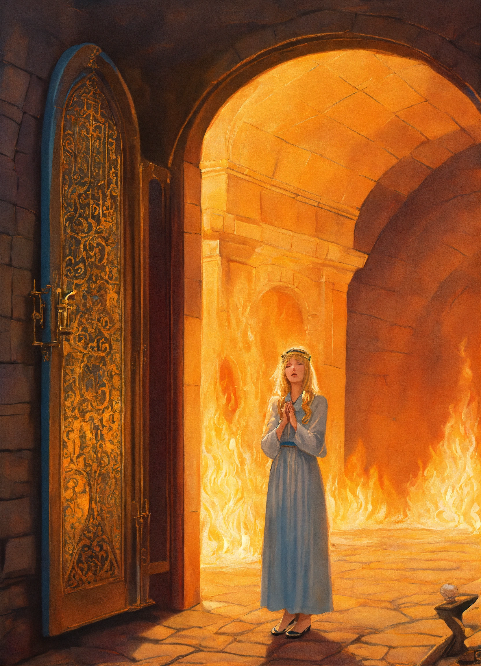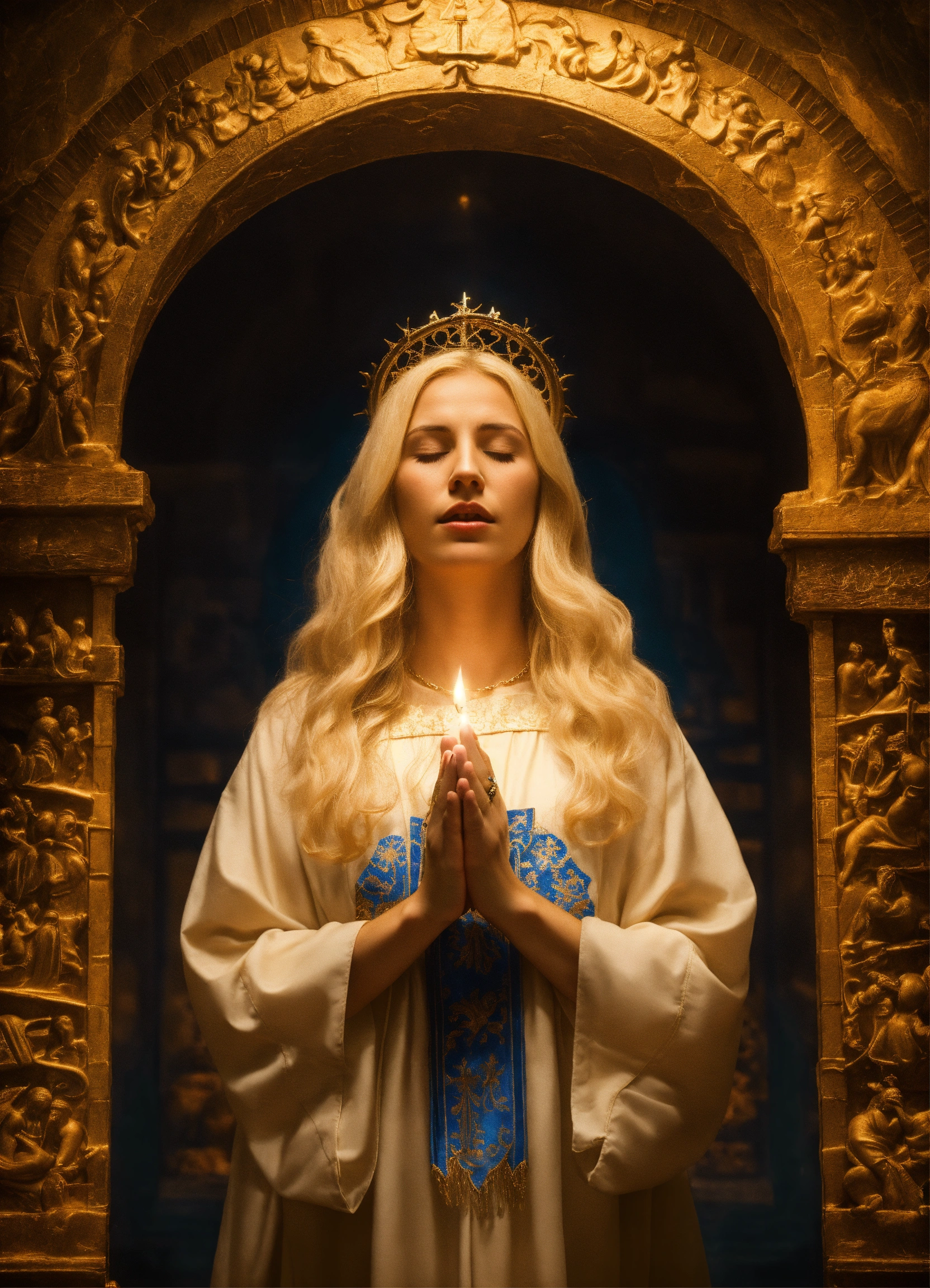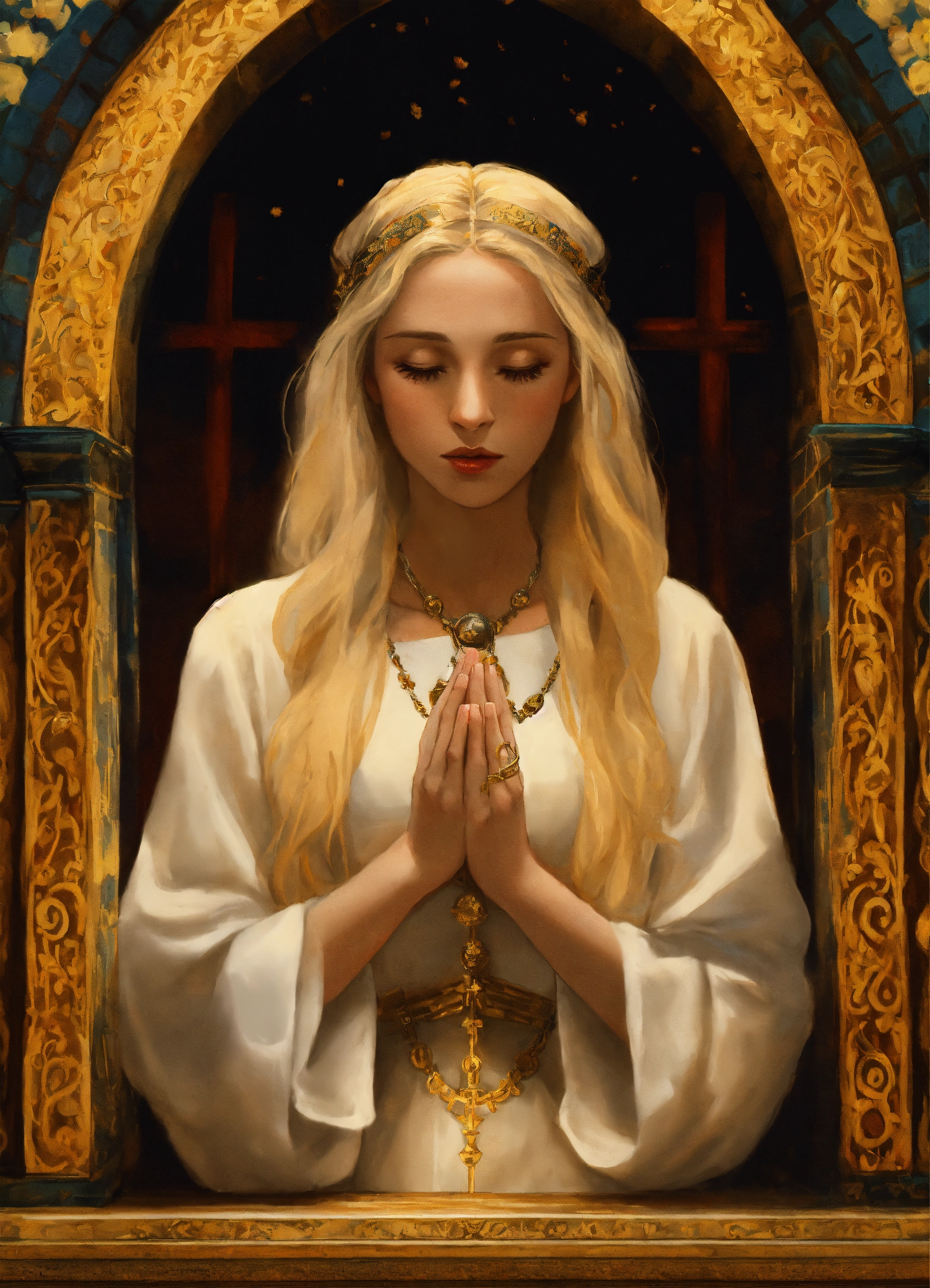 A jewish woman with a blond hair prays to god and open the gates of hell for her enemies
