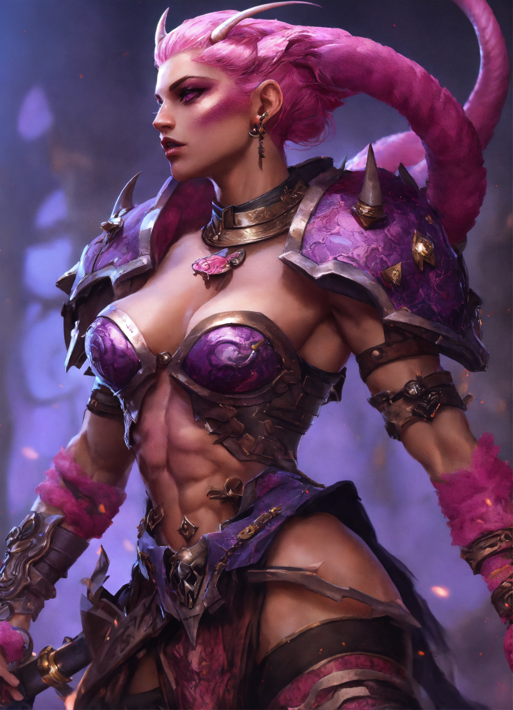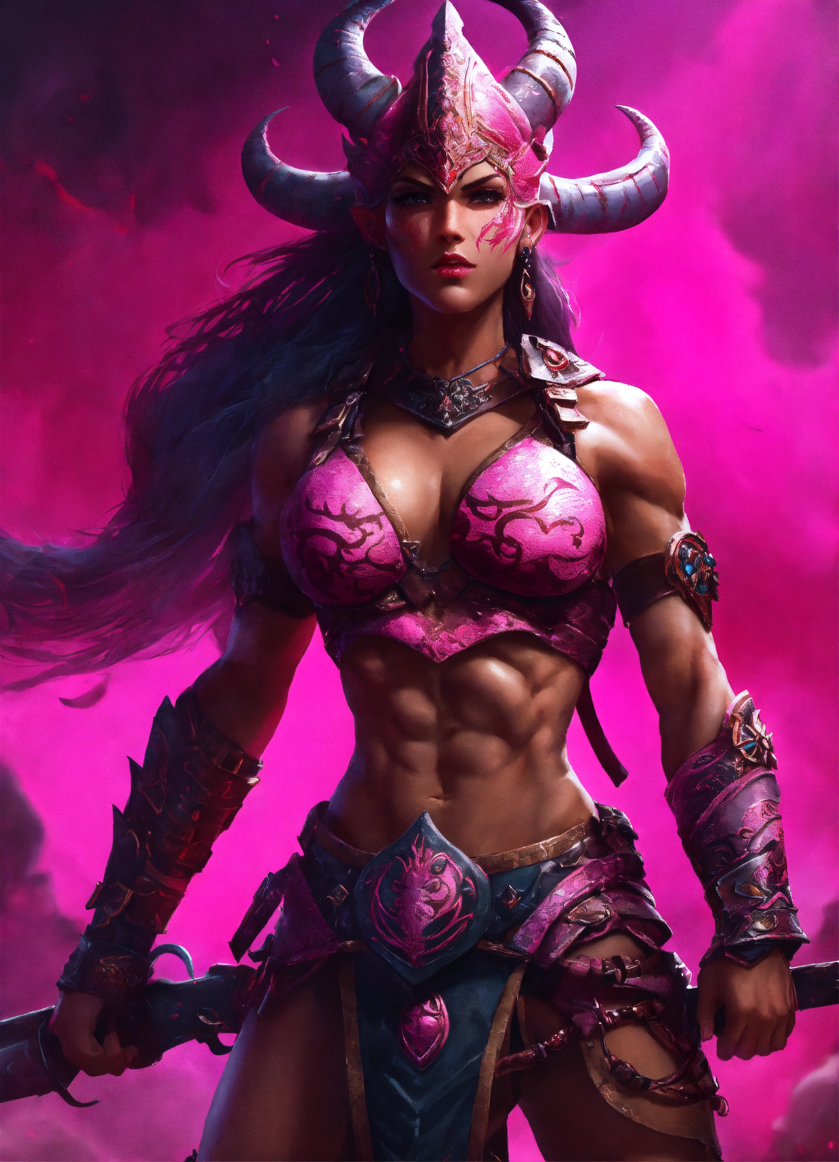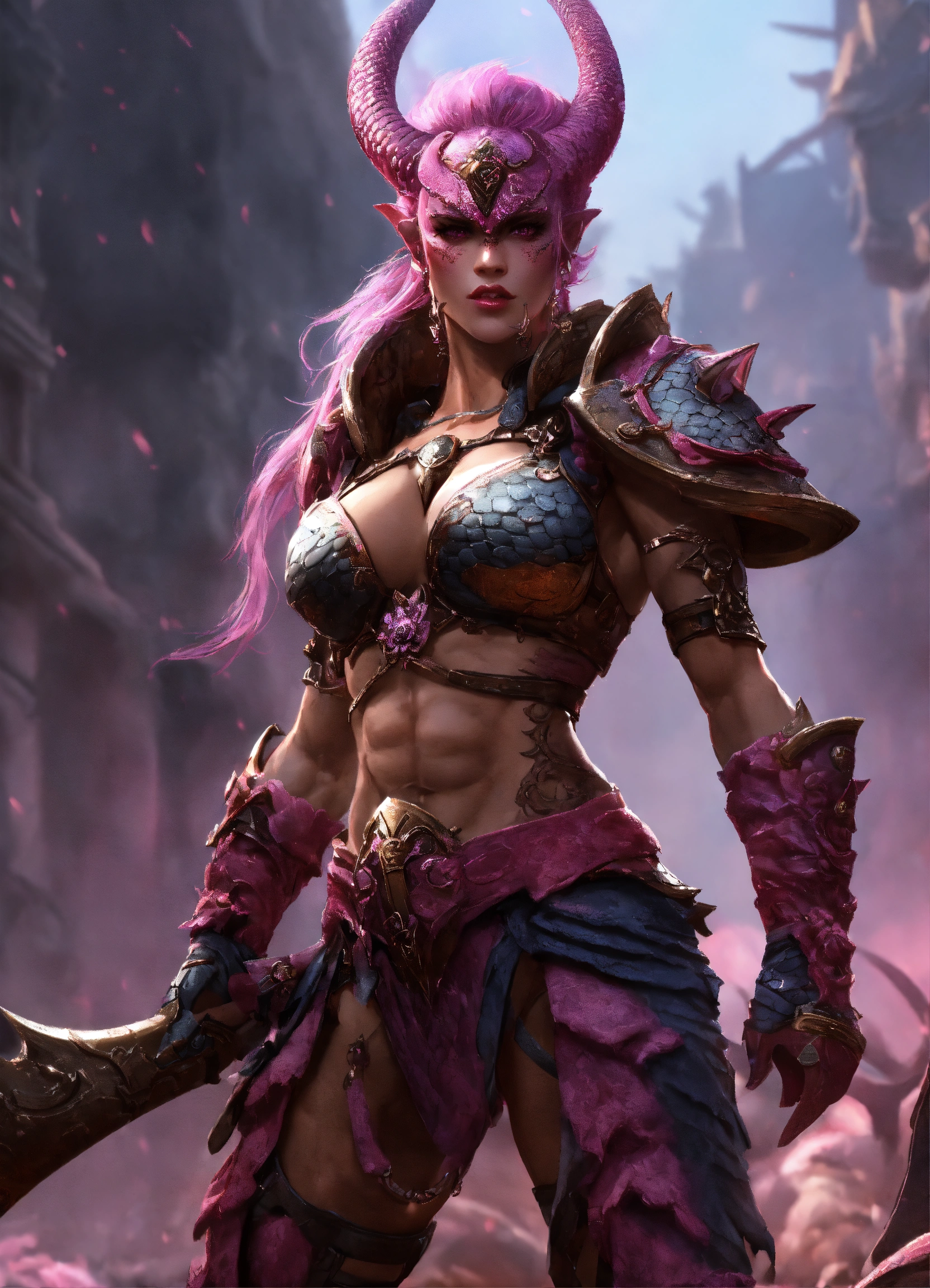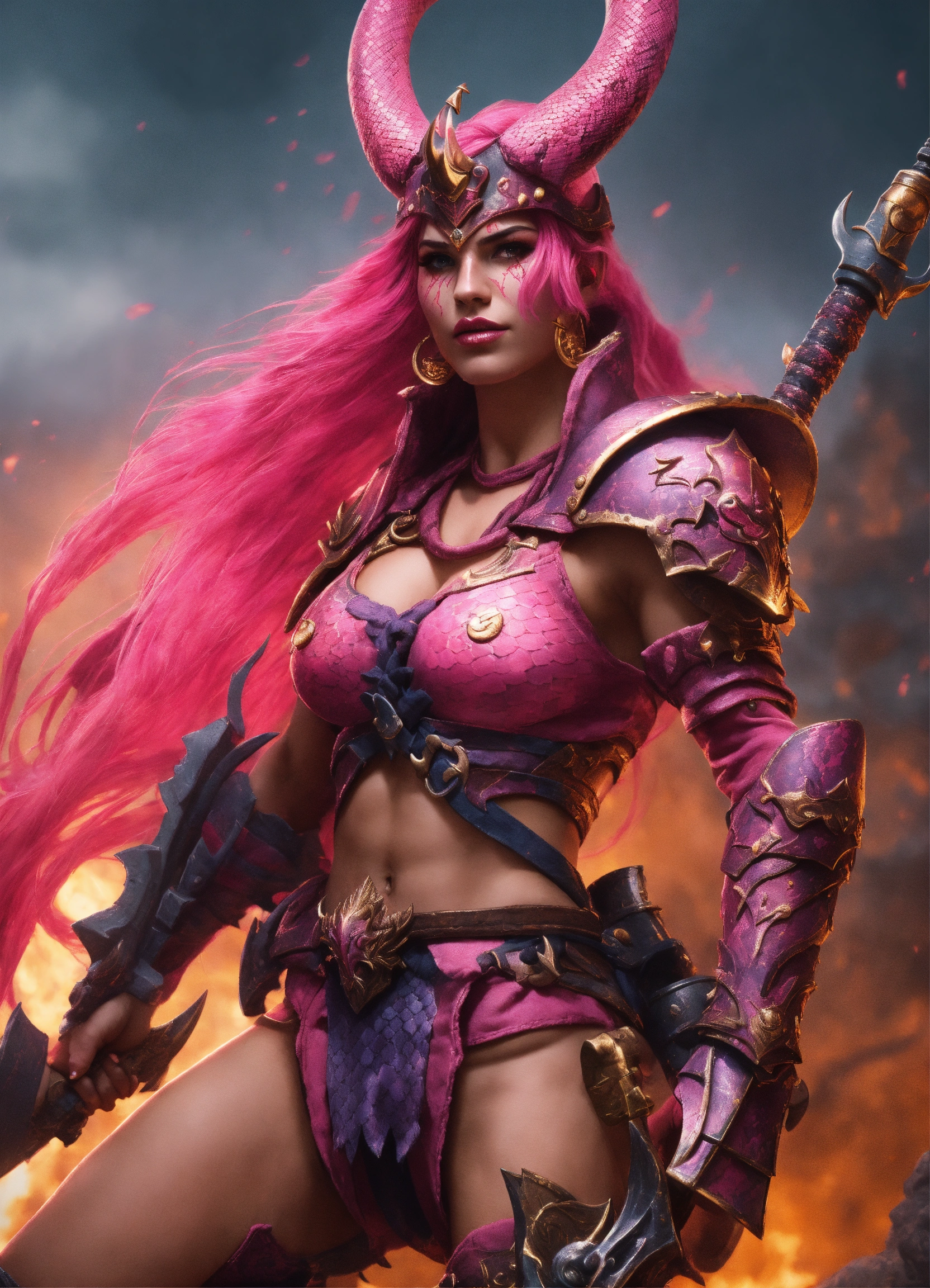 A muscular female chaos warrior of slaneesh, snake-headed with pink skin, warhammer fantasy slaanesh art, 4k
