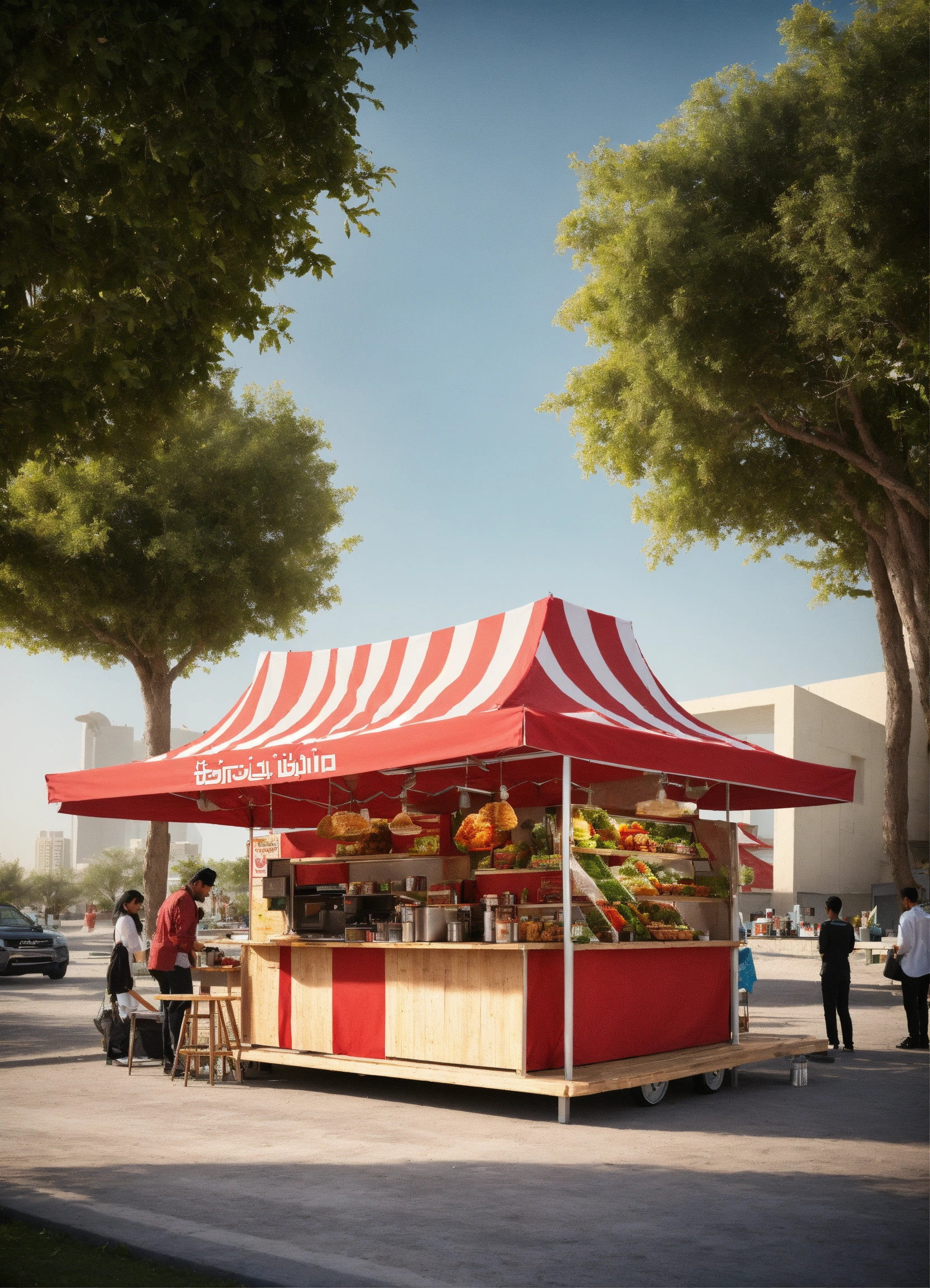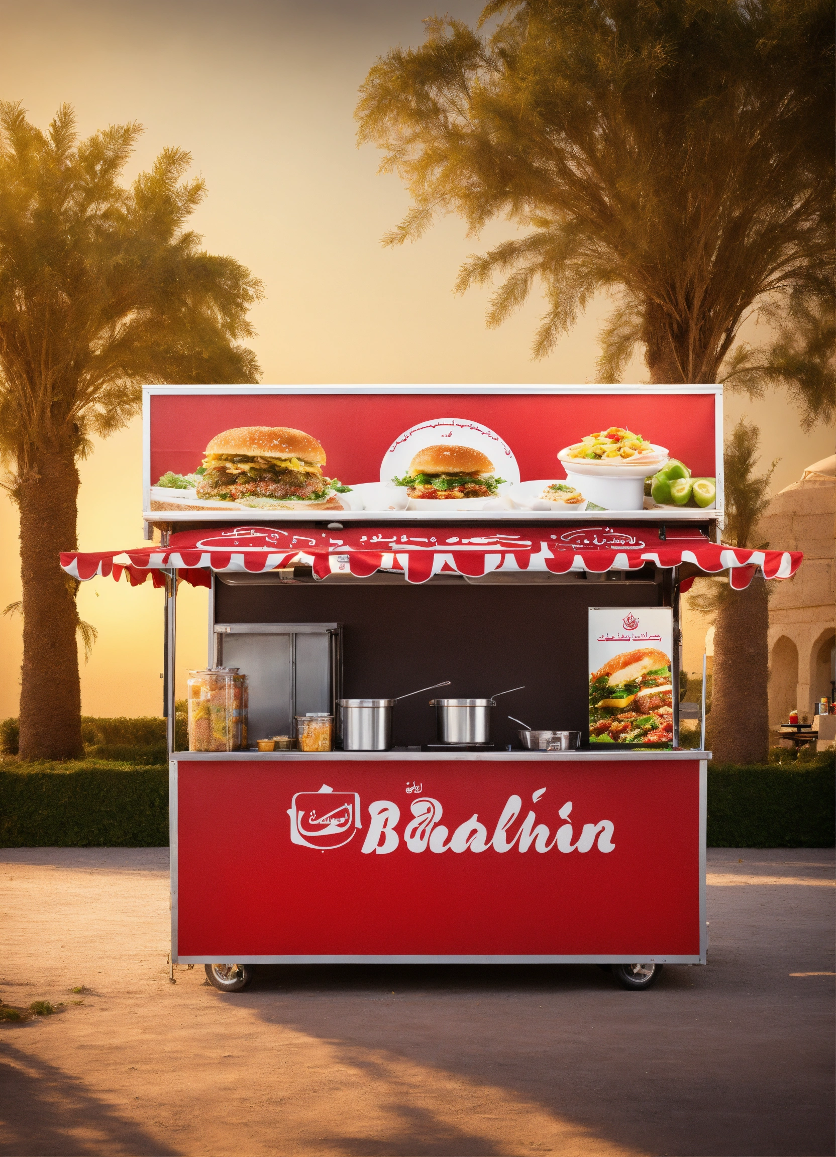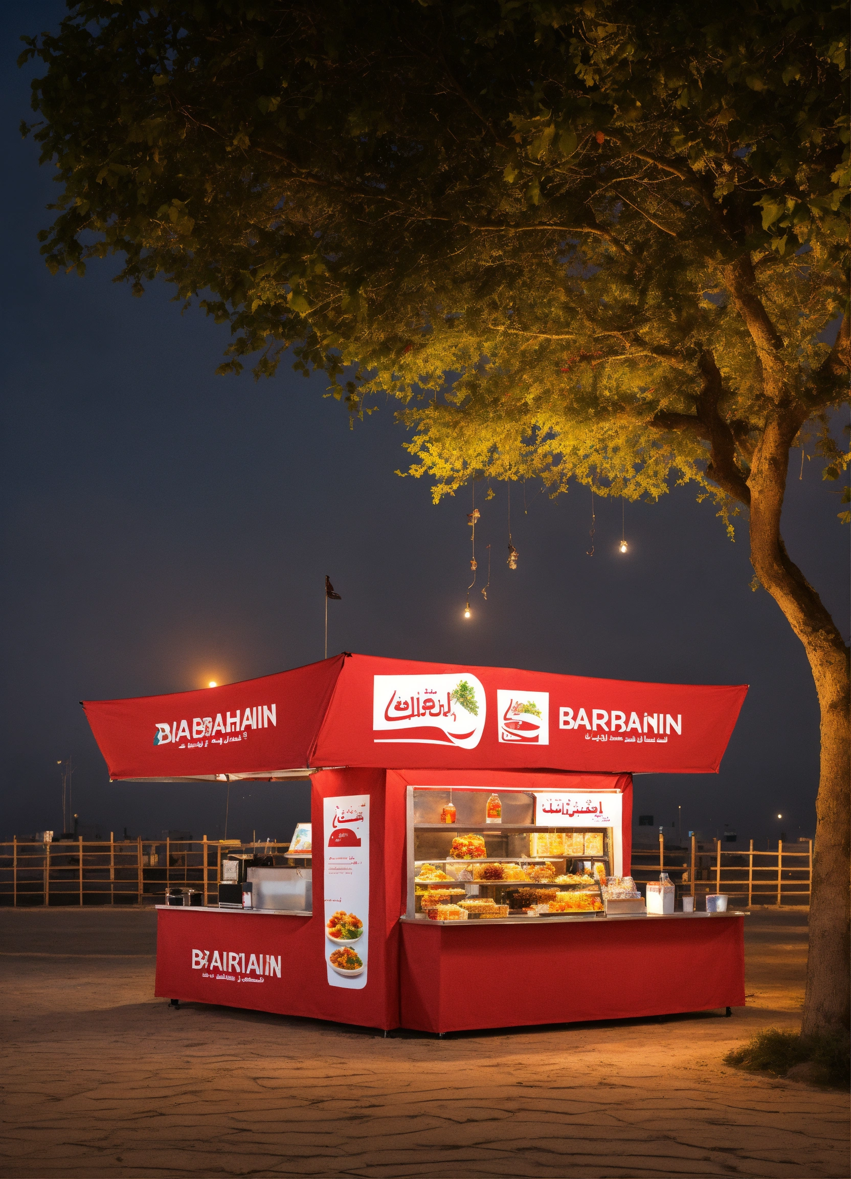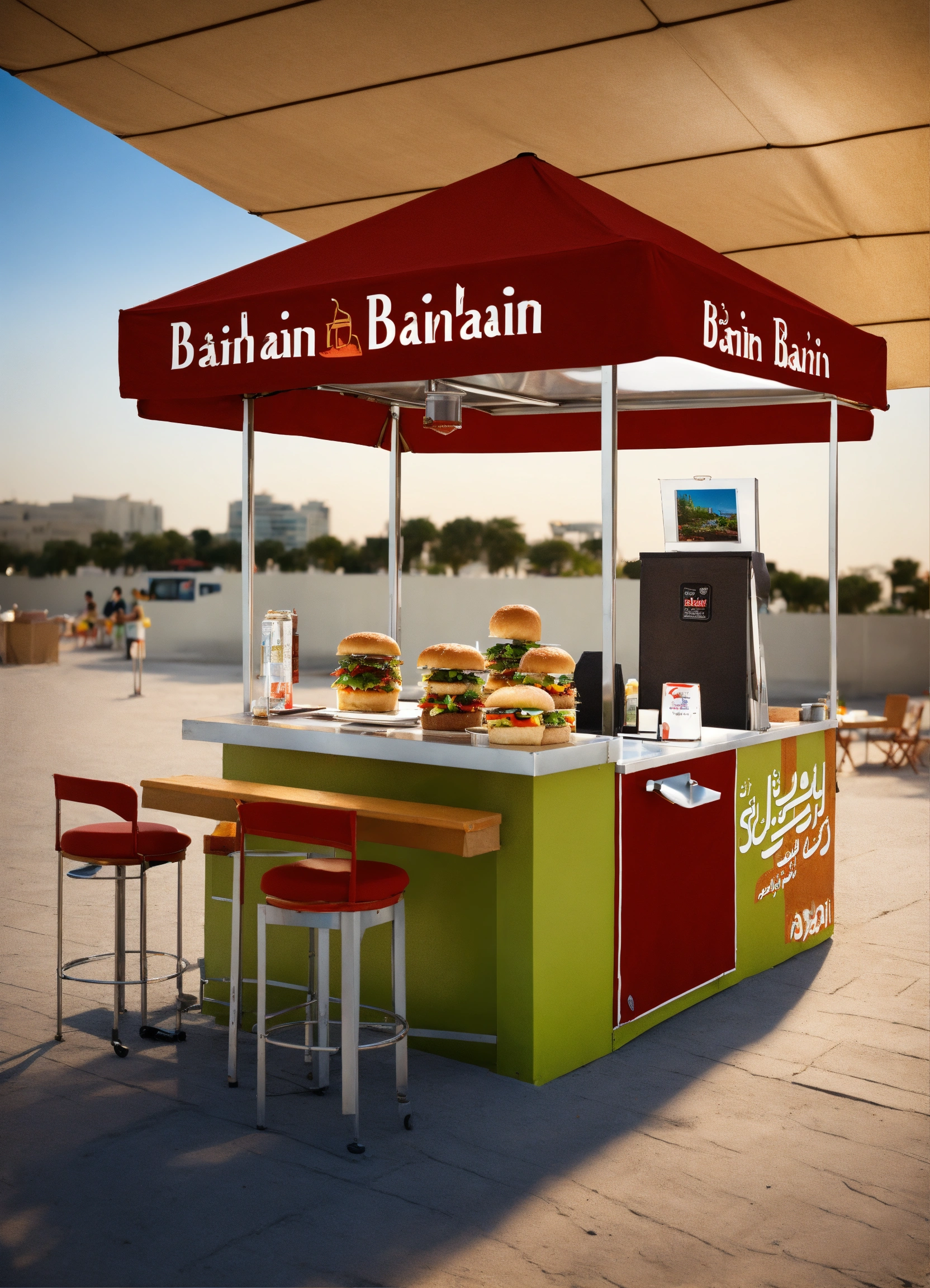 "visualize the 'taste of bahrain' small food kiosk tent style