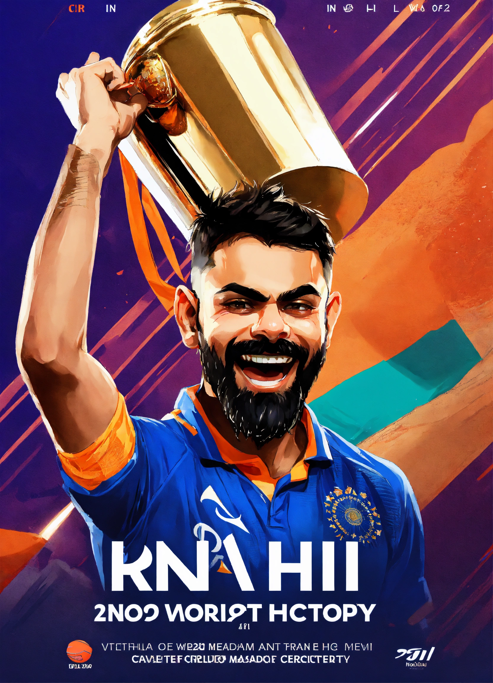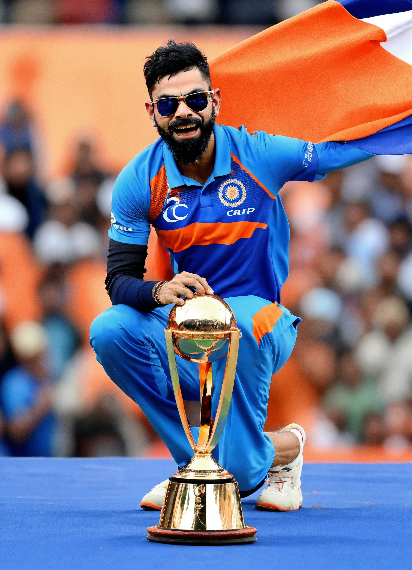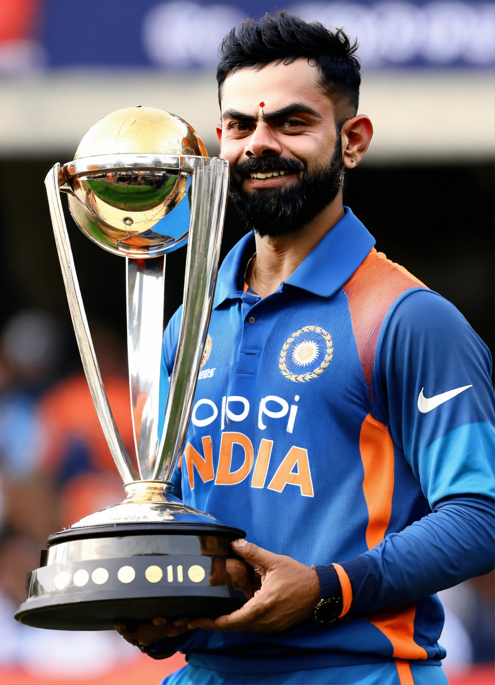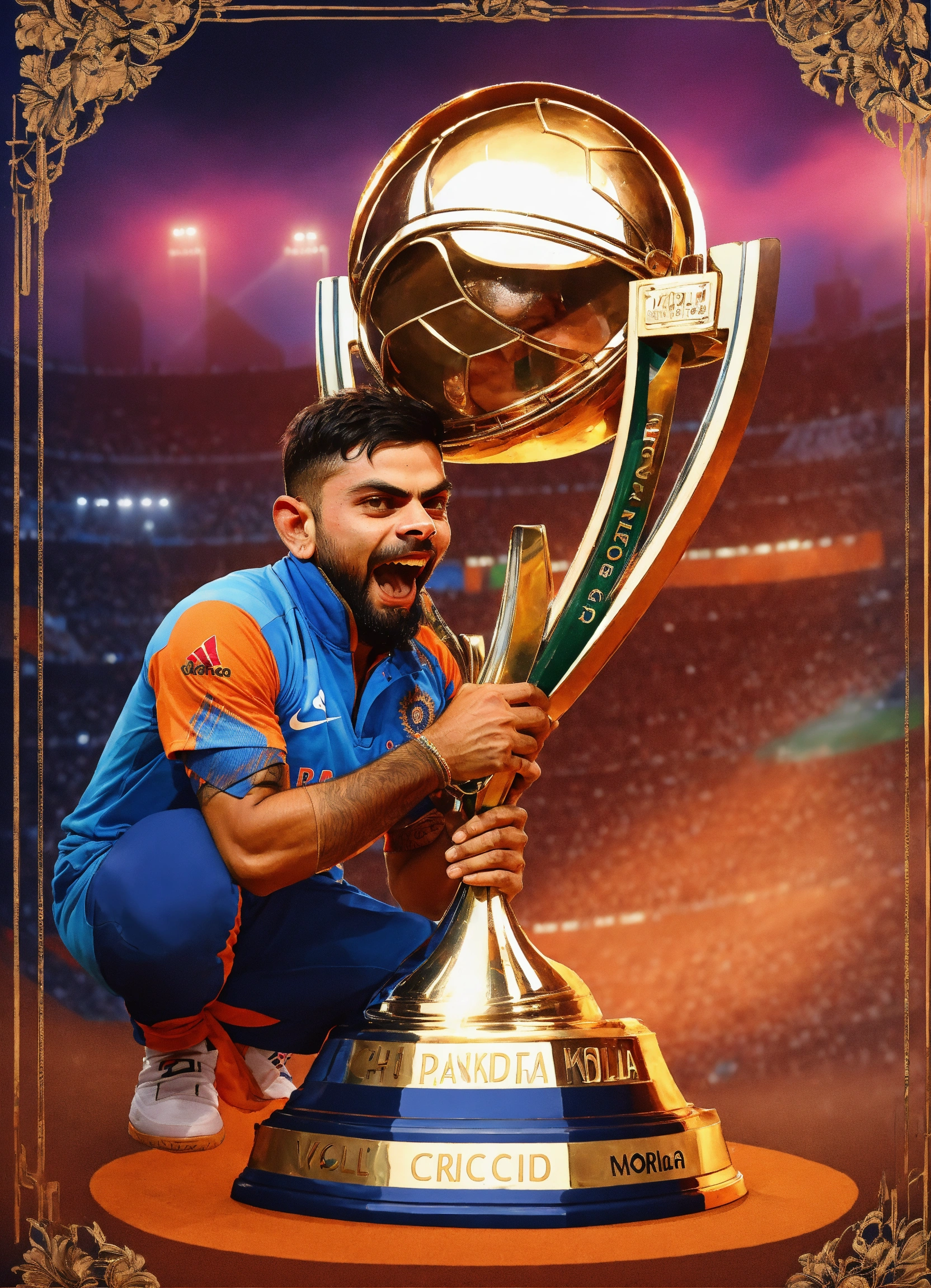 In 2023, virat kohli made history at the narendra modi stadium in ahmedabad, lifting the icc cricket world cup. with unmatched determination and stellar teamwork, kohli's triumphant moment, hoisting the trophy, resonated with fans across the globe, etching his name in cricketing history.