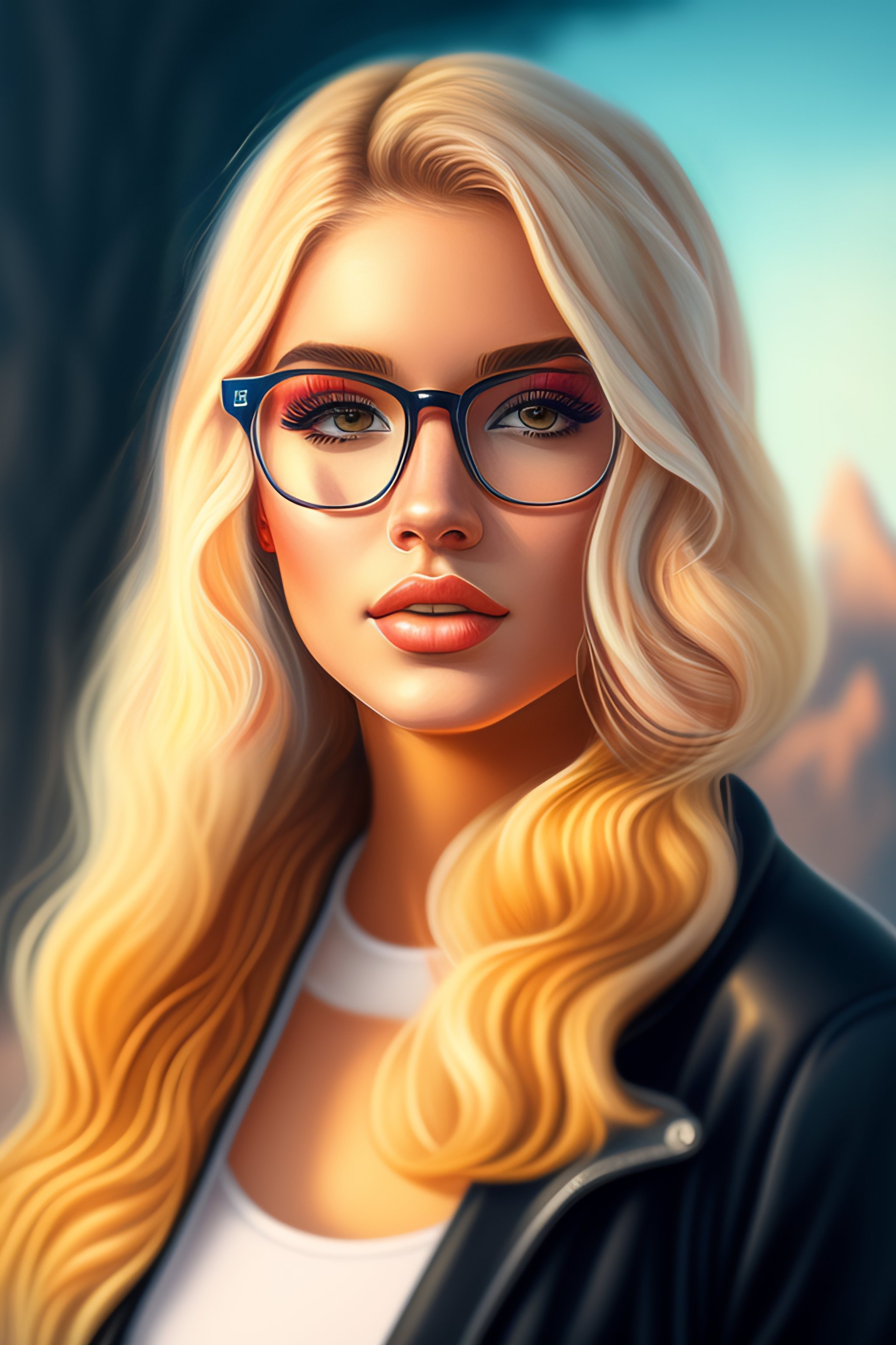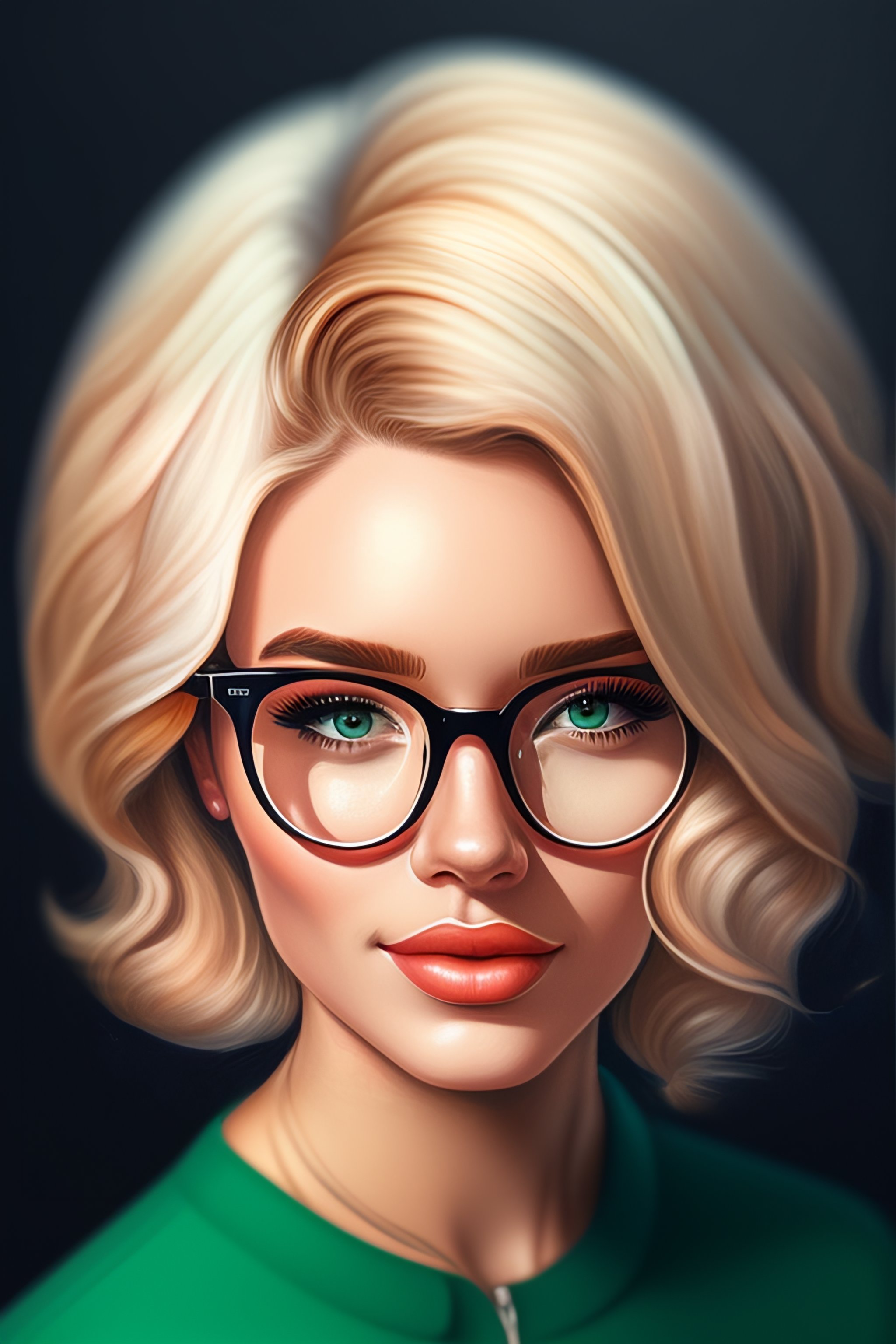 Girl with an oval face, wearing glasses, blonde hair, detailed, art station, illustration, 8k quality, art