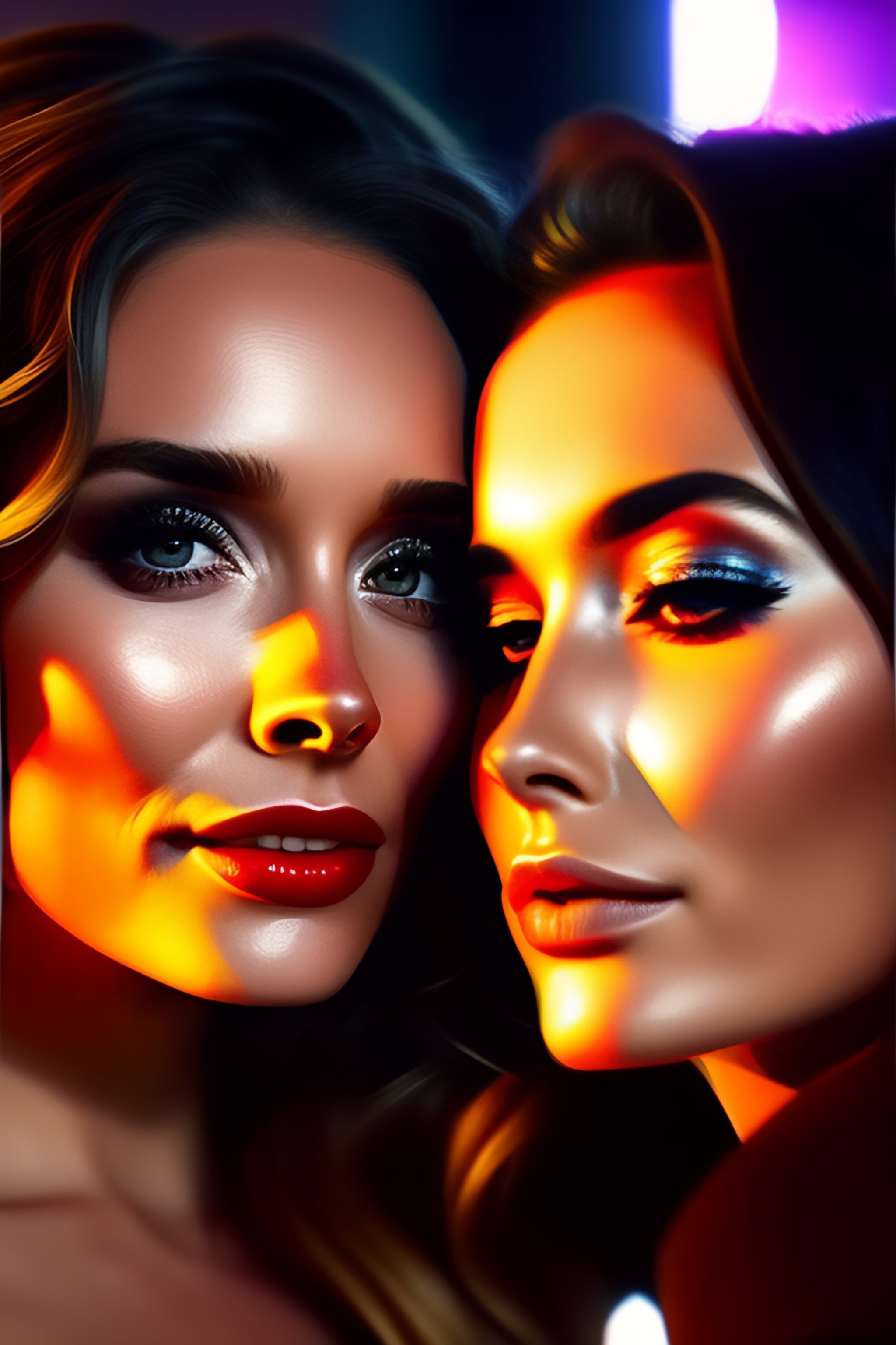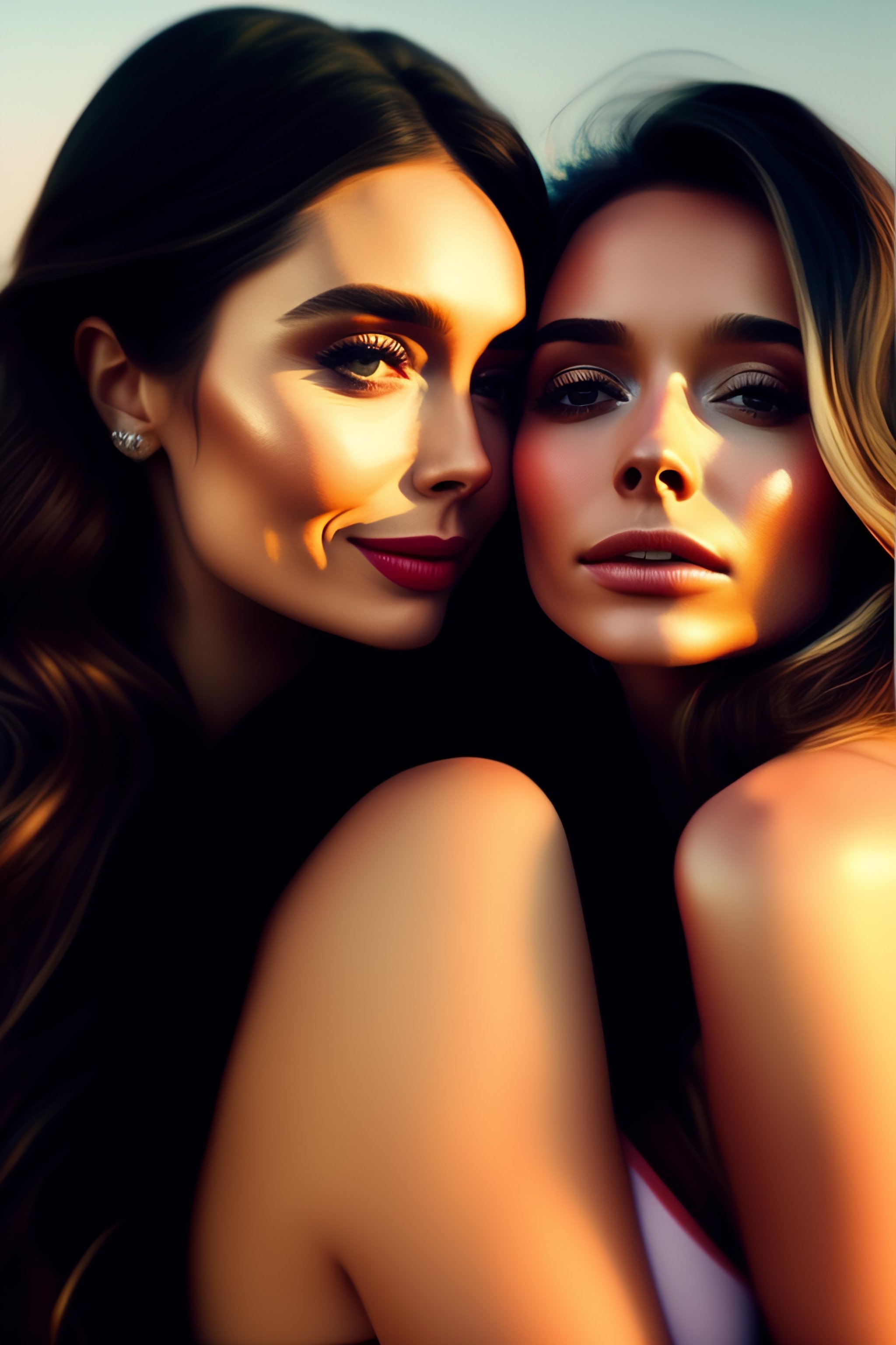 Elizabeth olsen kiss agathe auproux, sexy, glamour, realistic cinematic, 32k, ultra-hd, cinematic lighting