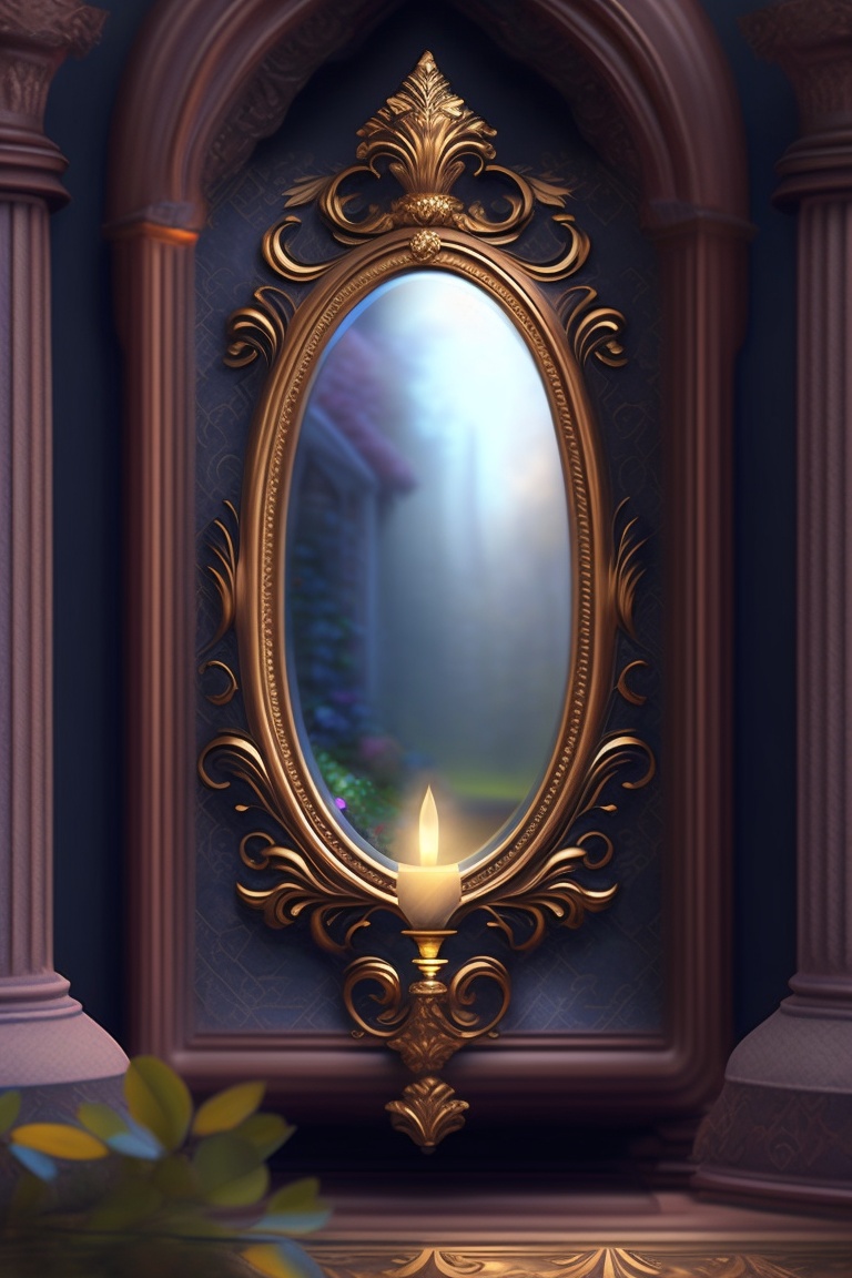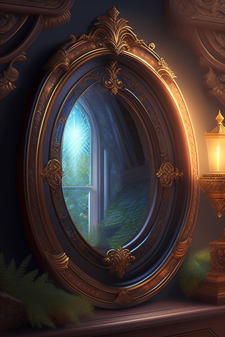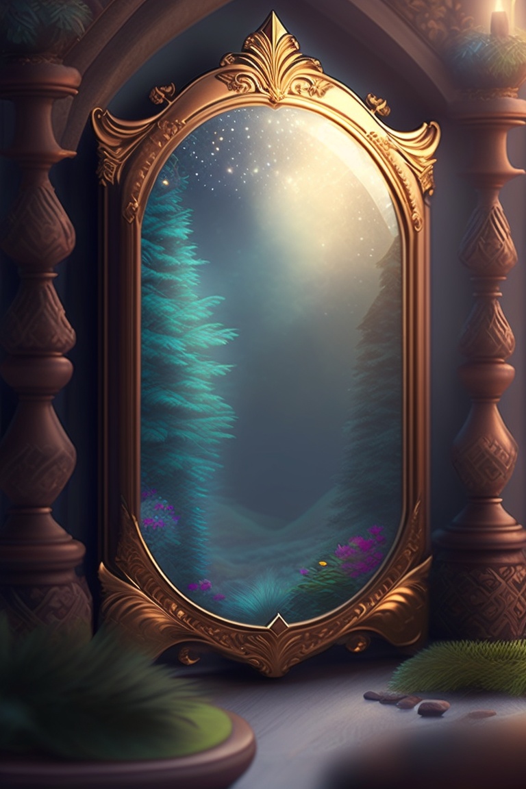 In the magical realm of eldoria, a young sorcerer named lysander stumbled upon an ornate, enchanted mirror in his family's ancient attic. when he gazed into it, he was transported to a land of wonder and fantasy.