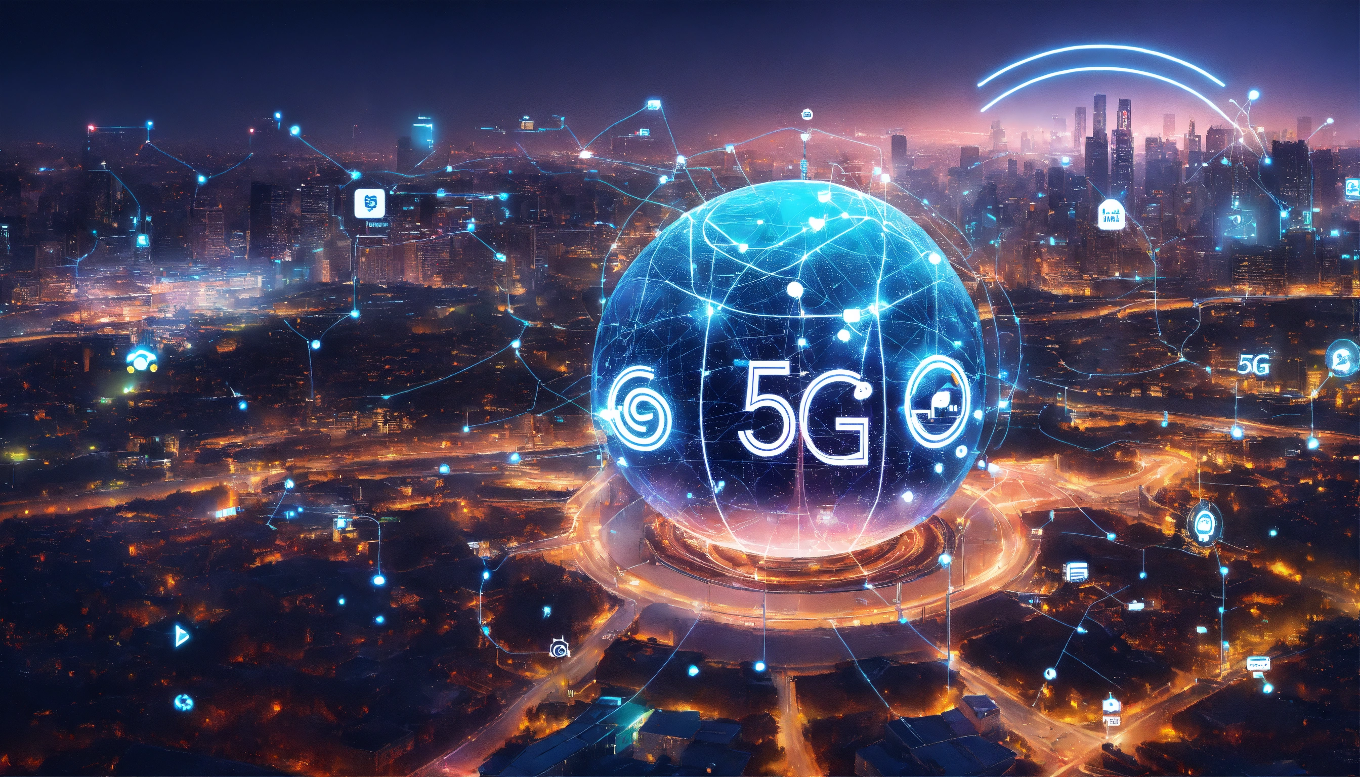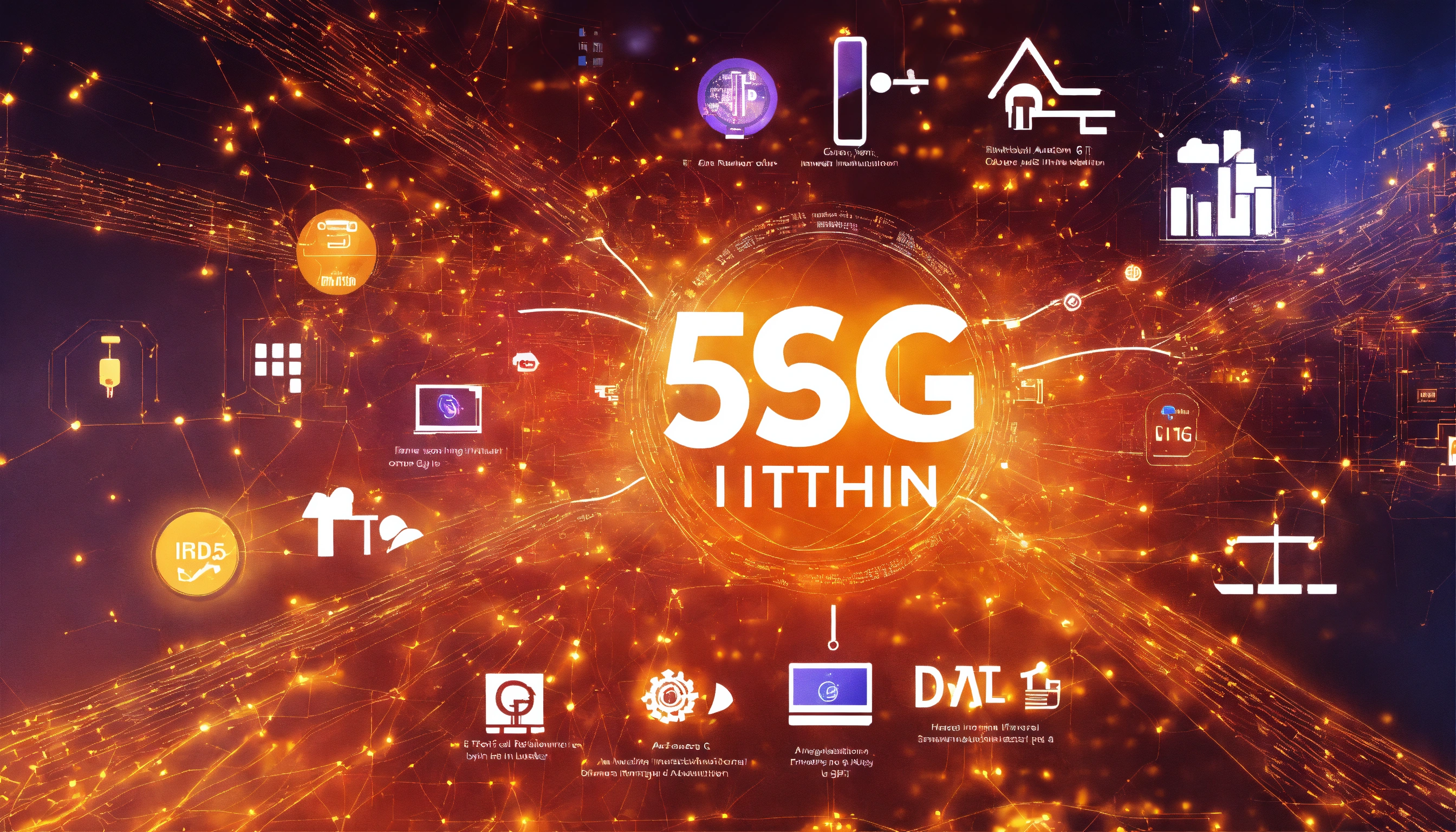 In the center of the poster, we see a huge 5g signal icon, with a huge network of iot devices in the background, including smart home devices, smart city infrastructure, industrial automation equipment, etc. the signal icon is composed of many small dots, symbolizing the high speed and low latency of 5g. below the icon, we can see the title "5g internet of things leading the future connection revolution". the font of the title should be concise and modern, using contrasting colors to highlight the key points. at the top of the poster, we see a line of slogans "faster, farther, smarter." this is a brief description of 5g iot technology, emphasizing how 5g provides faster data transmission speed, longer connection distance, and how to make iot devices smarter. the background color of the entire poster should be dark blue or black to highlight technology and future themes. on iot devices and 5g signal icons