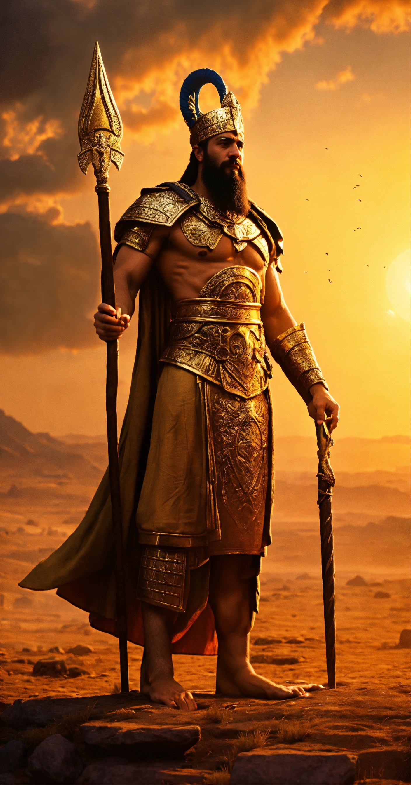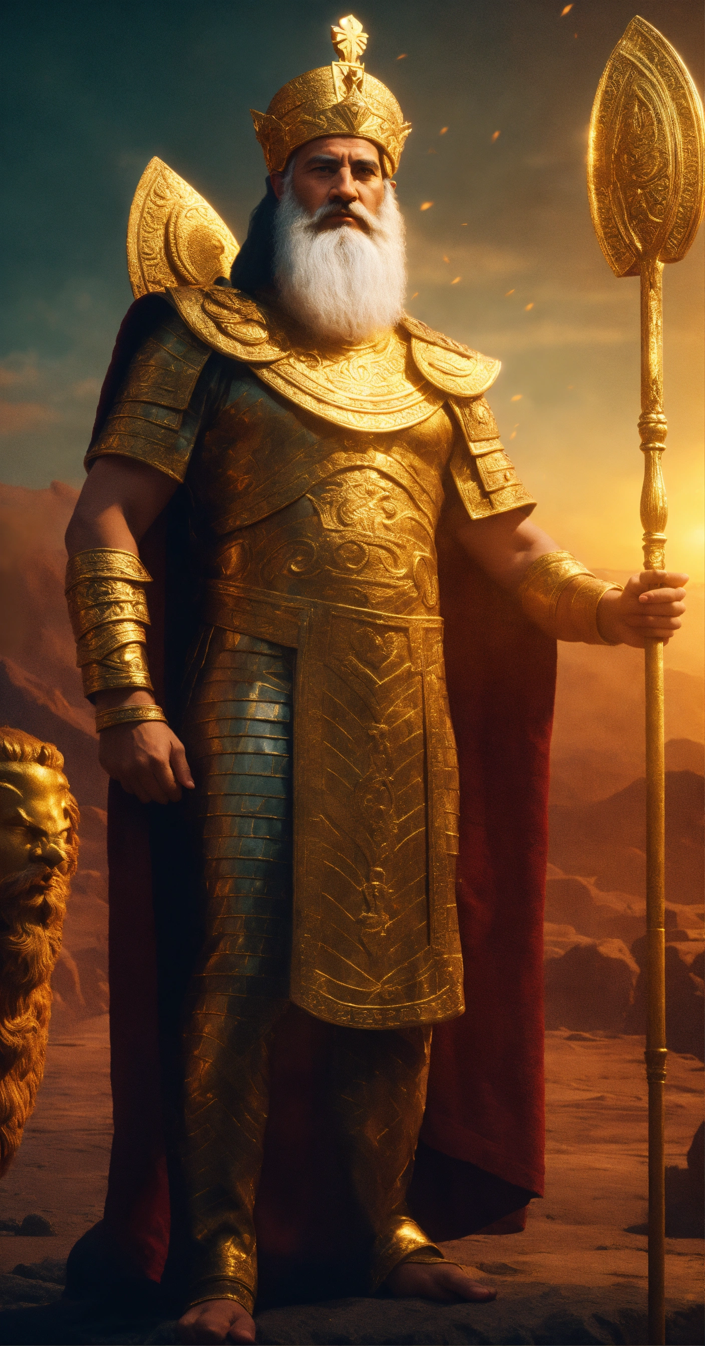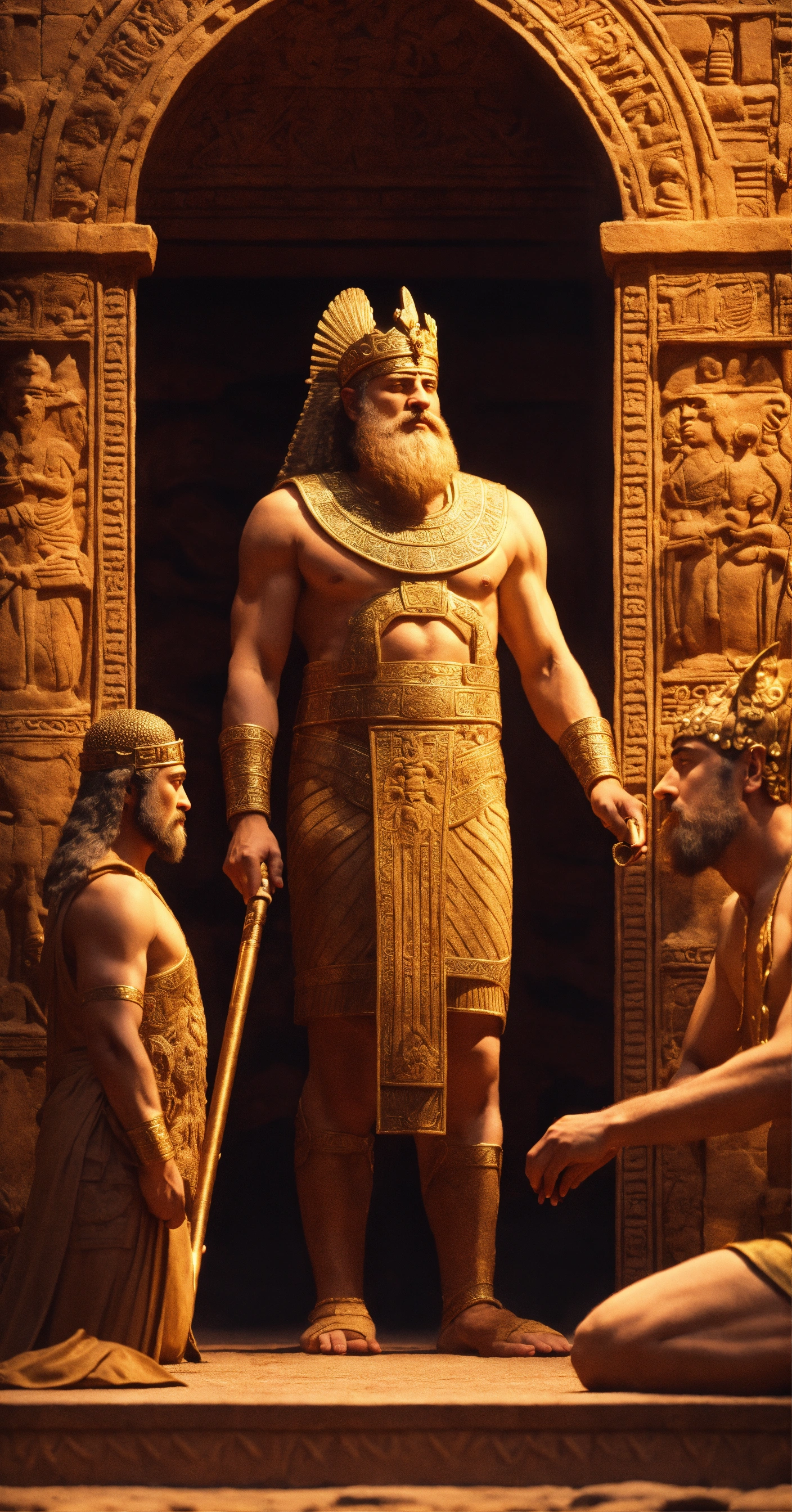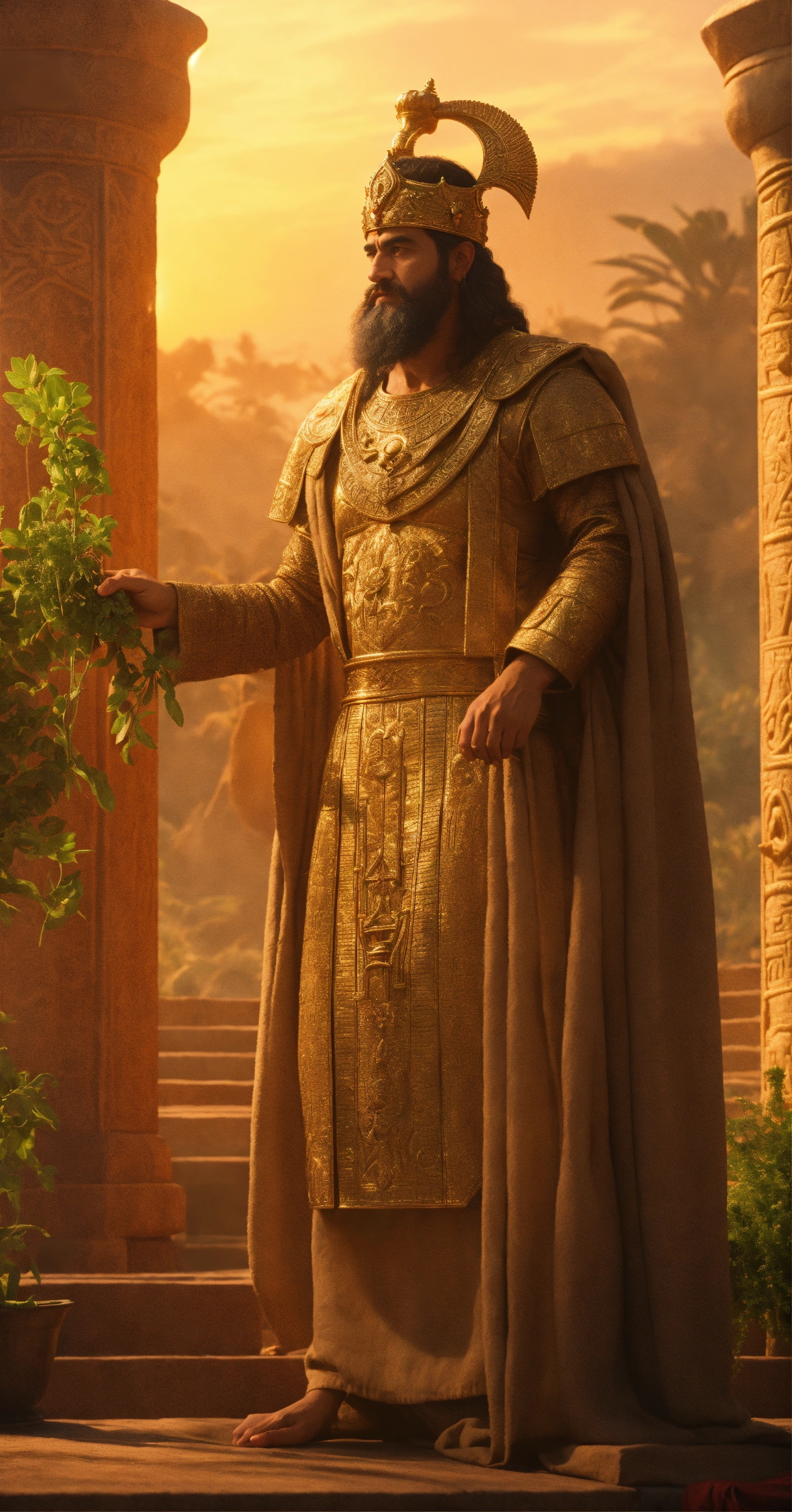 Sumerian king gilgamesh receives the herb of immortality from the prophet noah at dawn, cinematic, 8k