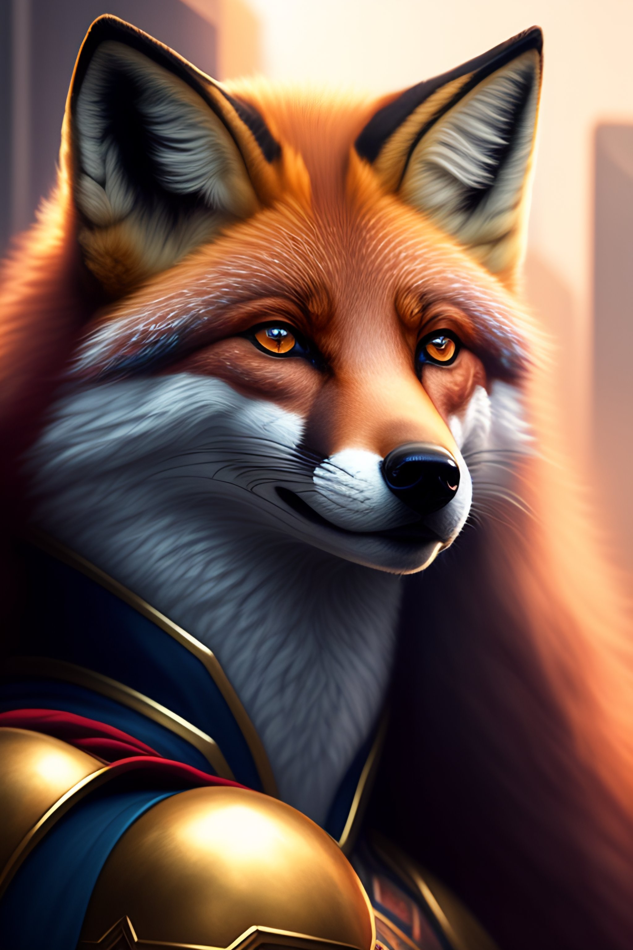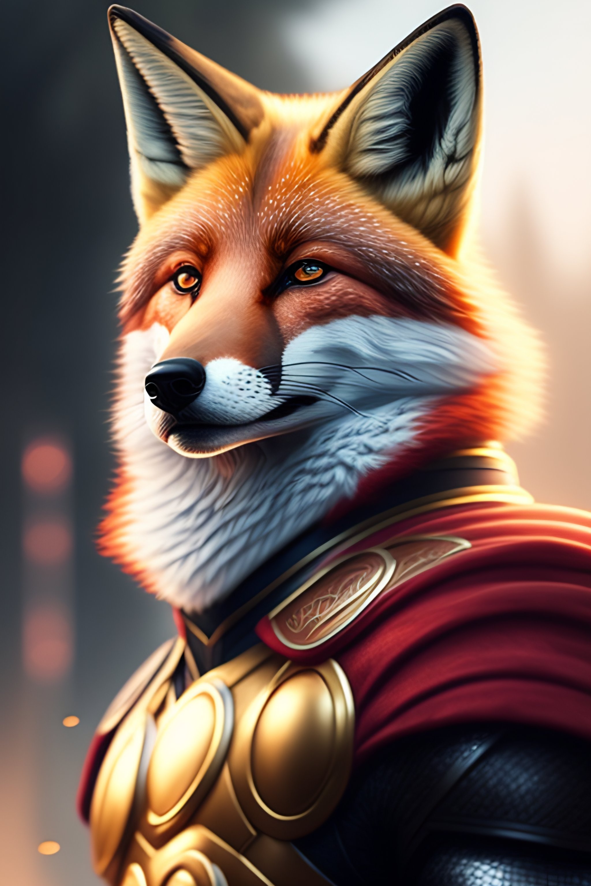 Fox as thor, realistic portrait, symmetrical, highly detailed, digital painting, artstation, concept art, smooth, sharp focus, illustration, cinematic