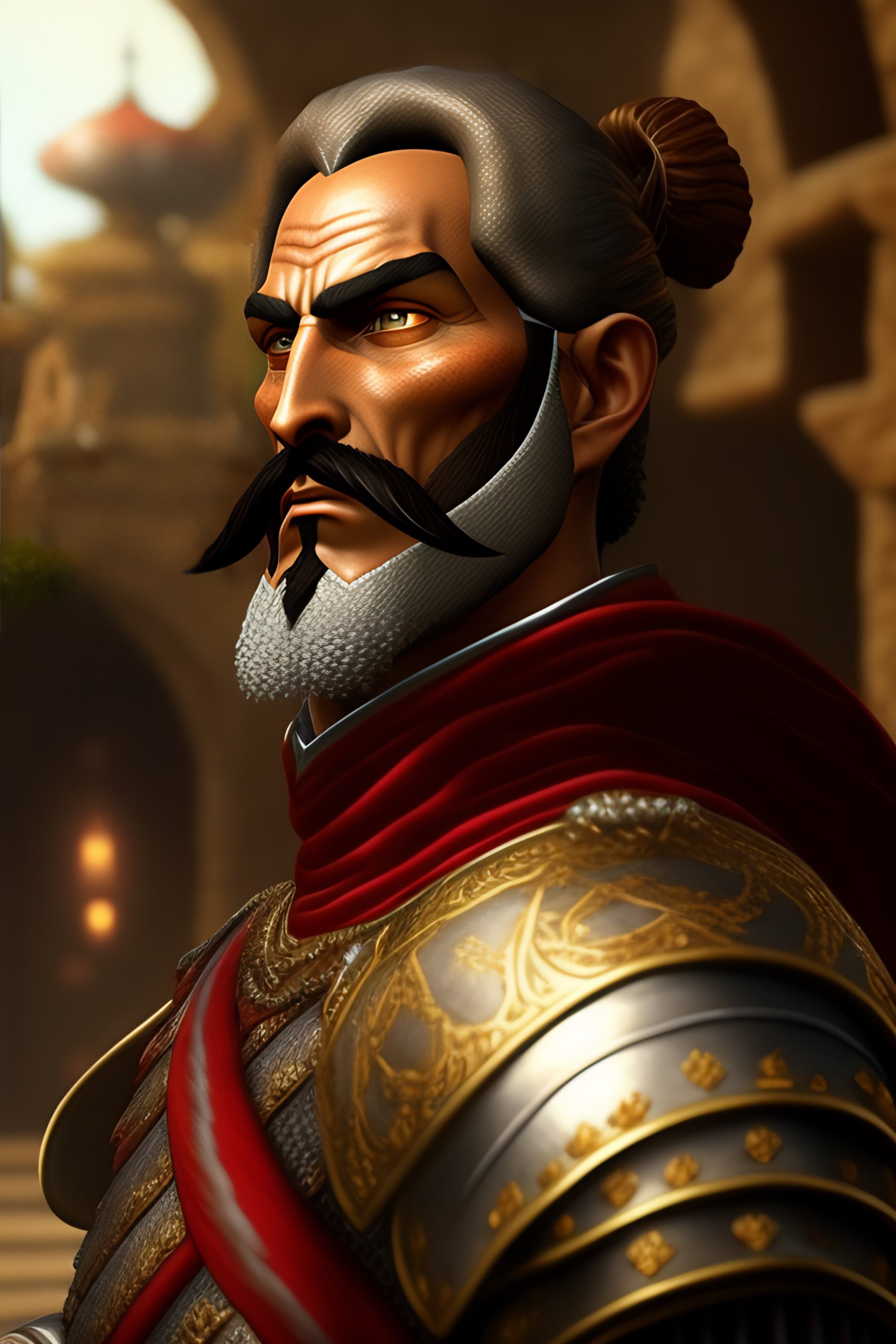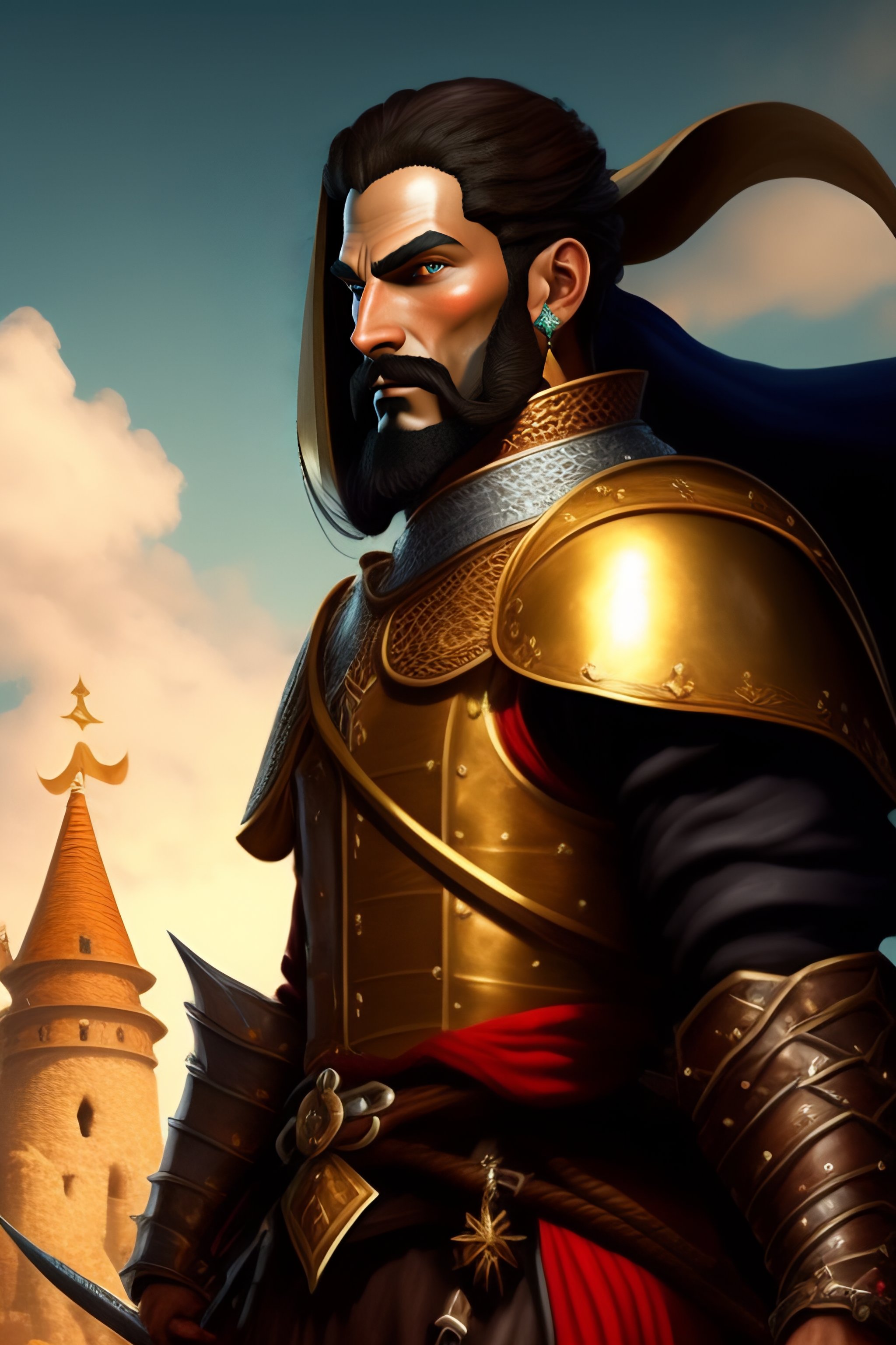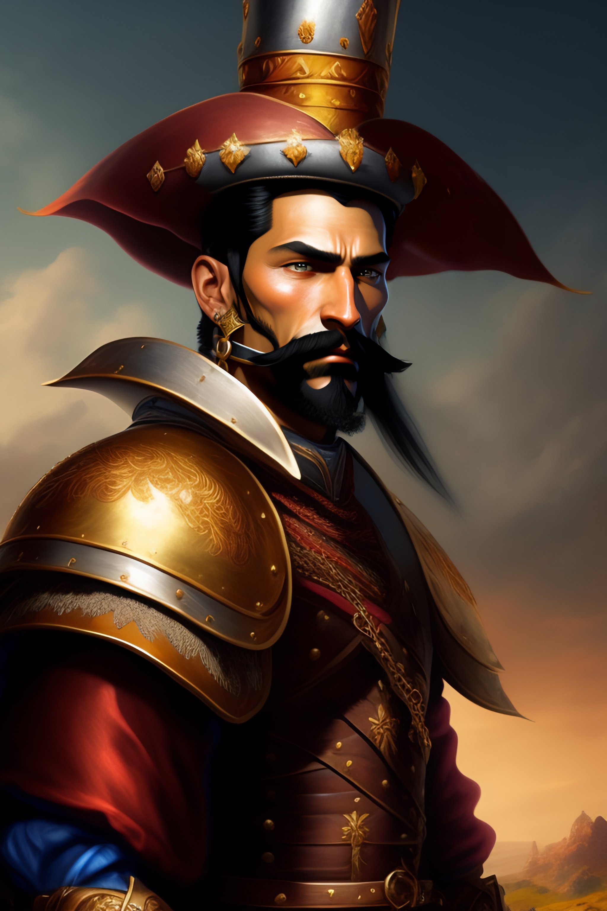 Don quixote as a young conquistador in the style of a baldurs gate character portrait