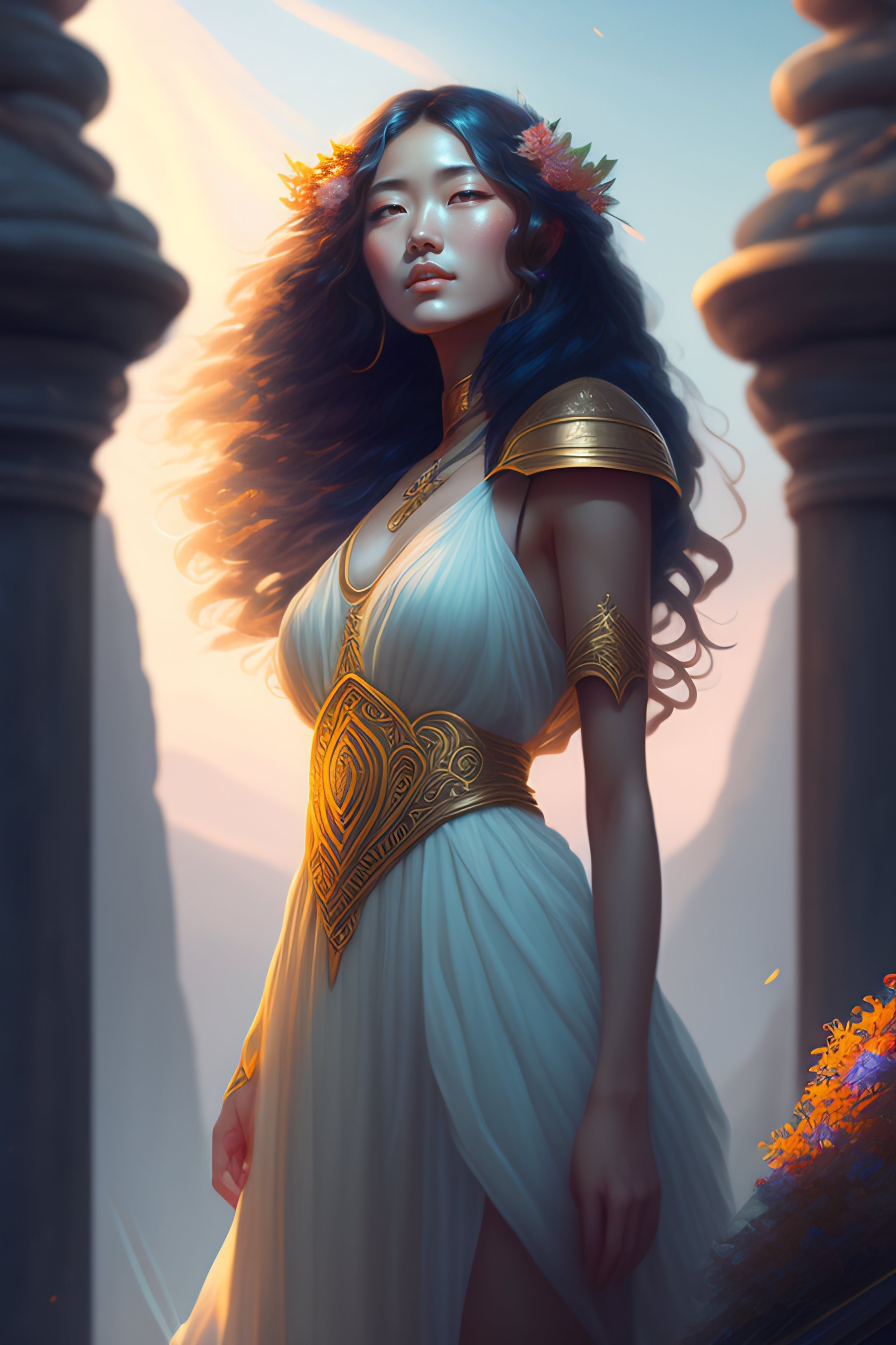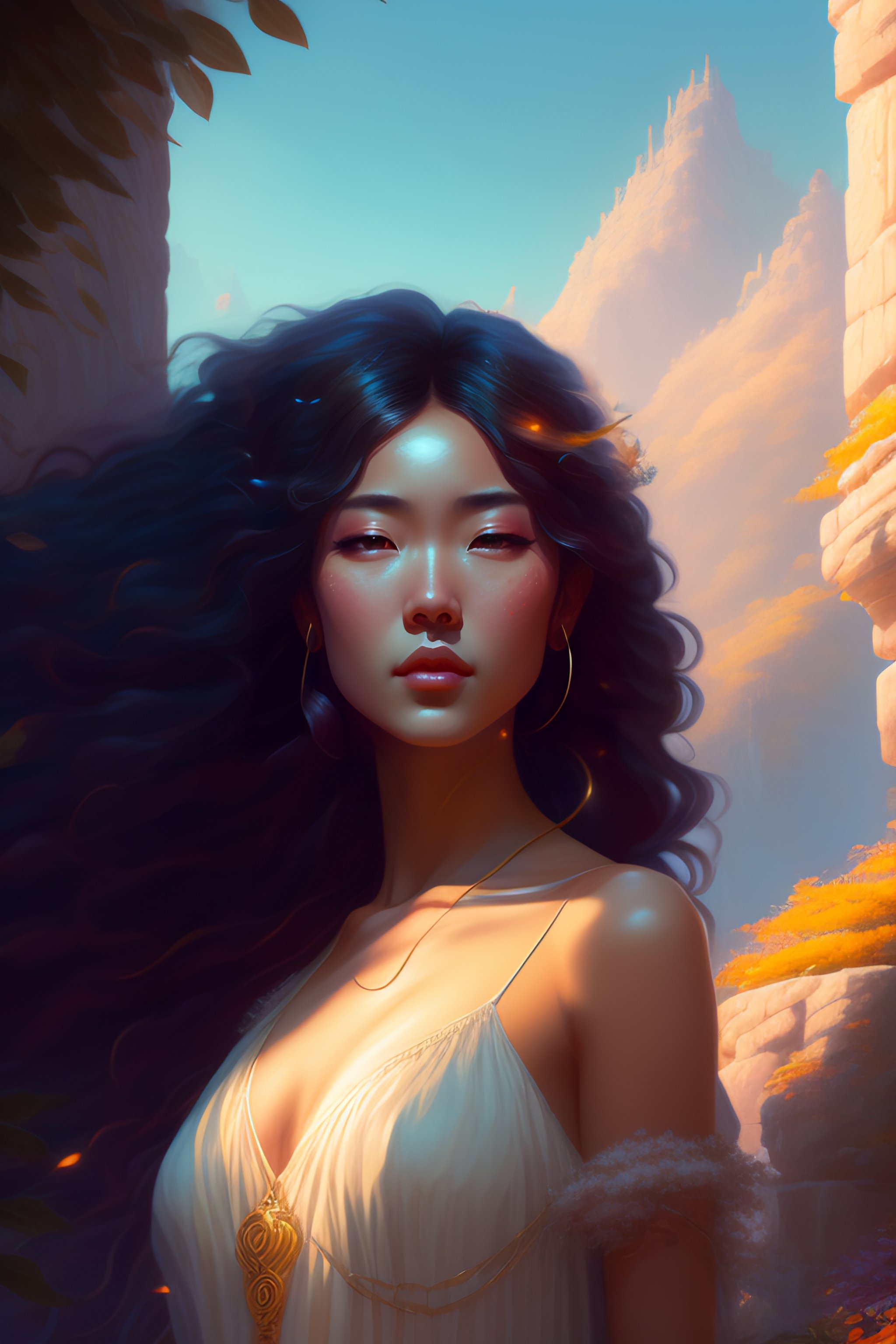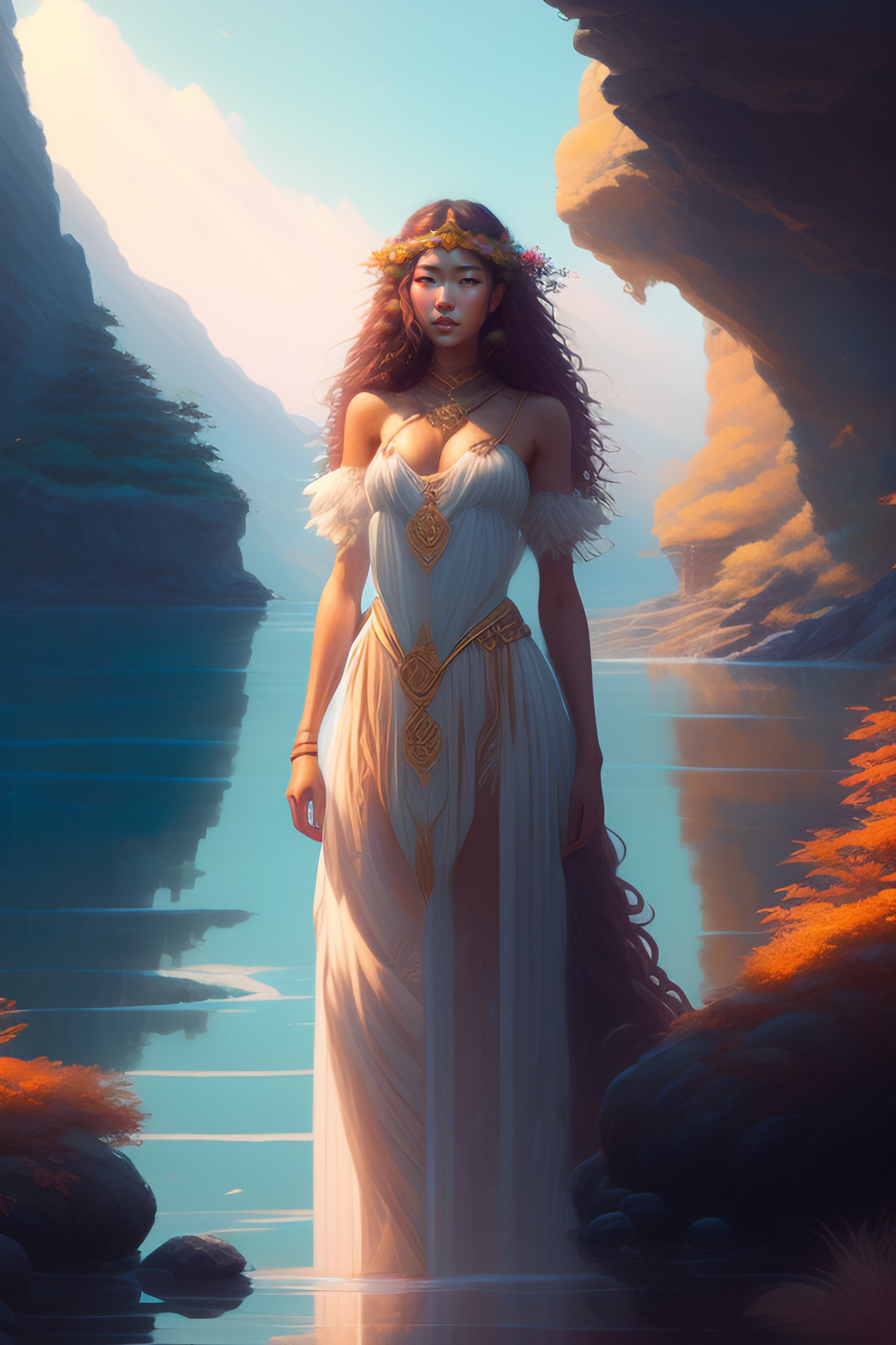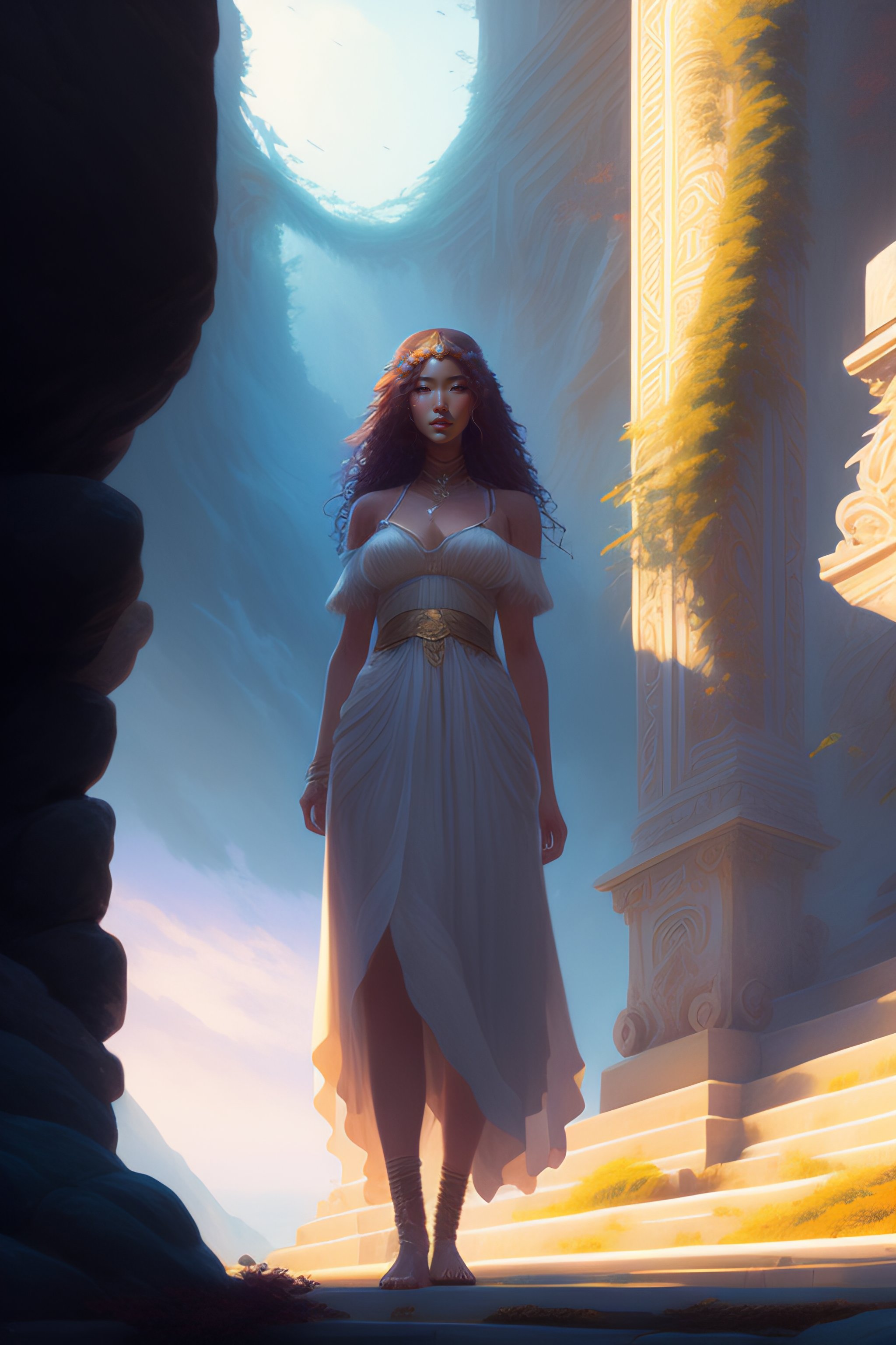 Highly detailed full body of eurydice greek mythology, stephen bliss, unreal engine, fantasy art by greg rutkowski, loish, rhads, ferdinand knab, makoto shinkai and lois van baarle, ilya kuvshinov, rossdraws, tom bagshaw, global illumination, radiant light, none environment, long curly hair, african & japanese women, japanese face