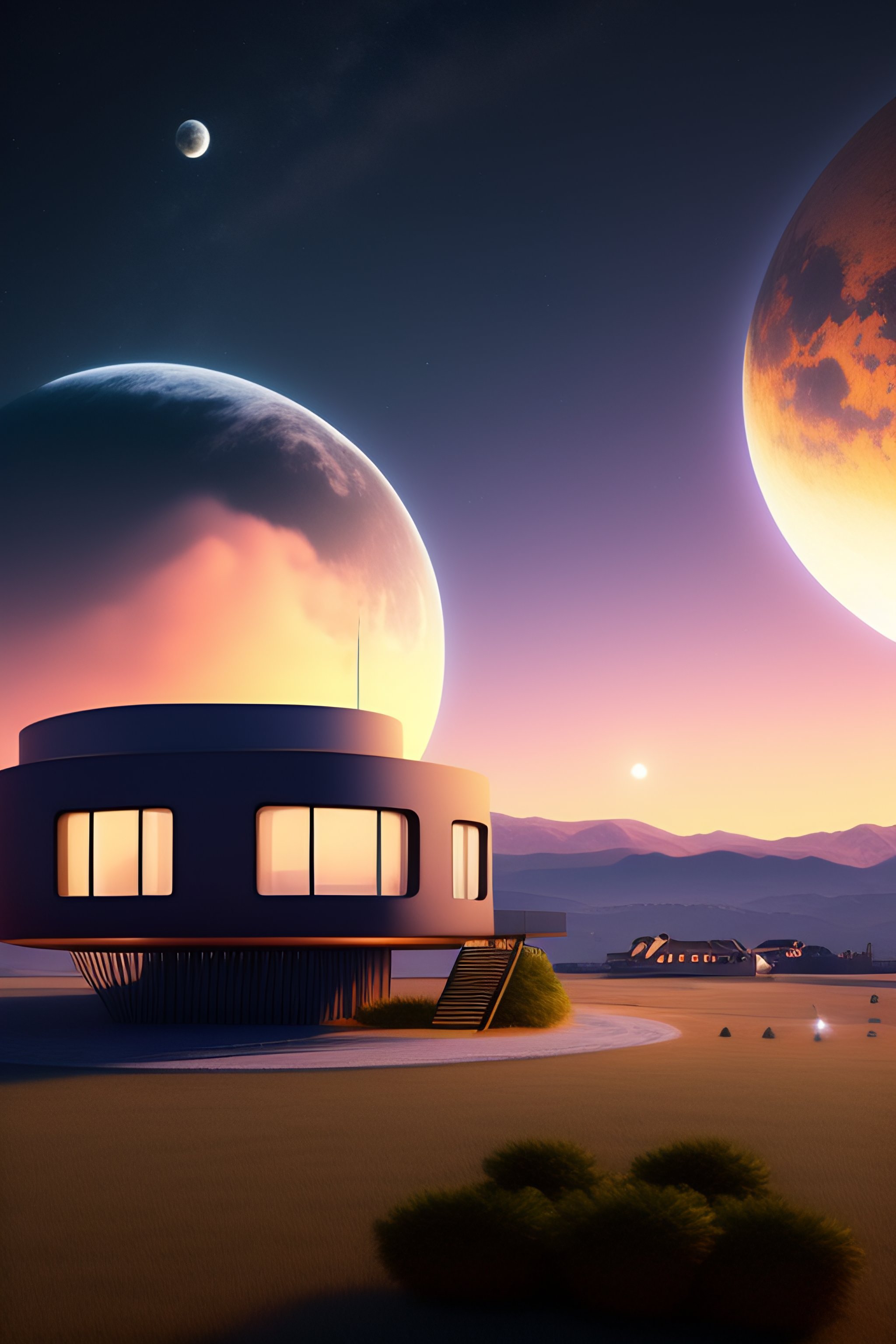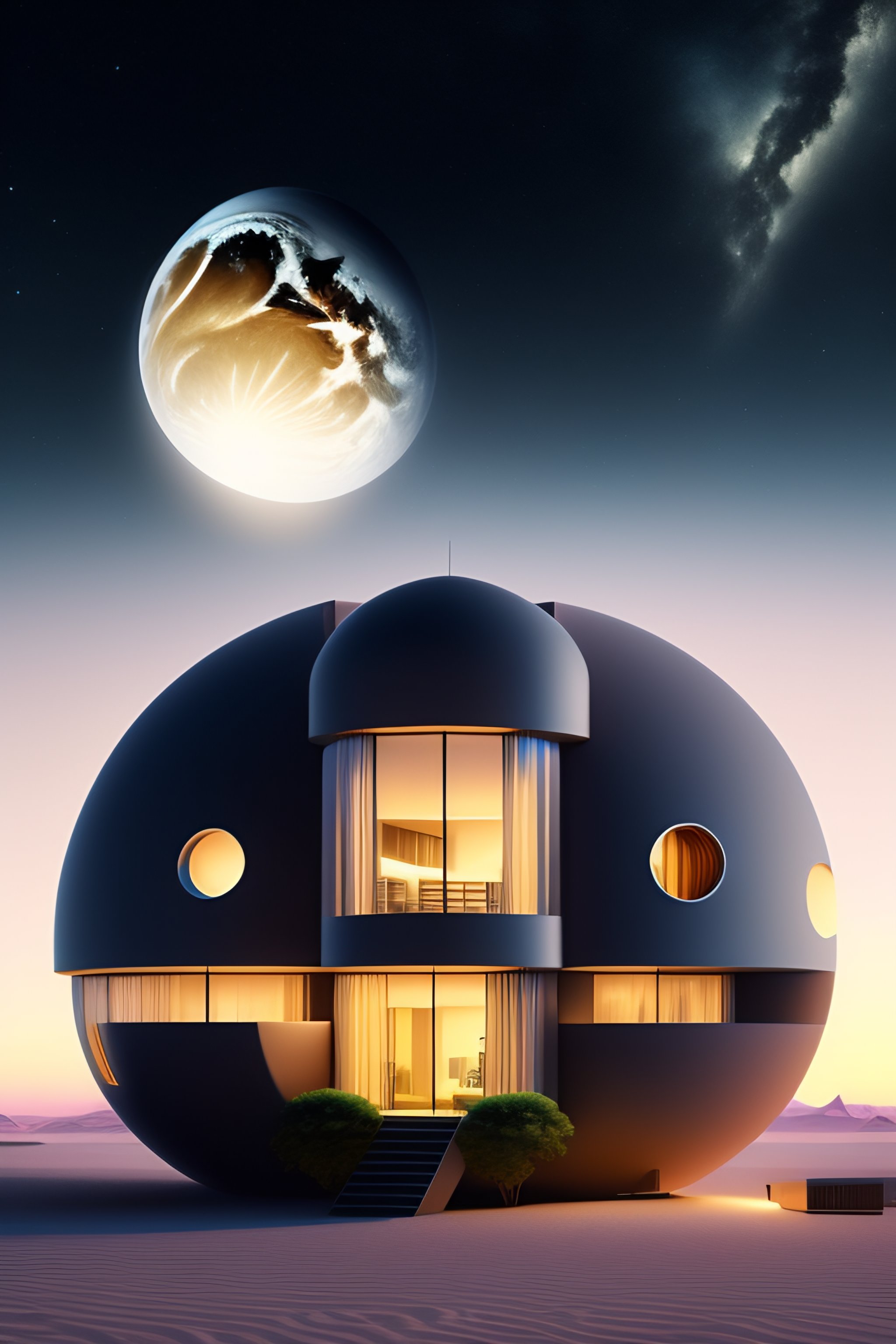 Create a high tech house on the planet zoron with it's 3 moons visible in the background