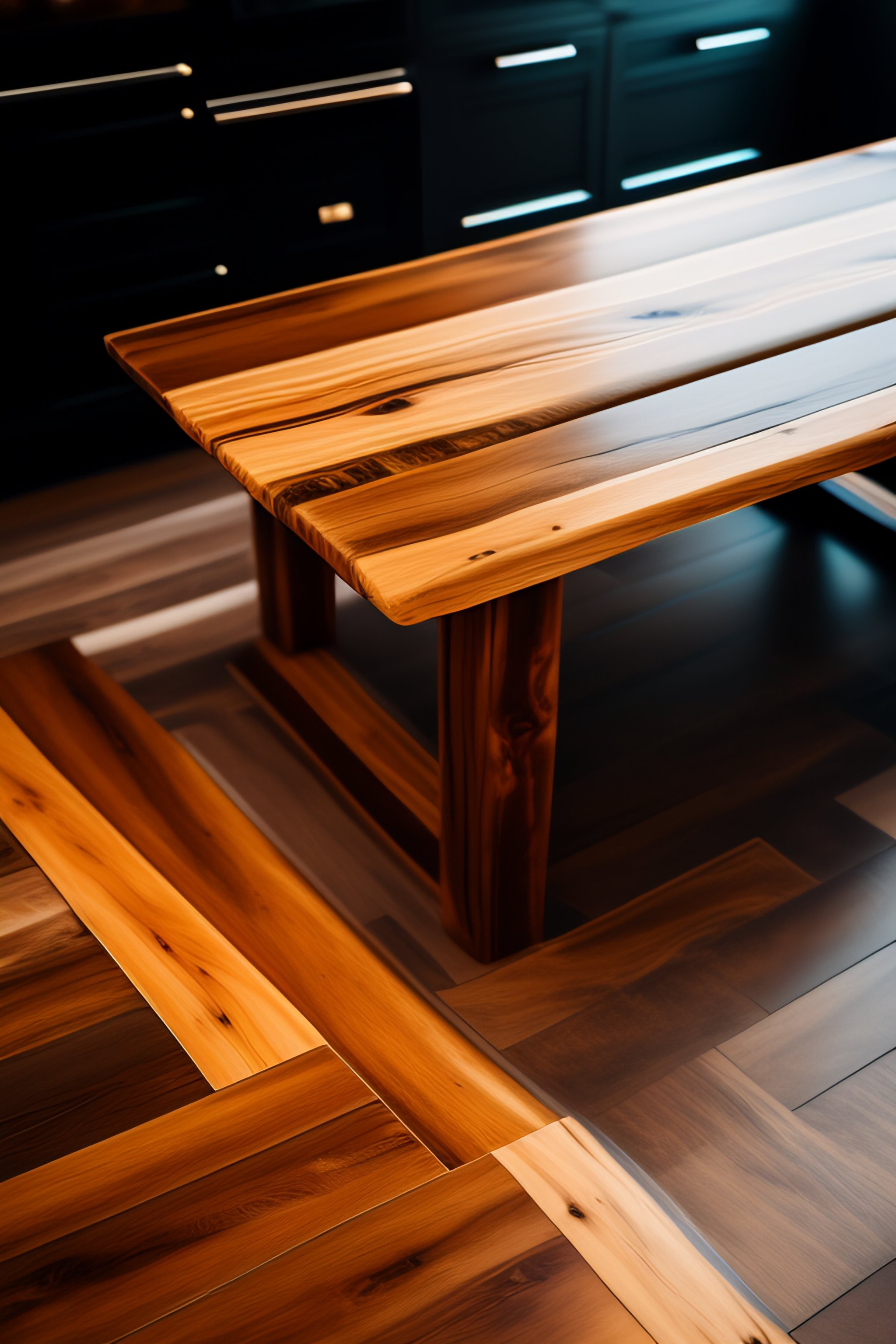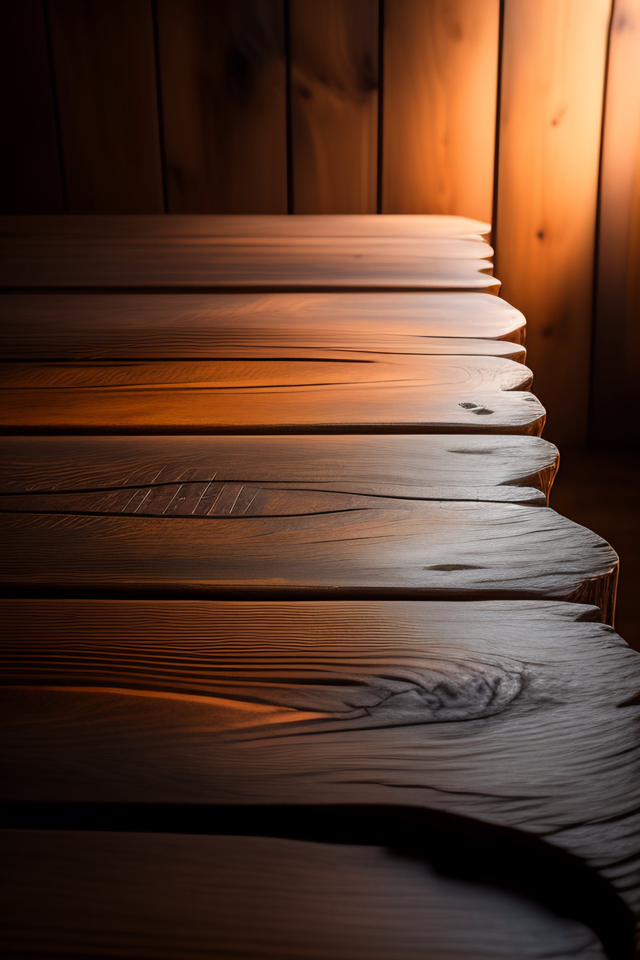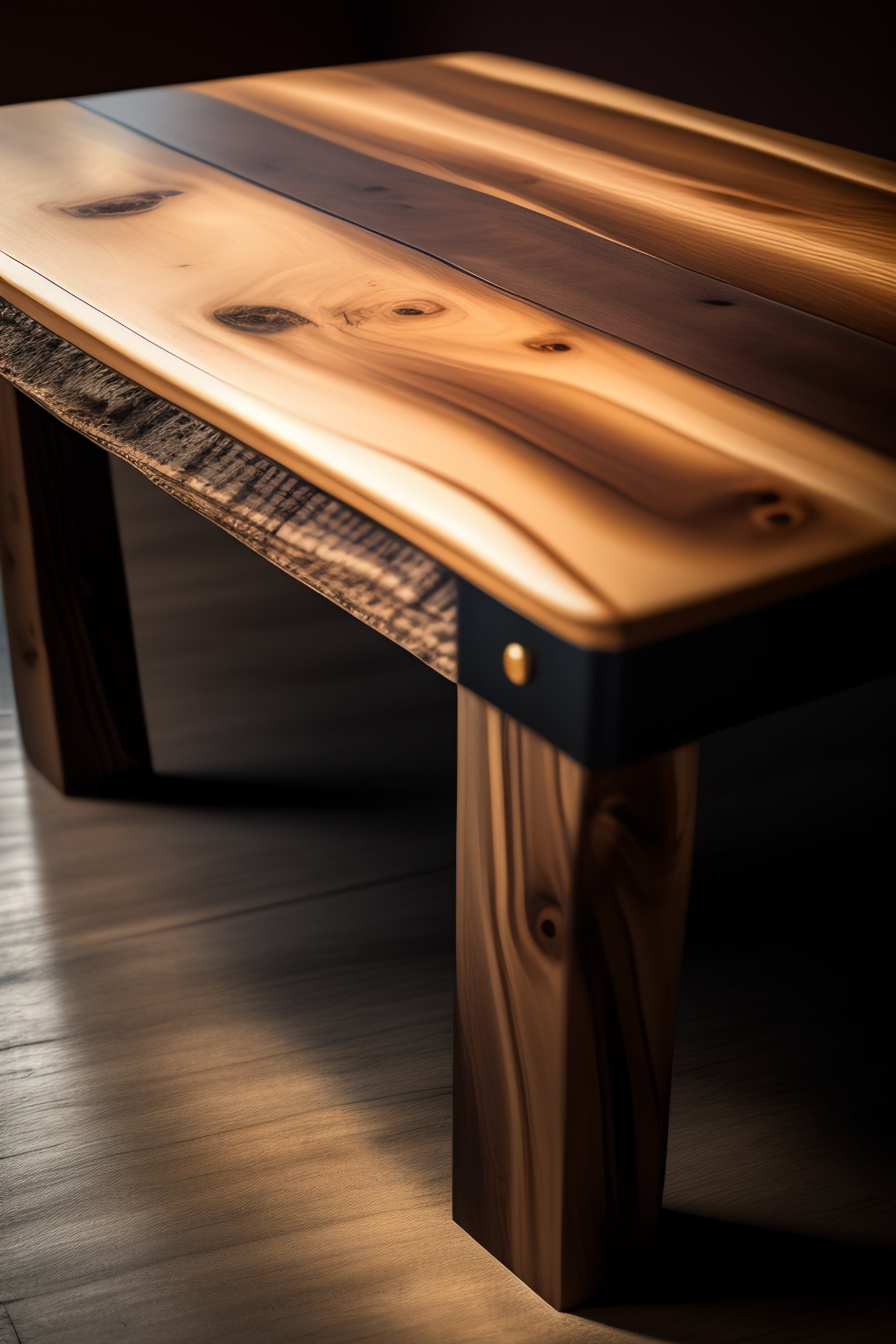 Photo realistic image of rustic wooden table from the perspective of looking straight down at it from directly above