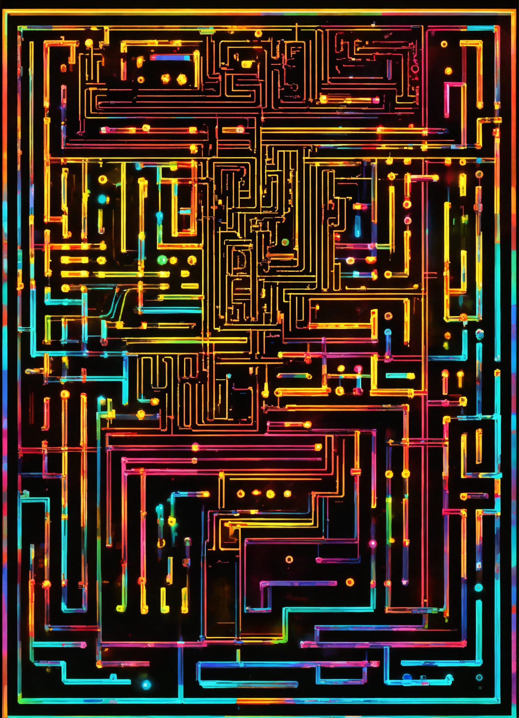 Morse code style pattern, computer networking maze, geometric shape, with frame like trading card, simple, 8k, neon