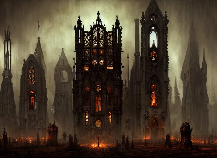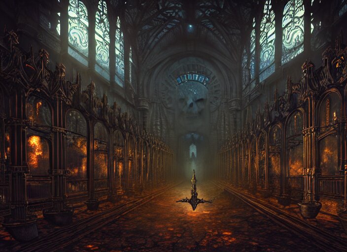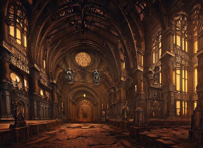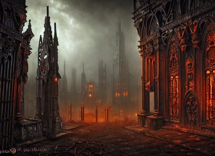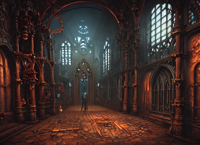 Steam necropolis, memento mori, gothic, neo - gothic, art nouveau, hyperdetailed copper patina medieval icon, stefan morrell, philippe druillet, ralph mcquarrie, concept art, steampunk, unreal engine, detailed intricate environment, octane render, moody atmospherics, volumetric lighting, ultrasharp, ominous, otherworldly