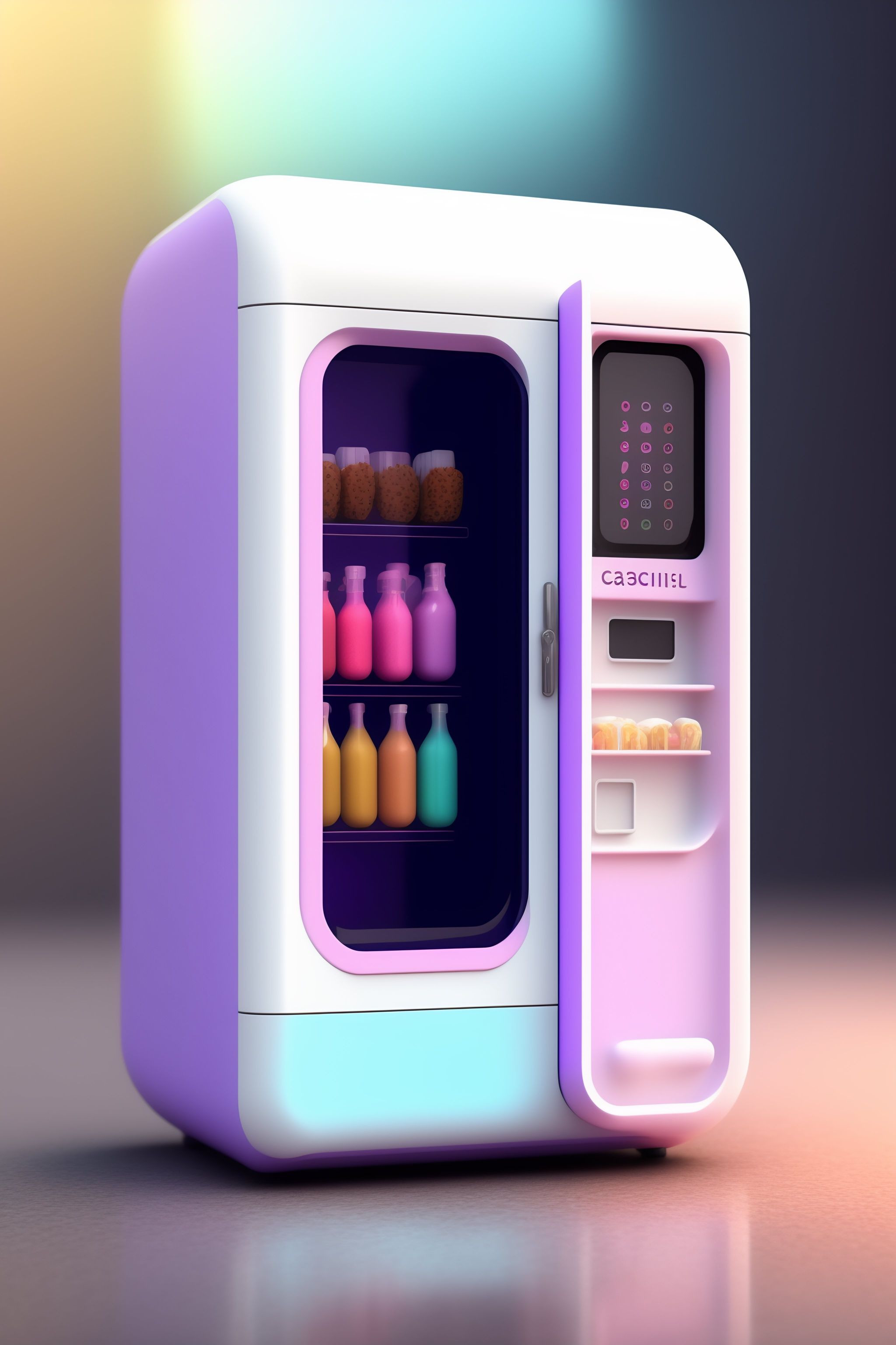 Tiny vending machine, cute 3d render, pastel colors. cute extremely chibi vending machine. white background