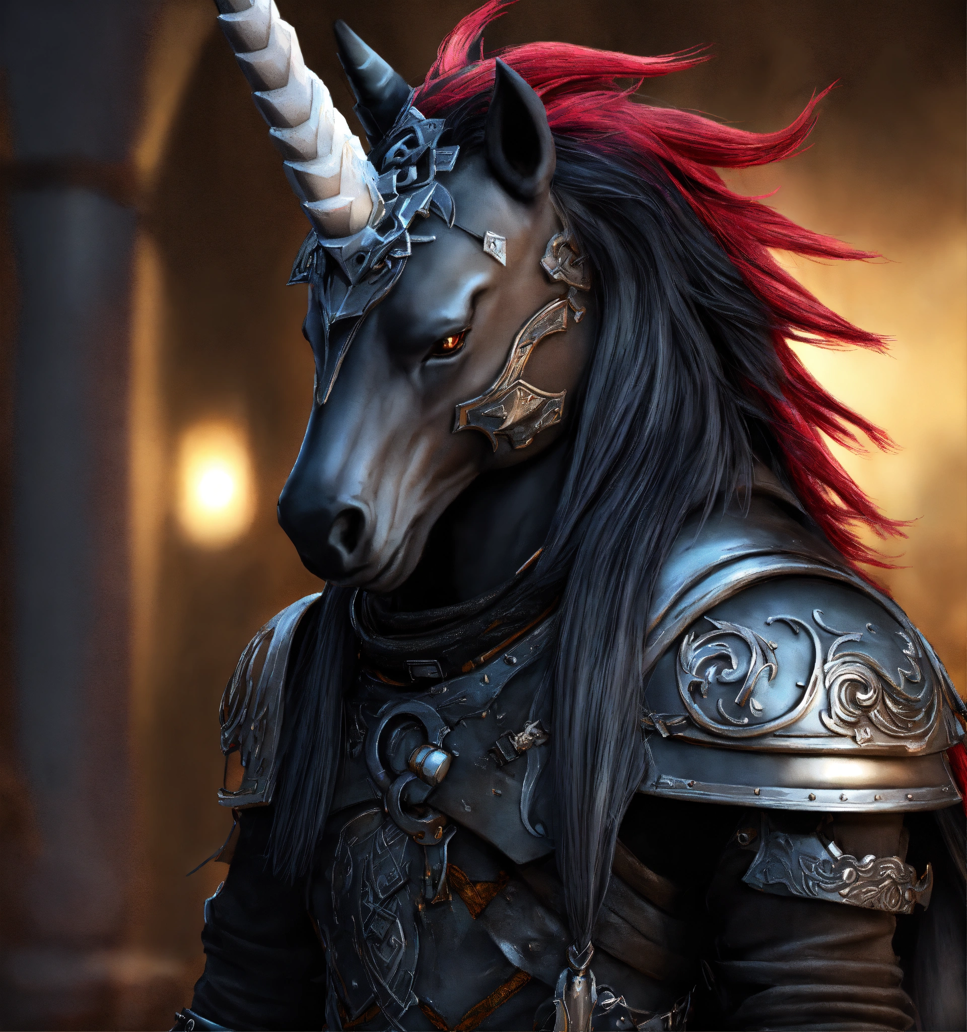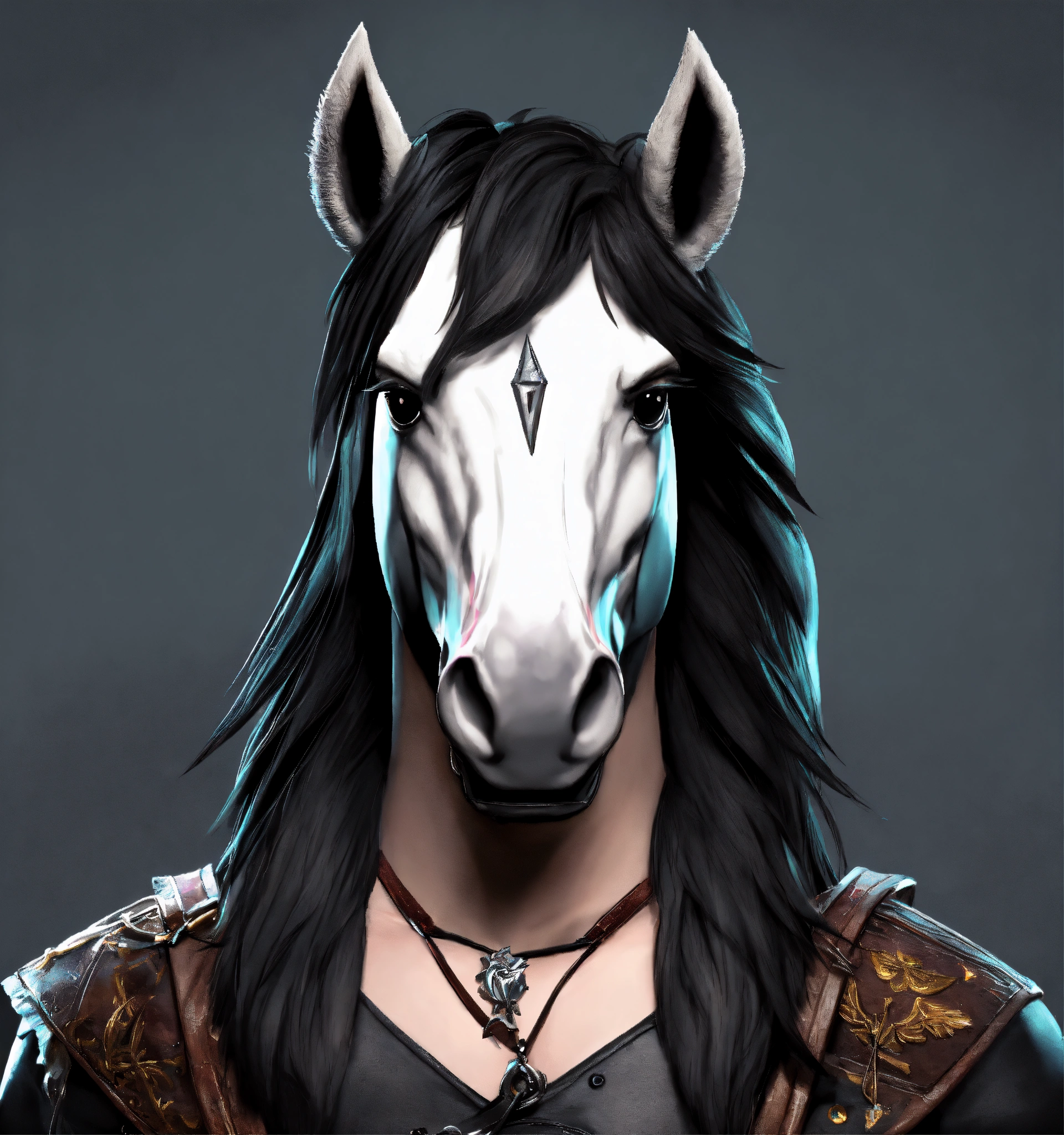Game character cartoonish realistic emo rock evil emo unicorn viking black mane