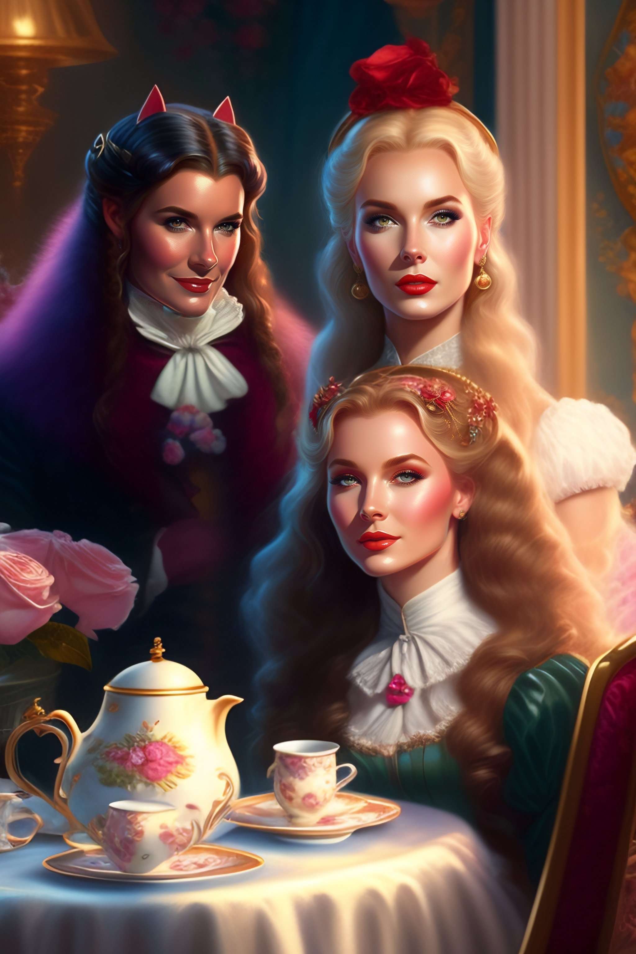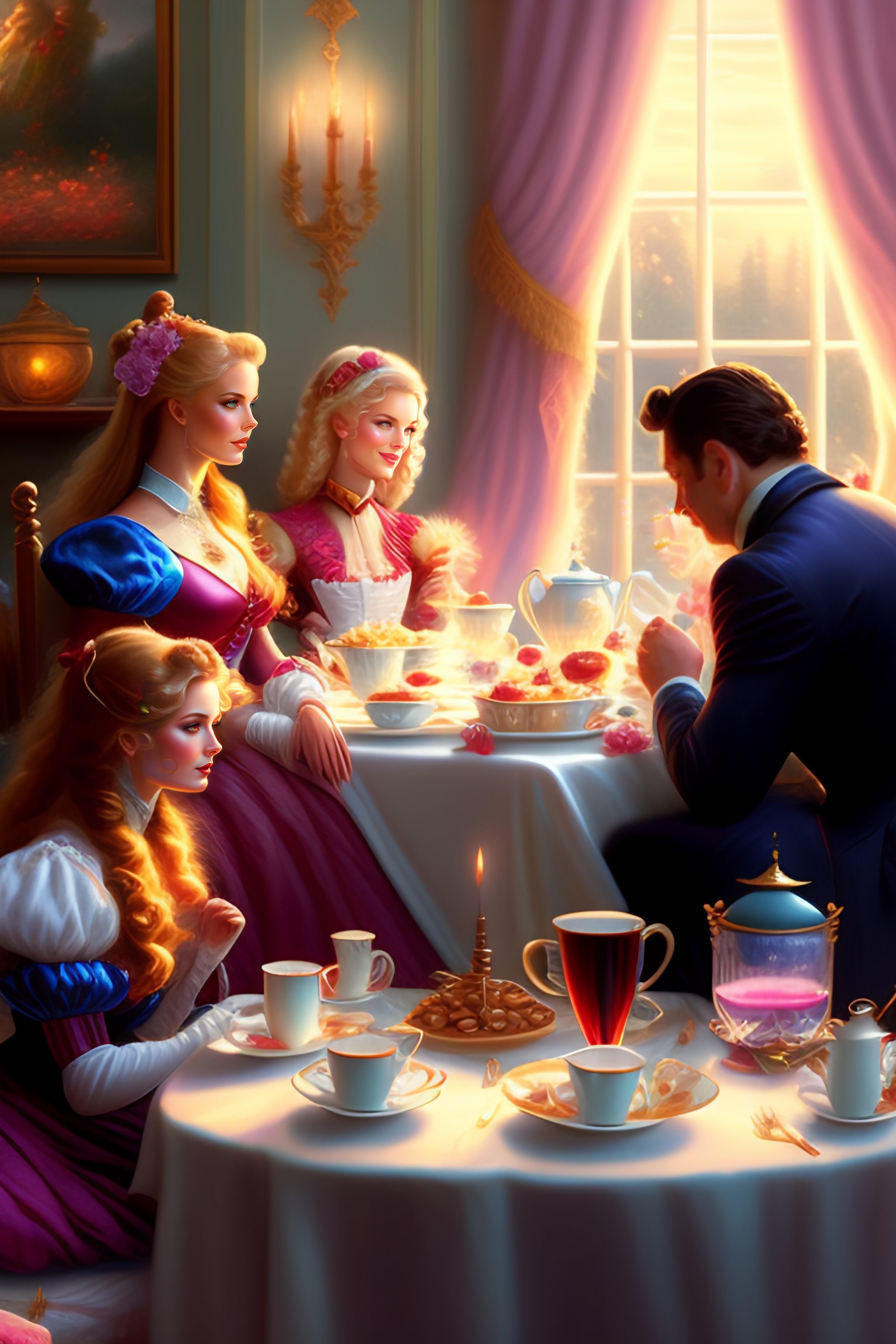 “wanda vision marvel at a tea party by thomas kinkade