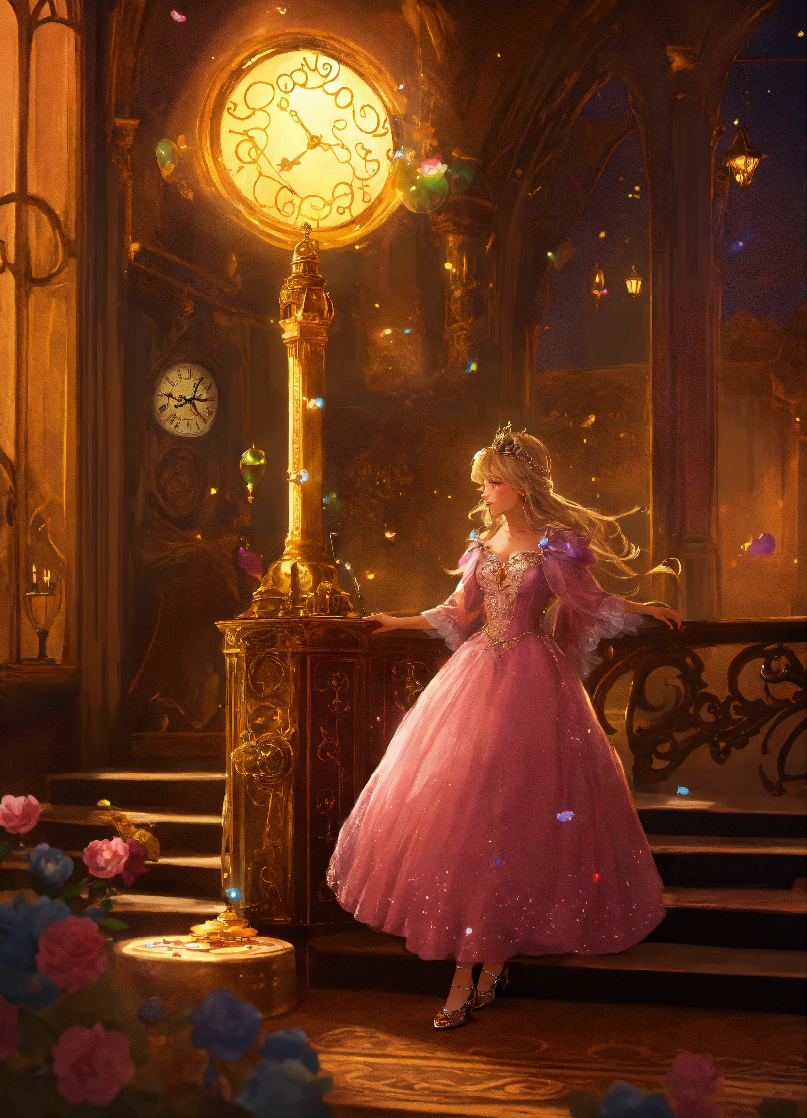 Her fairy godmother warned her that the magic would only last until midnight, so she must leave the palace before the clock strikes twelve.