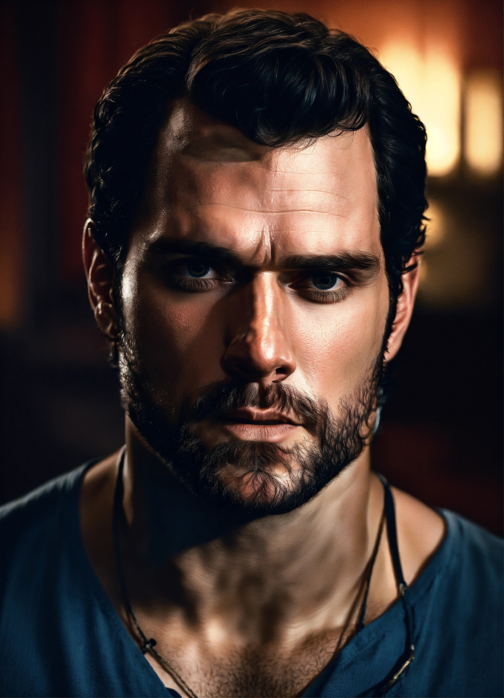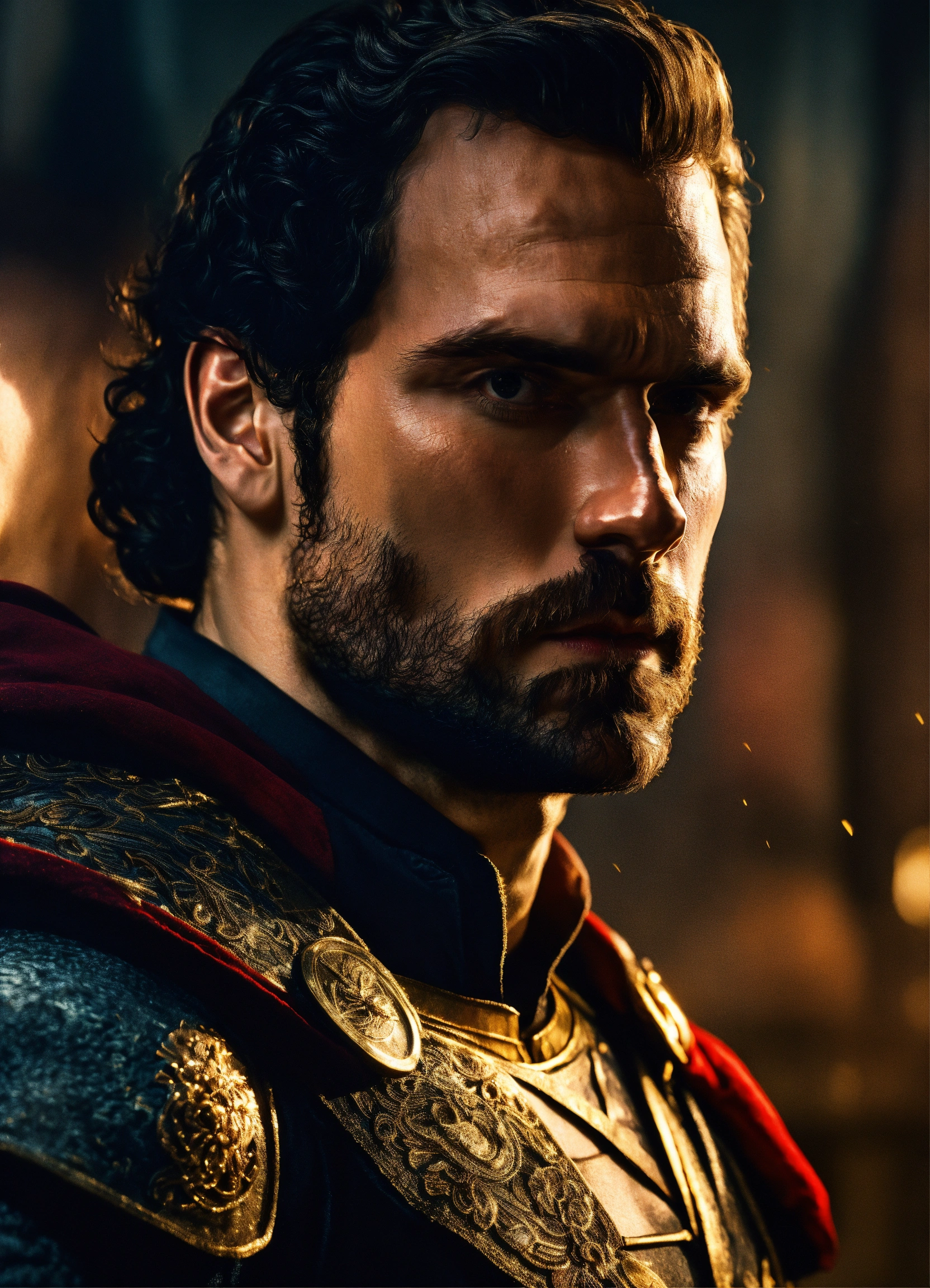 Realistic portrait of henry cavill + chris hemsphort, in frame, very detailed, dramatic pose, cinematic lighting, 8k