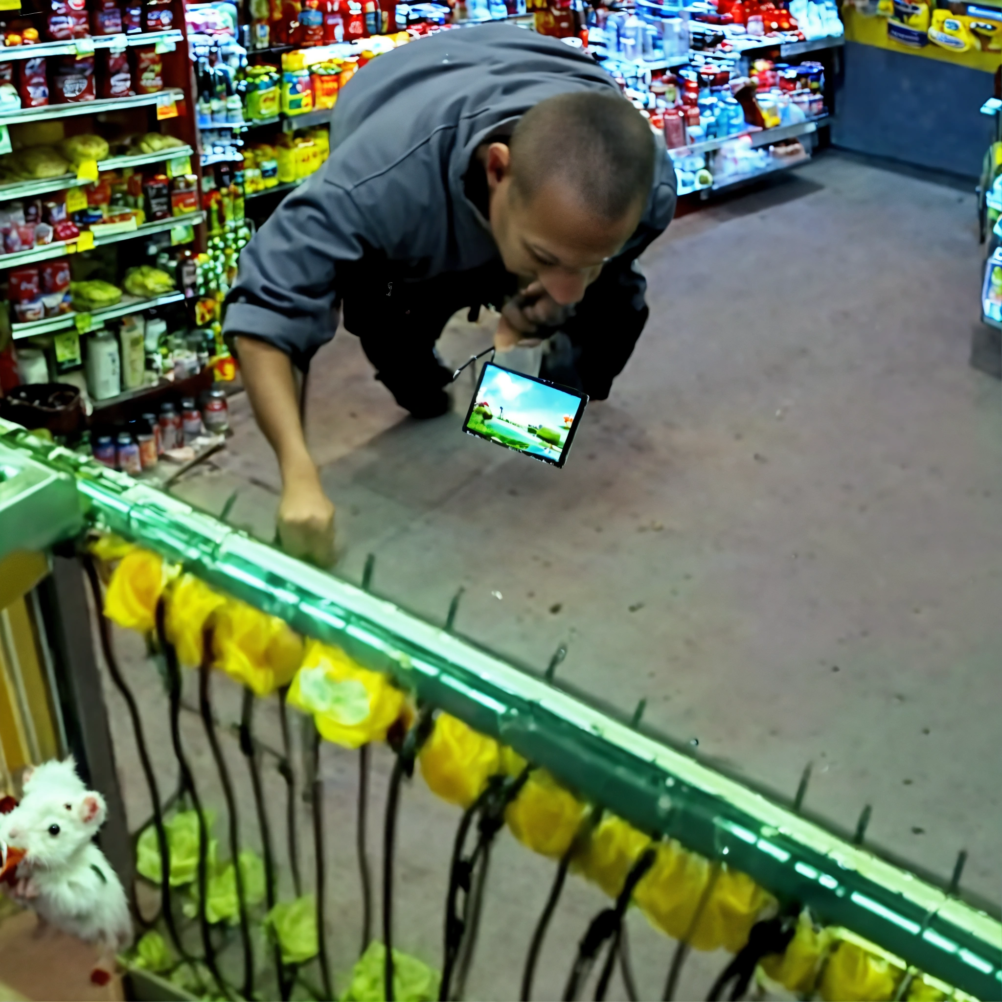 Cctv recording of human like rat robbing store