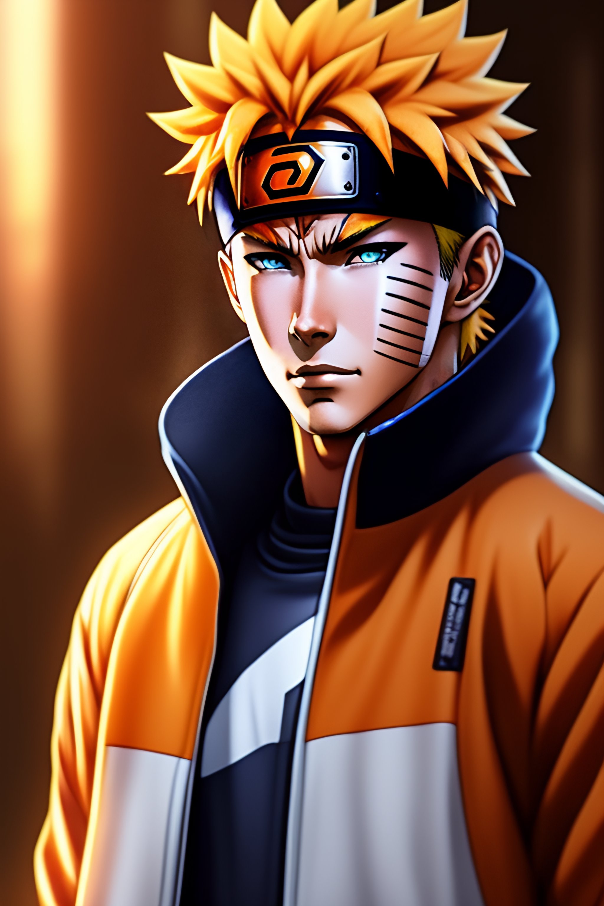 Realistic naruto uzumaki in tech gear clothes. digital art by james gurney and mœbius. cinematic, dramatic lighting