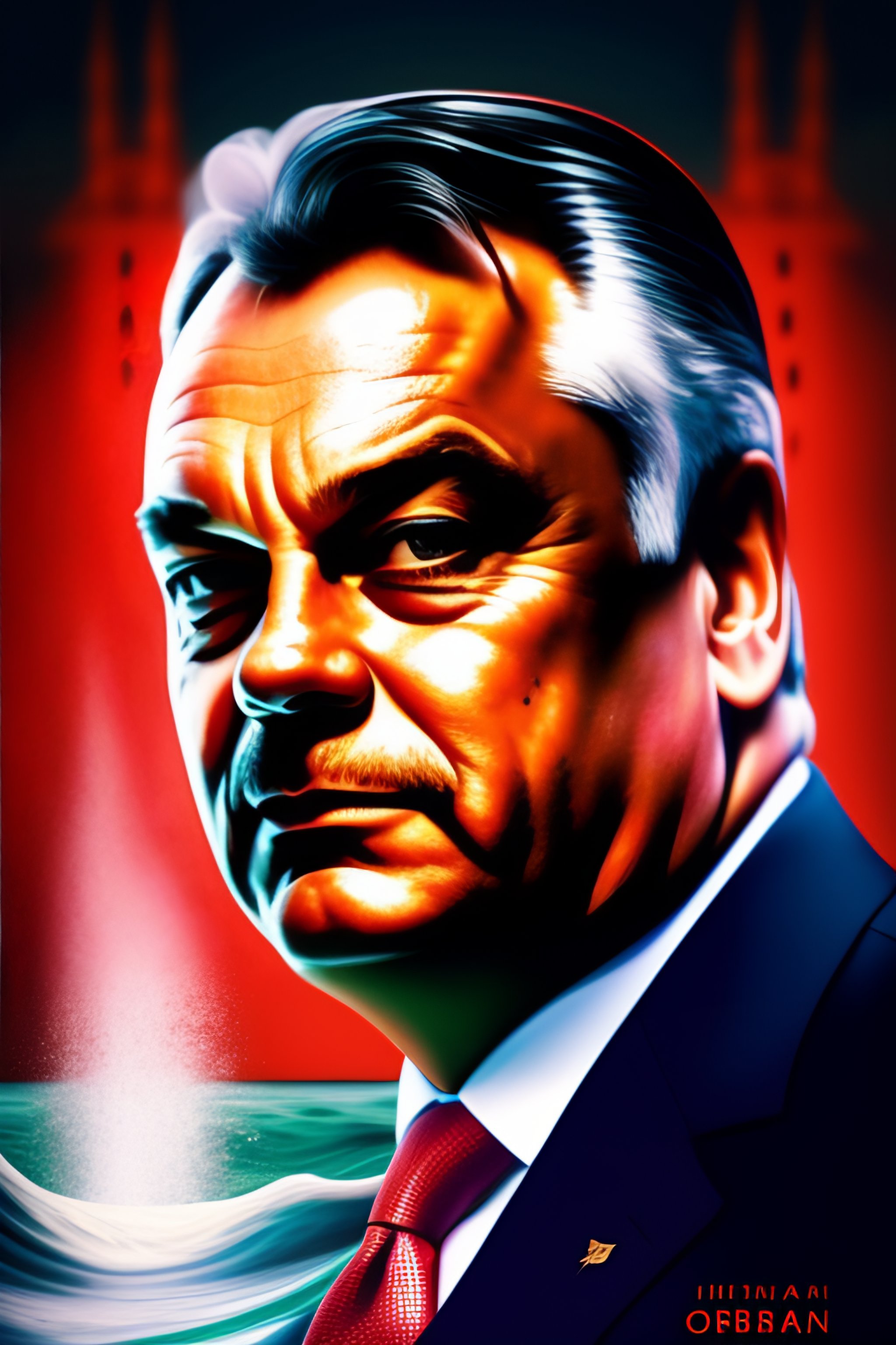 Unicum poster of viktor orbán in water