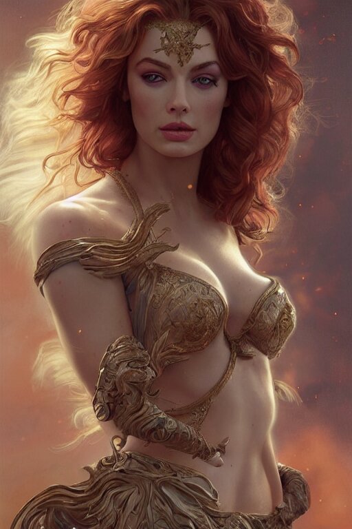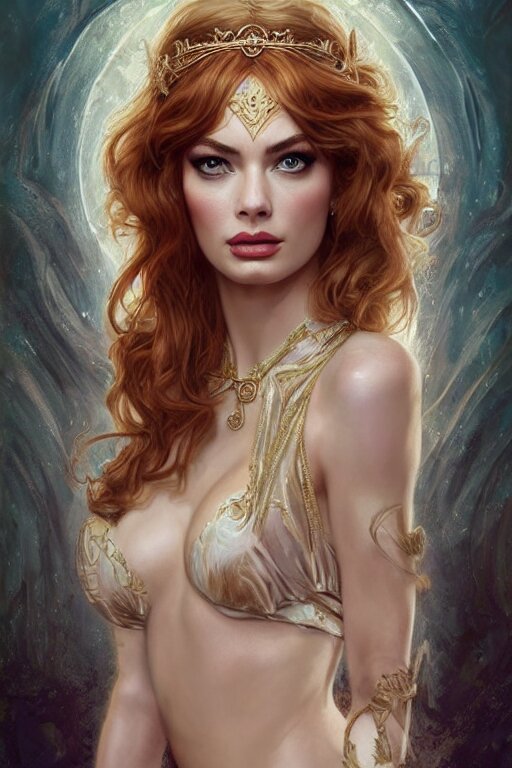 Ultra realistic illustration, a stunningly beautiful greek goddess of chaos played by christina hendricks and margot robbie and taylor swift and megan fox and emma stone and britney spears, intricate, elegant, highly detailed, digital painting, artstation, concept art, smooth, sharp focus, illustration, art by artgerm and greg rutkowski and alphonse mucha
