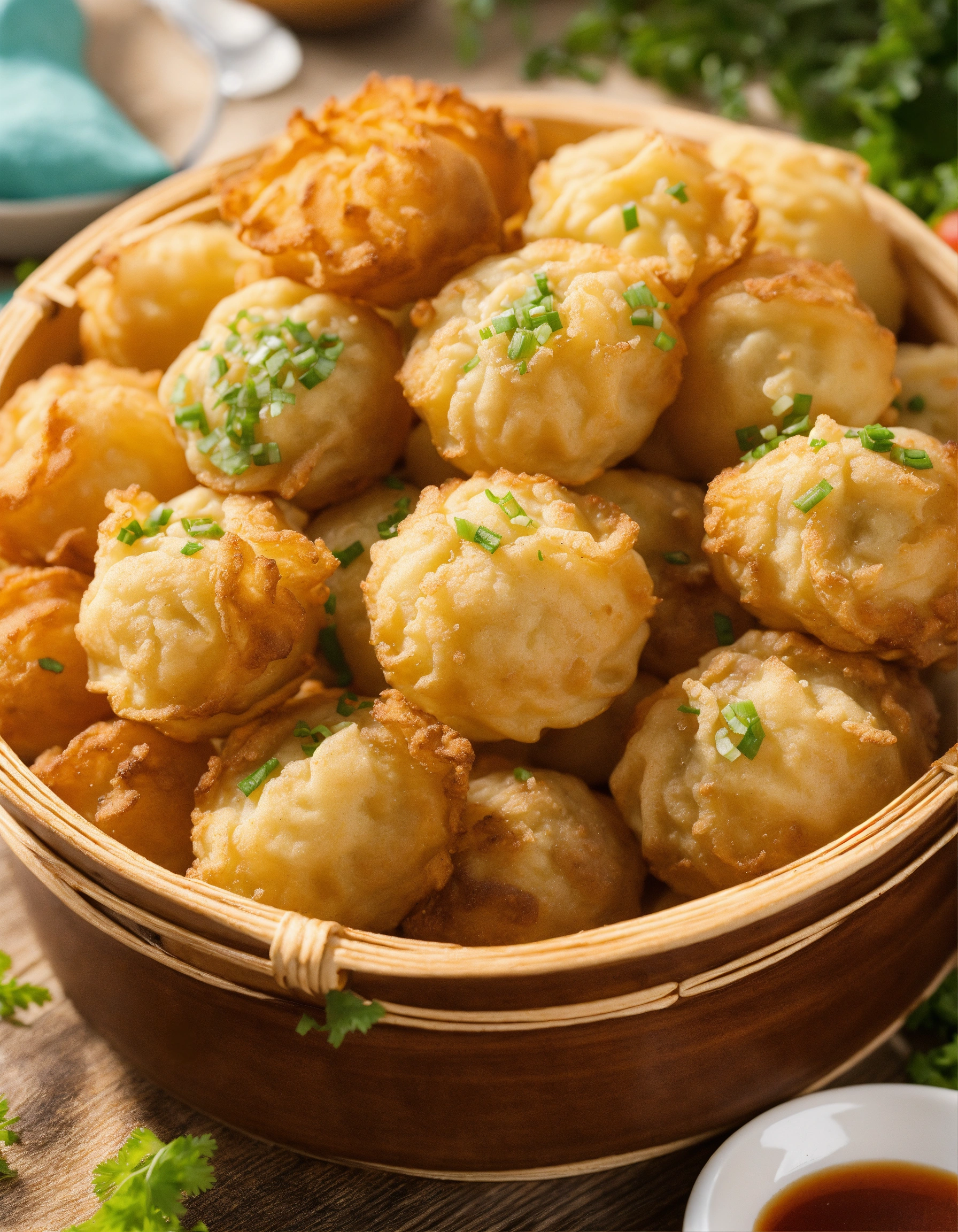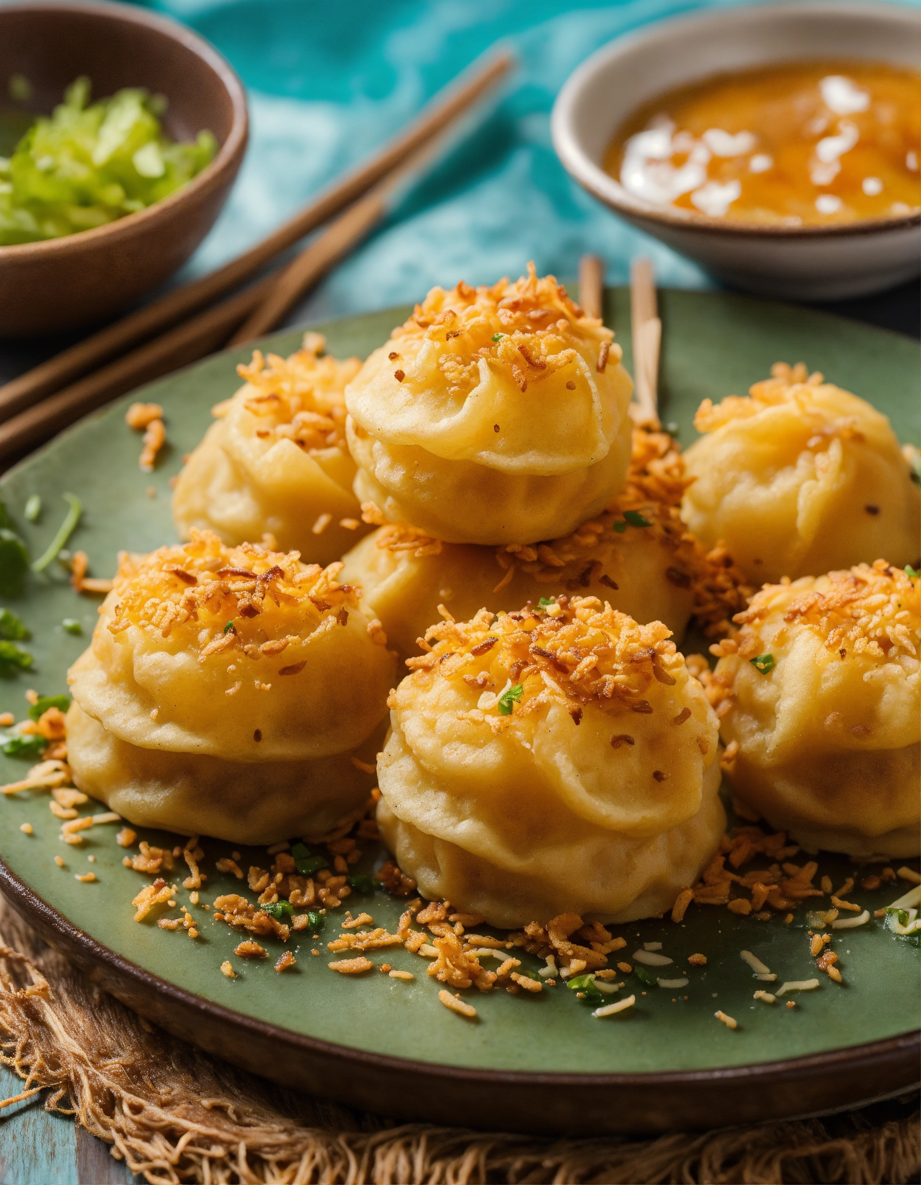 Cartoon carribean crispy on the outside and soft on the inside fried dumpling swirly aroma