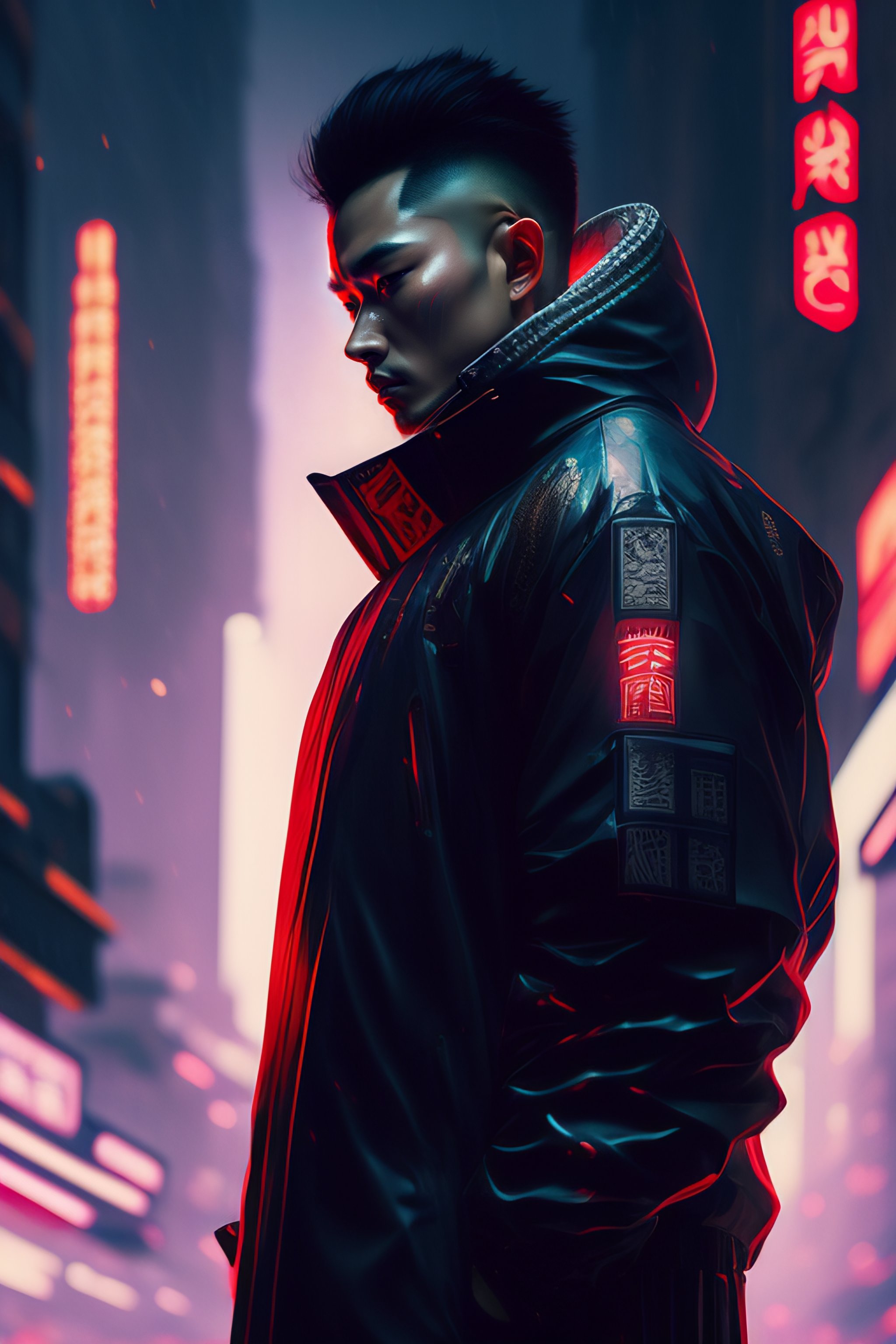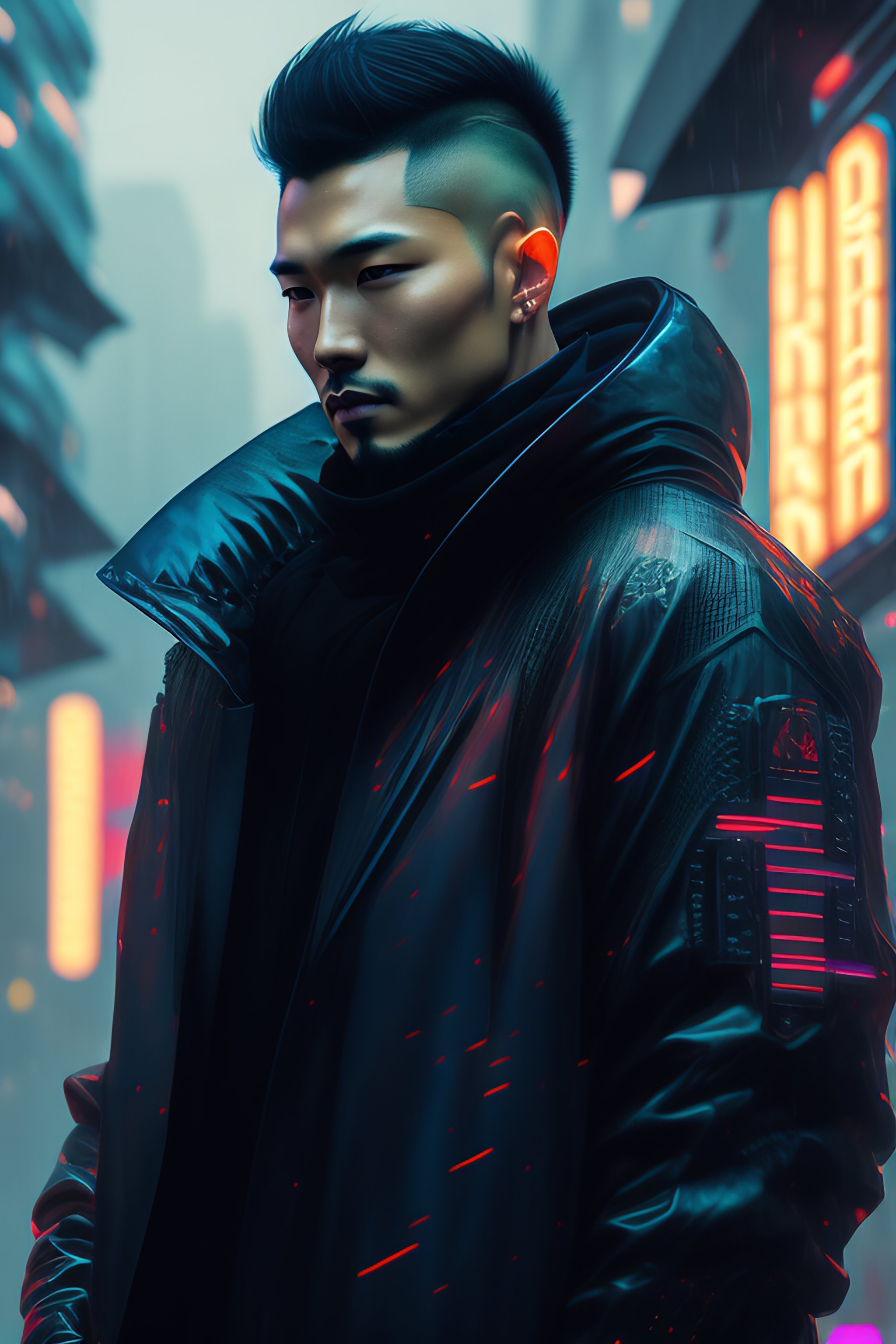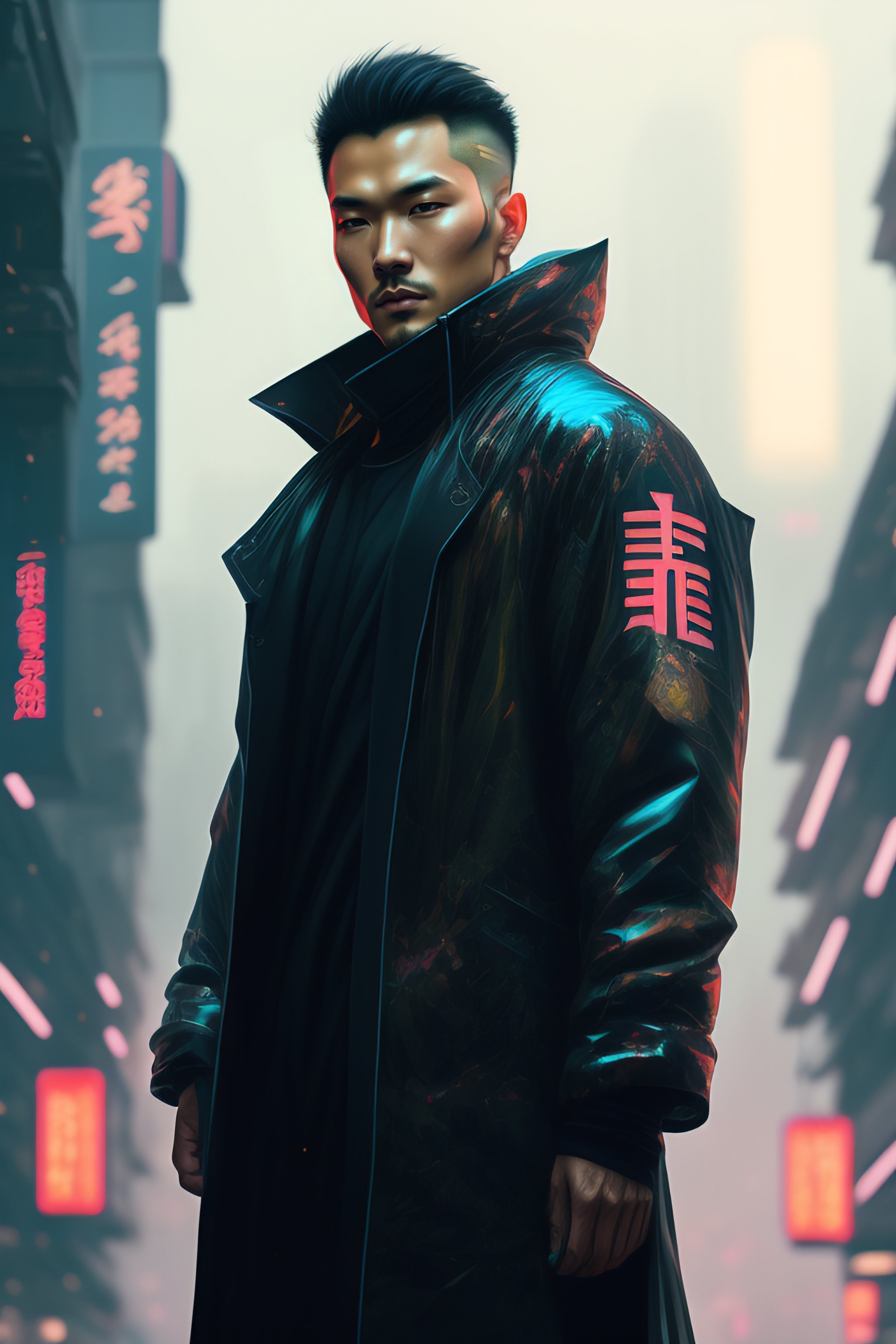 A beautiful ukiyo painting of full body cyberpunk blade runner, dramatic pose, wearing japanese techwear, detailed symmetrical, intricate complexity, concept art, by ismail inceoglu dragan bibin hans thoma greg rutkowski alexandros pyromallis nekro rene maritte illustrated, perfect face, bald head, fine details, realistic shaded, fine - face, pretty face