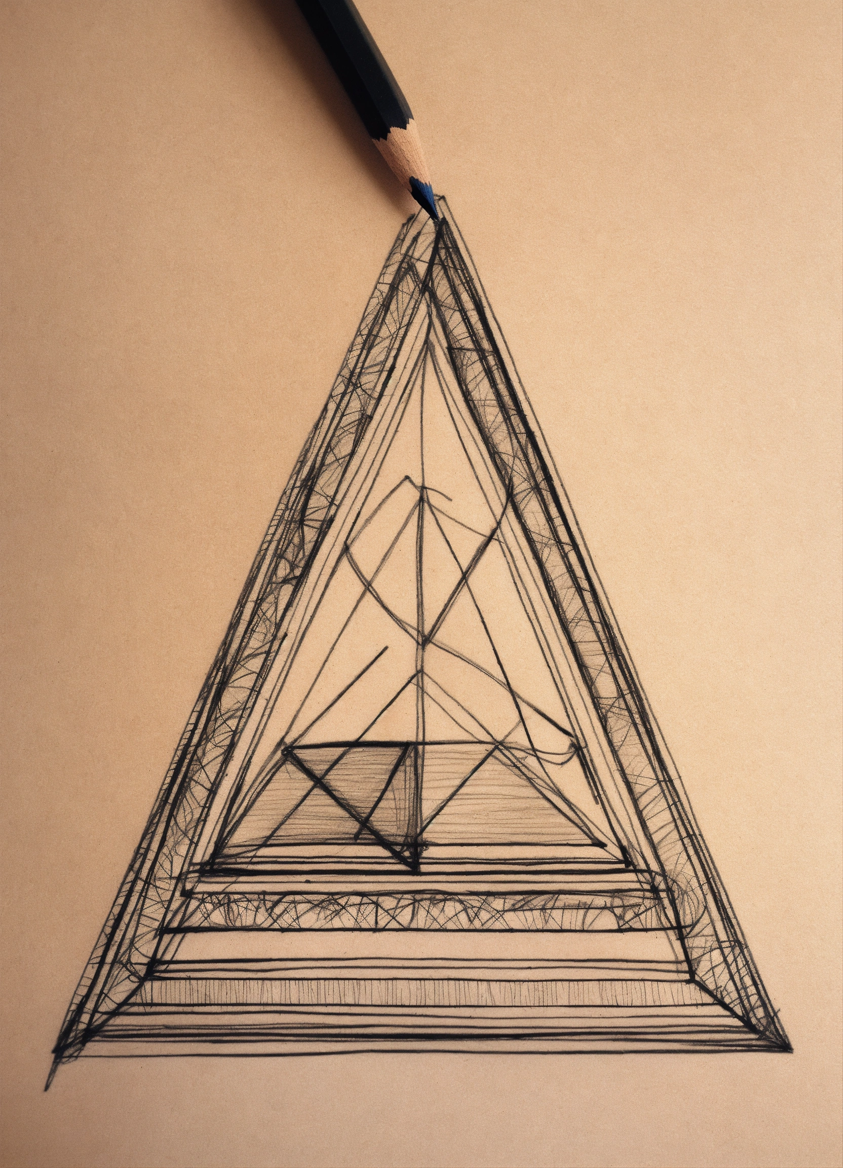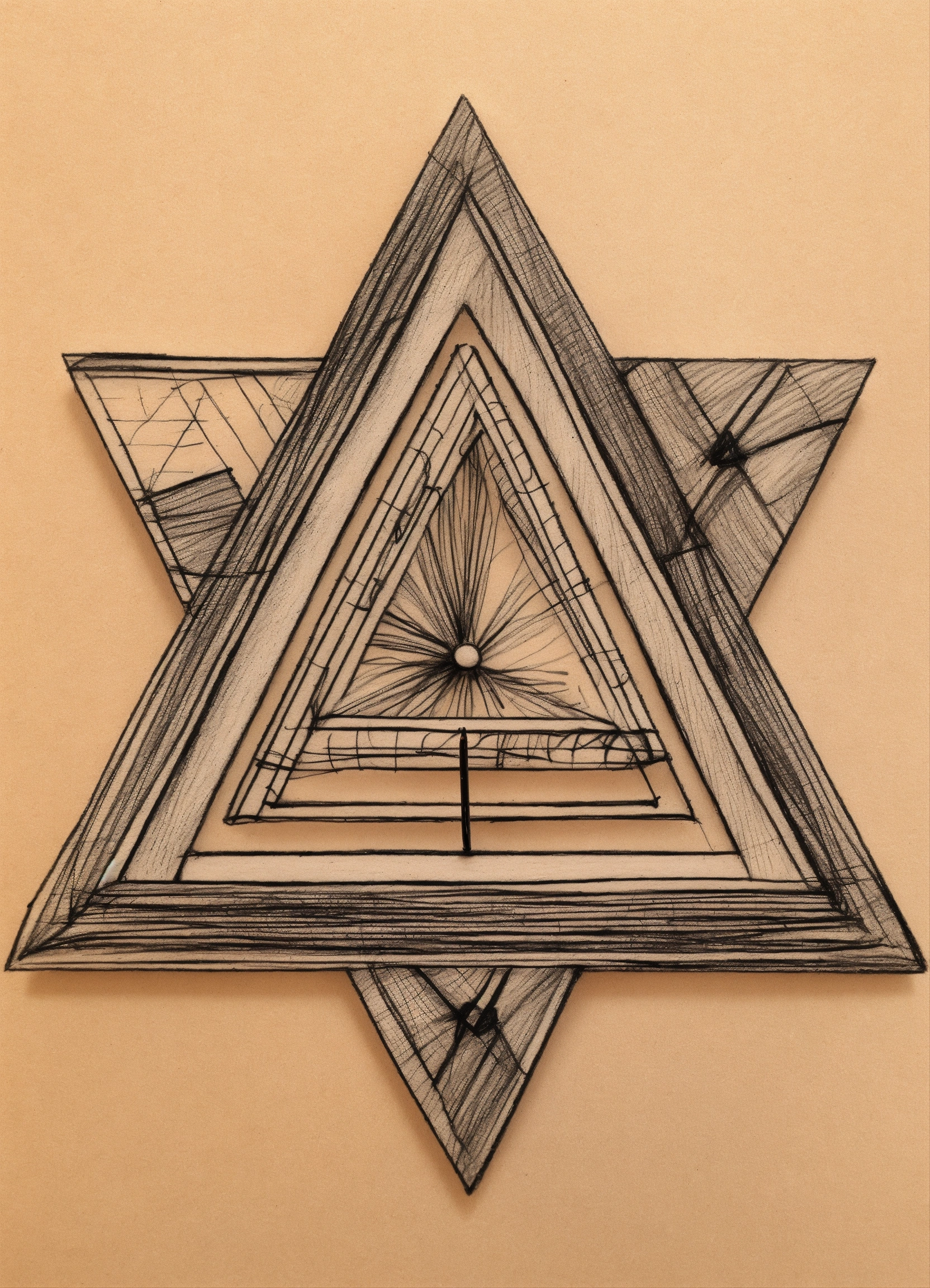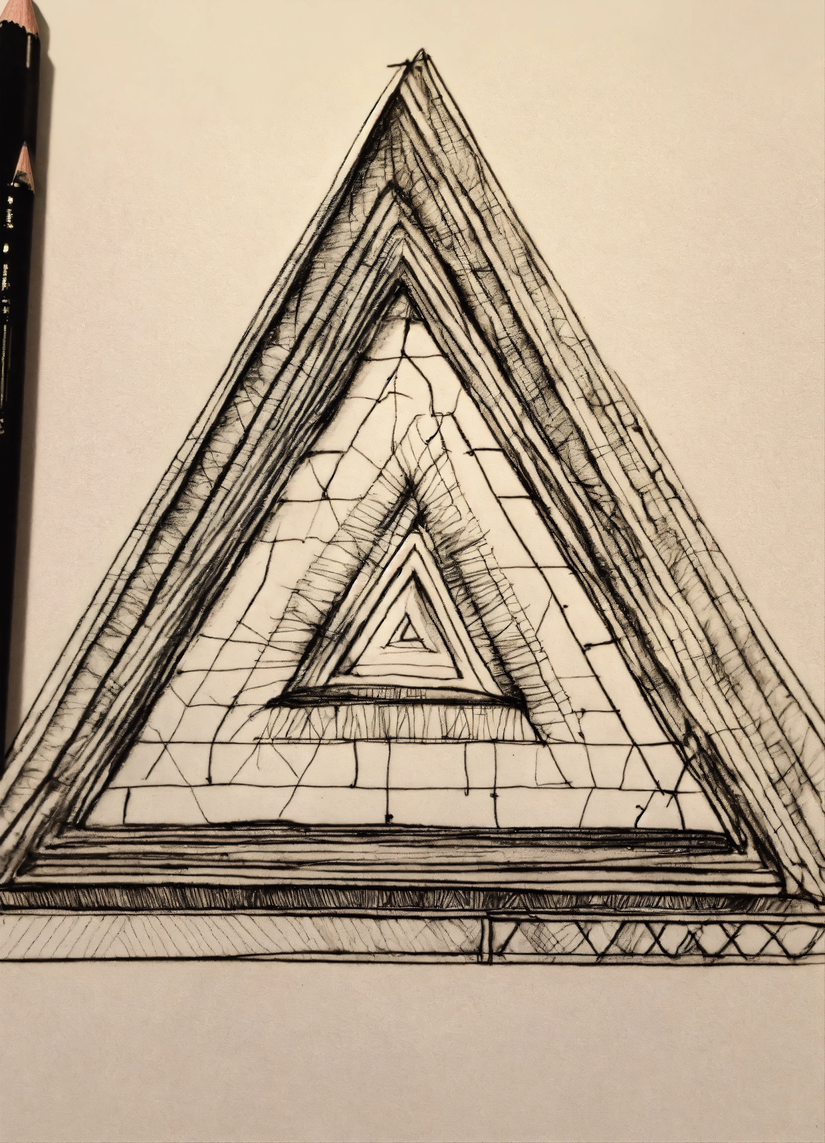 Draw me a shape with pencil, contains circle, triangle and rectangle that is good for brooch. sketchy, pencil work, drawing, black pencil