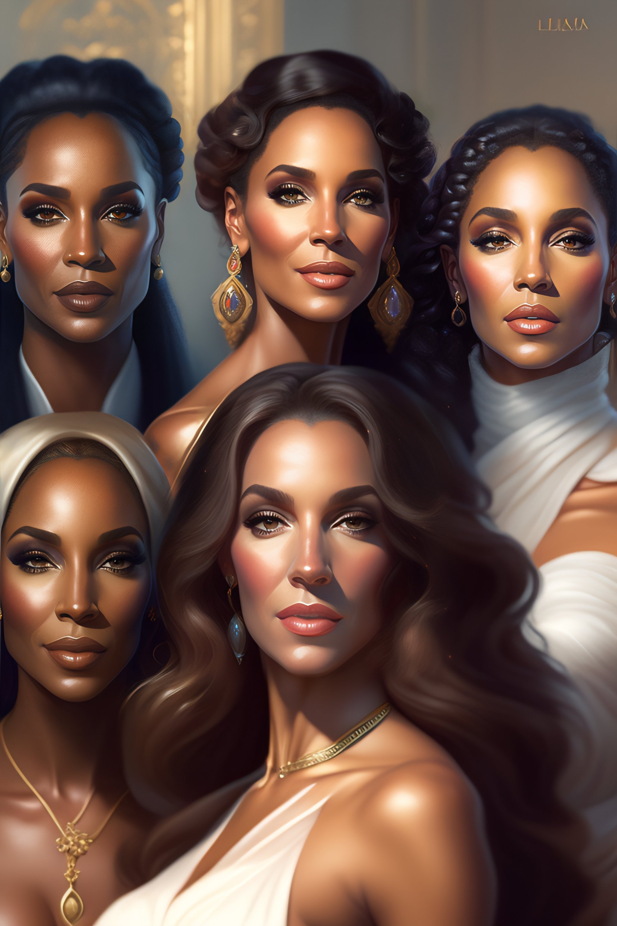 A detailed group portrait of a cute diana krall, whiteny houston, sade, celine dion, by justin gerard and greg rutkowski, digital art, realistic painting, dnd, character design, trending on artstation