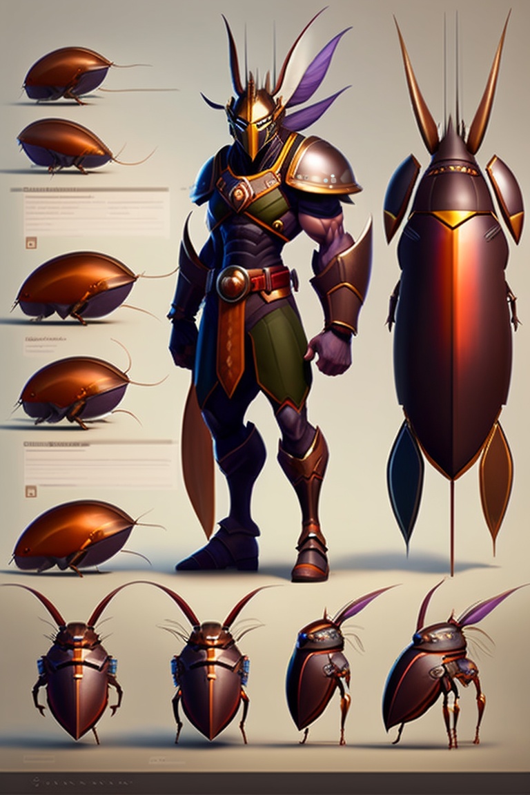 cockroach warrior orthographic full body view detailed