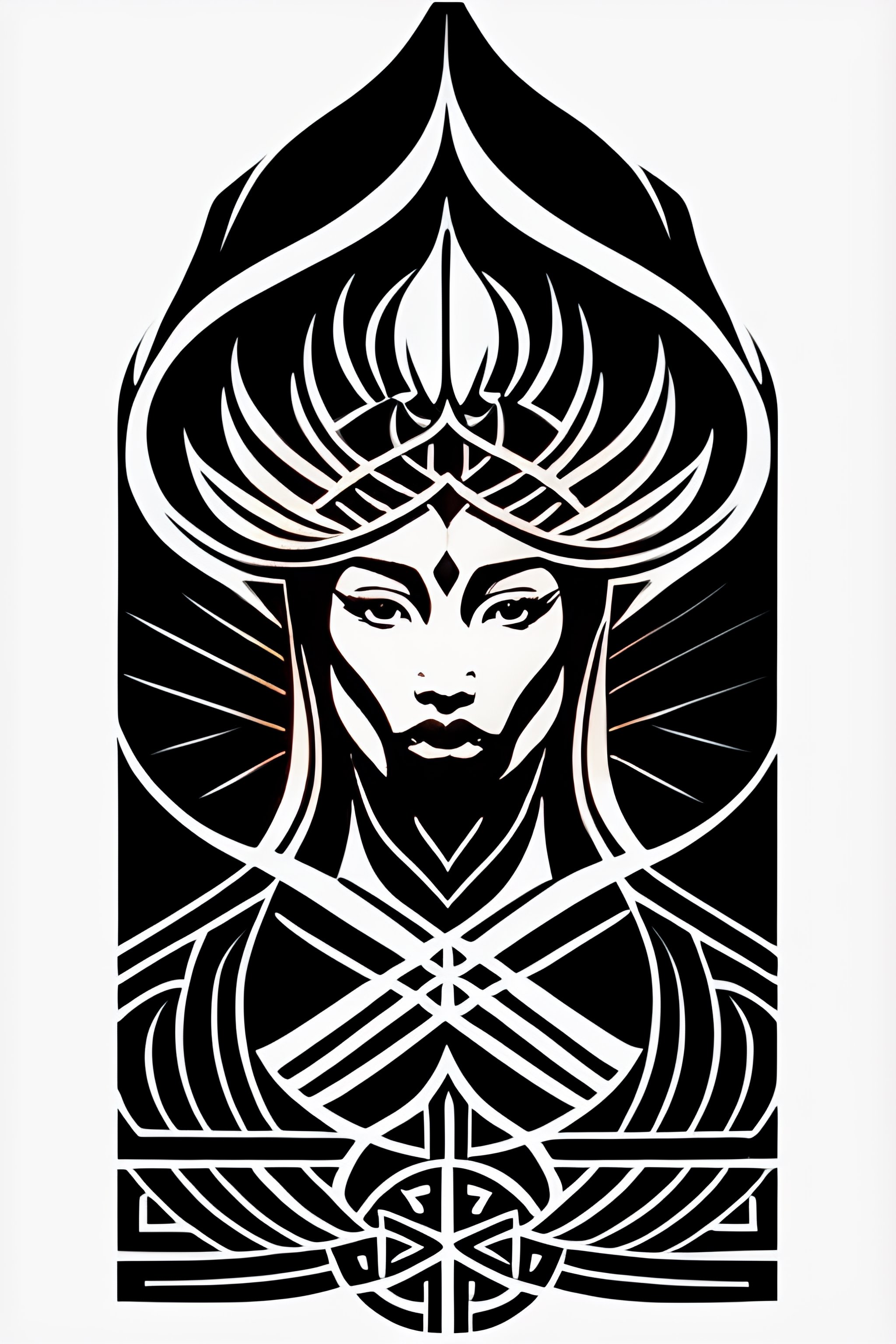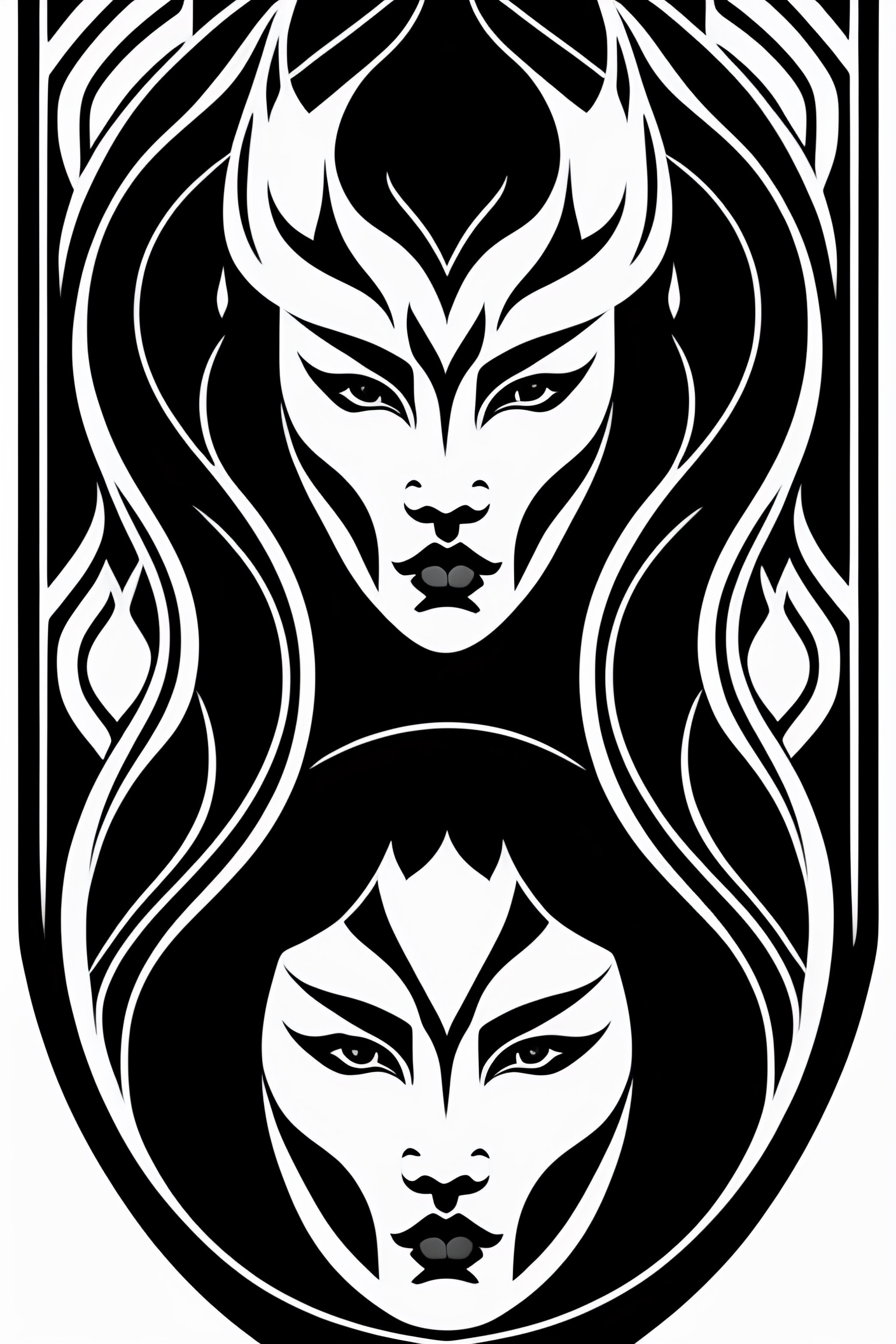 Symmetry, miyamoto musashi, black and white, white background, no background, ink fine line art stylized, vector, design for tattoo