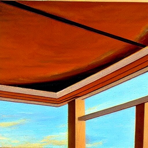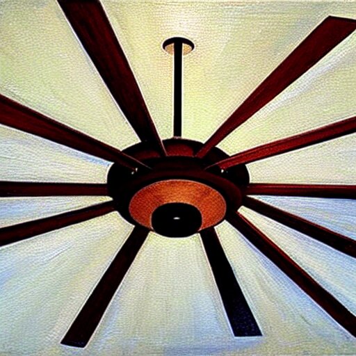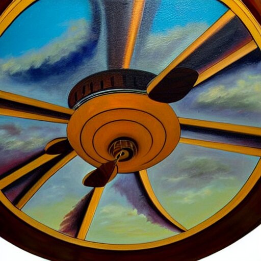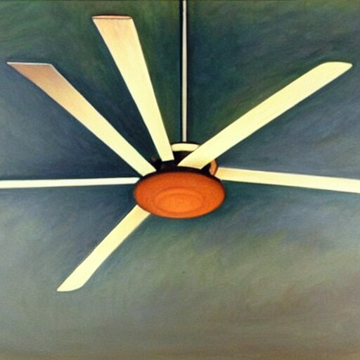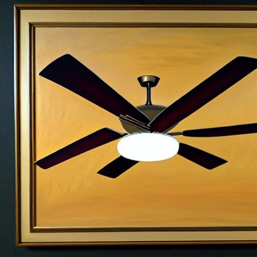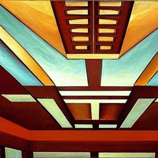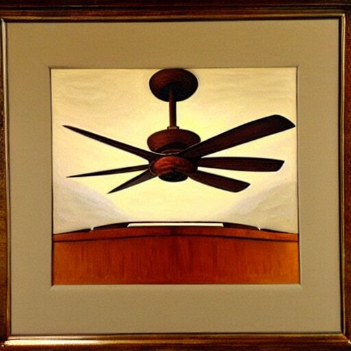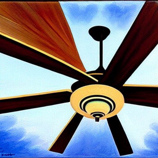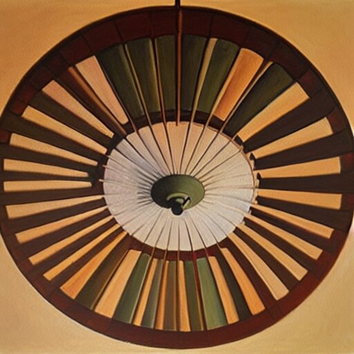 An oil painting of a ceiling fan designed by frank lloyd wright