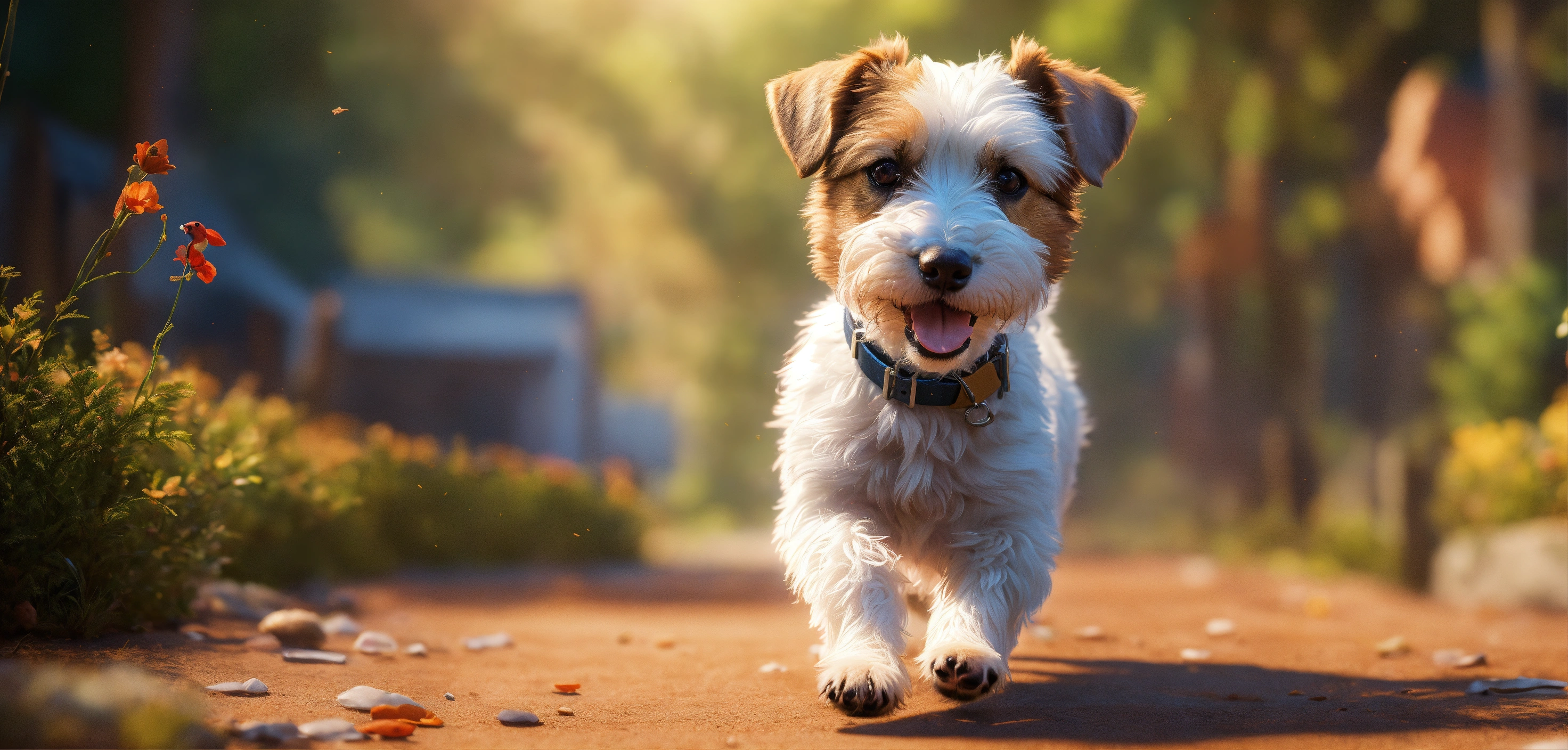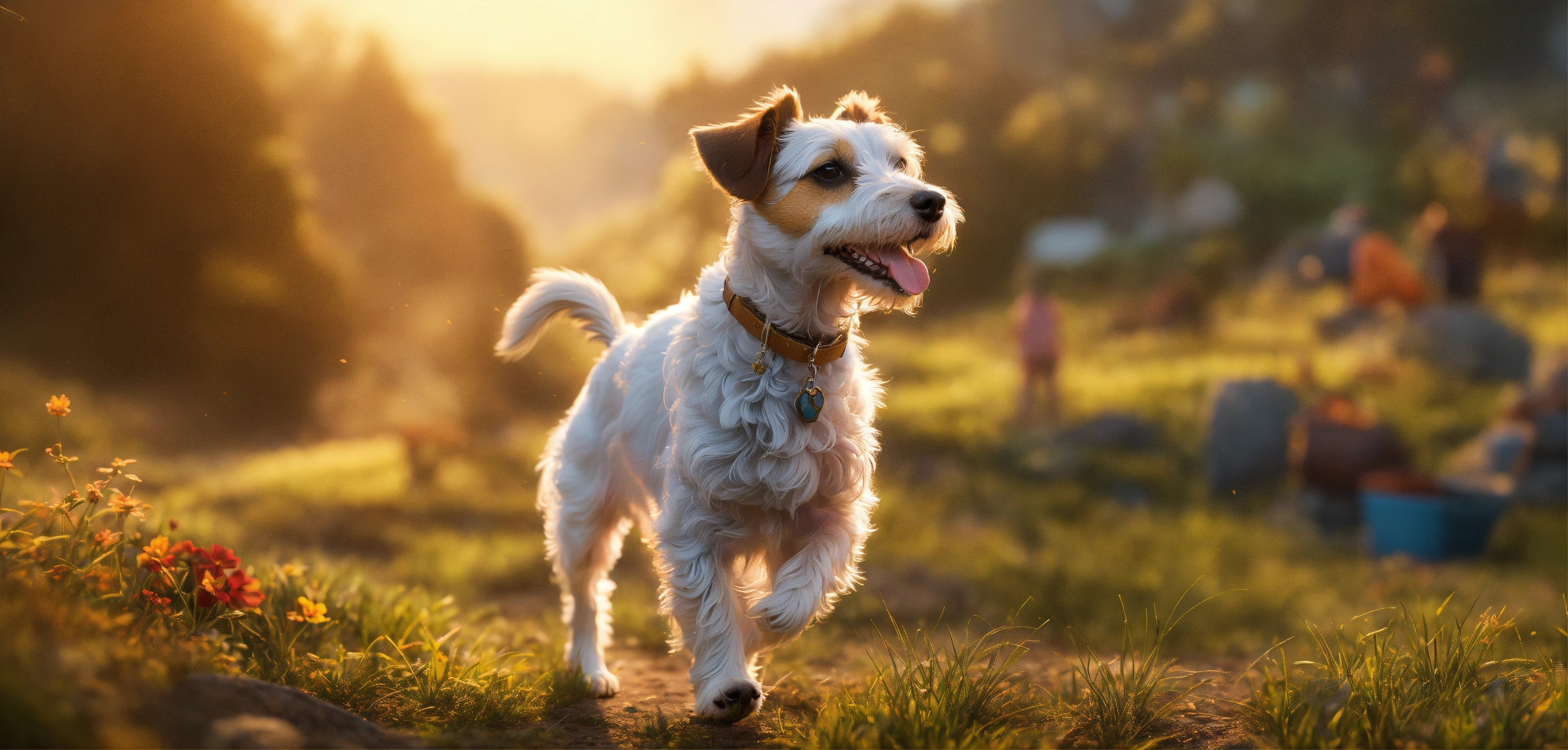 Craft a full body image in the distance with free space, of a short haired small parson russell terrier dog, capturing its adorable features and the main character's presence. use a pixar-style illustration to make the scene heartwarming., ultra hd, realistic, vivid colors, highly detailed, uhd drawing, pen and ink, perfect composition, beautiful detailed intricate insanely detailed octane render trending on artstation, 8k artistic photography, photorealistic concept art, soft natural volumetric cinematic perfect light