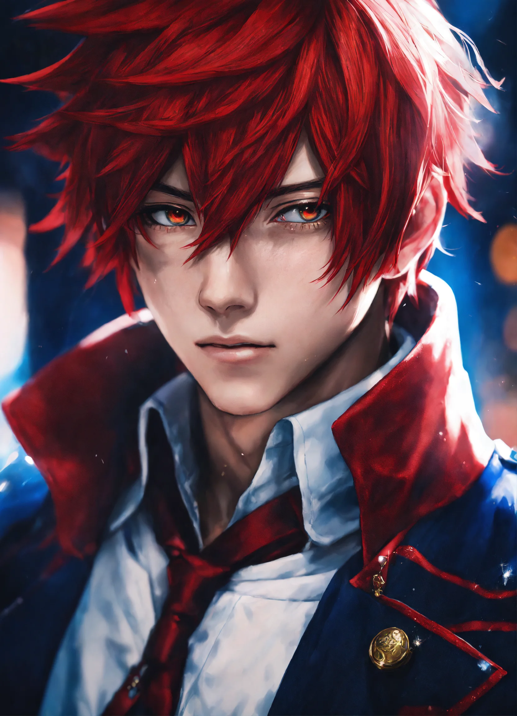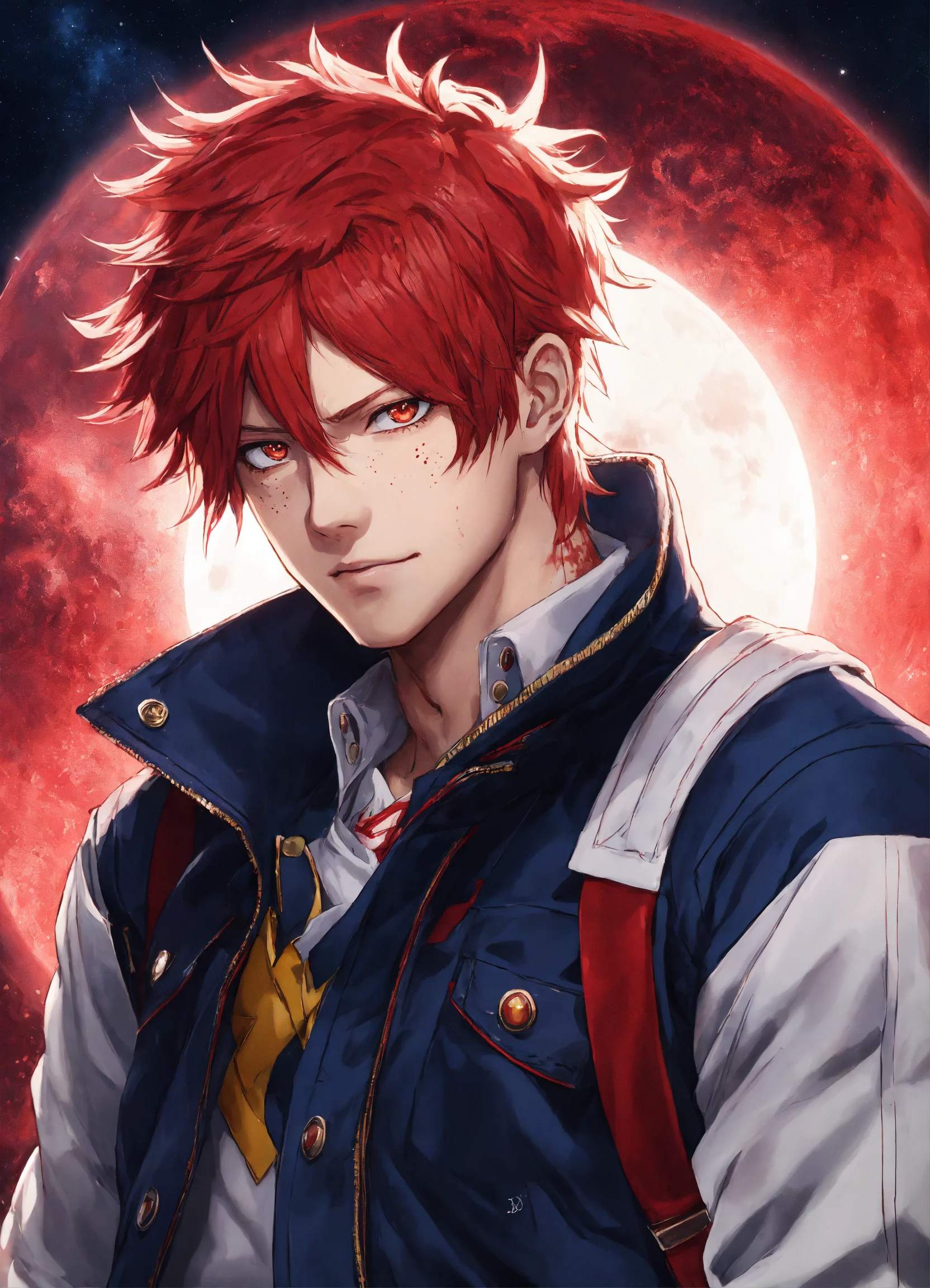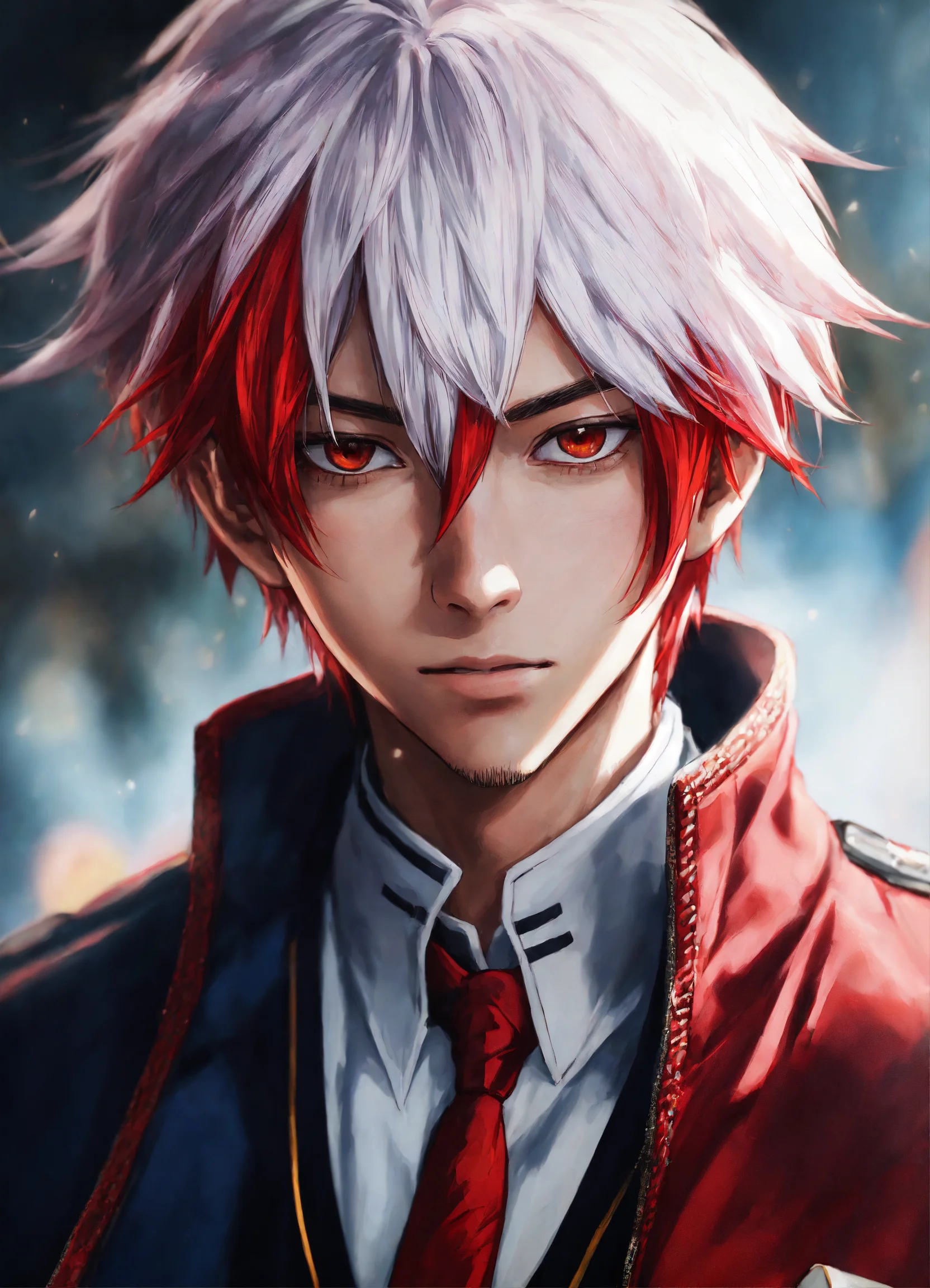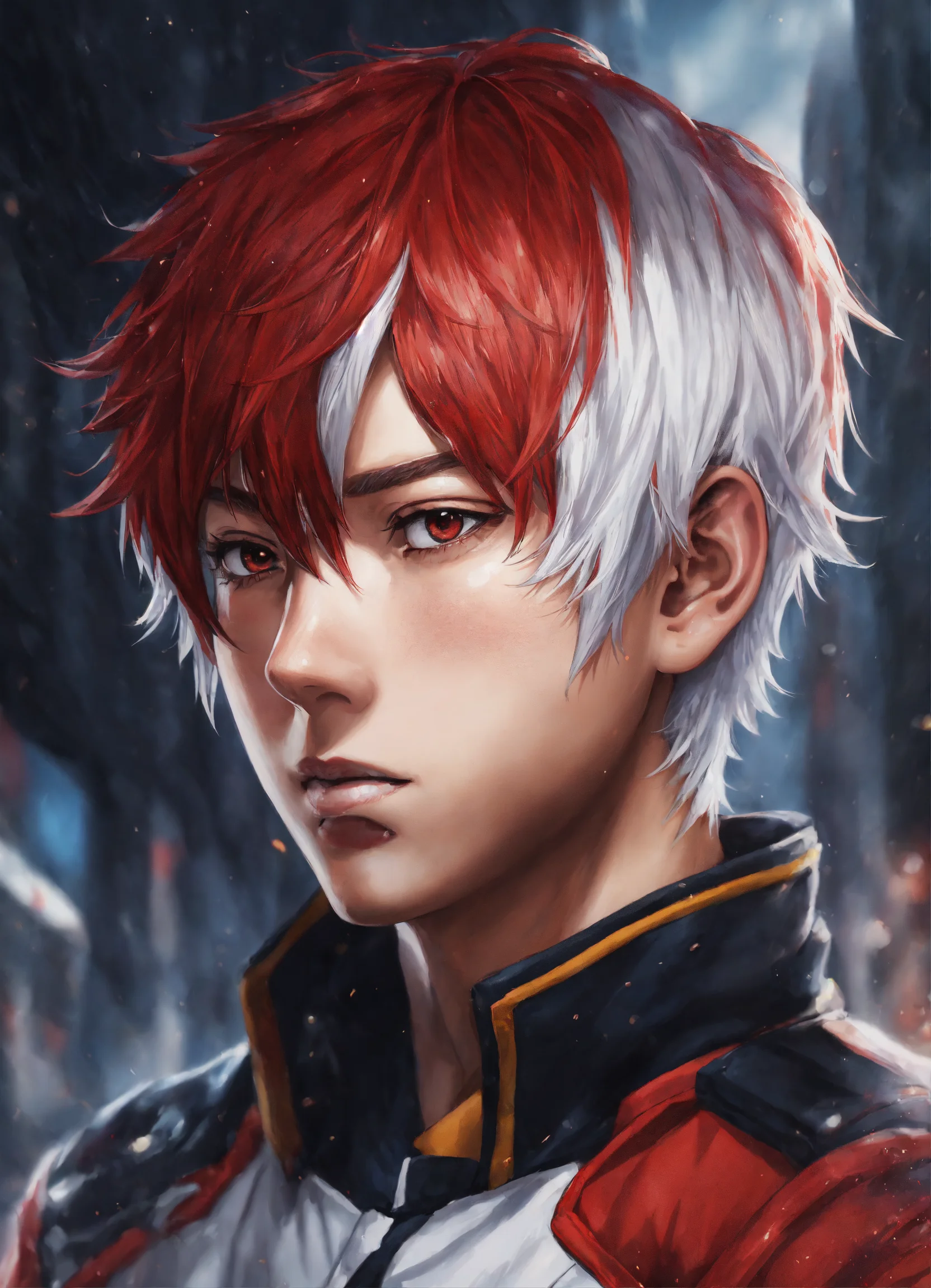 Haz a shoto todoroki con su pelo rojo y blanco y su lunar rojo en el ojo en la vida real