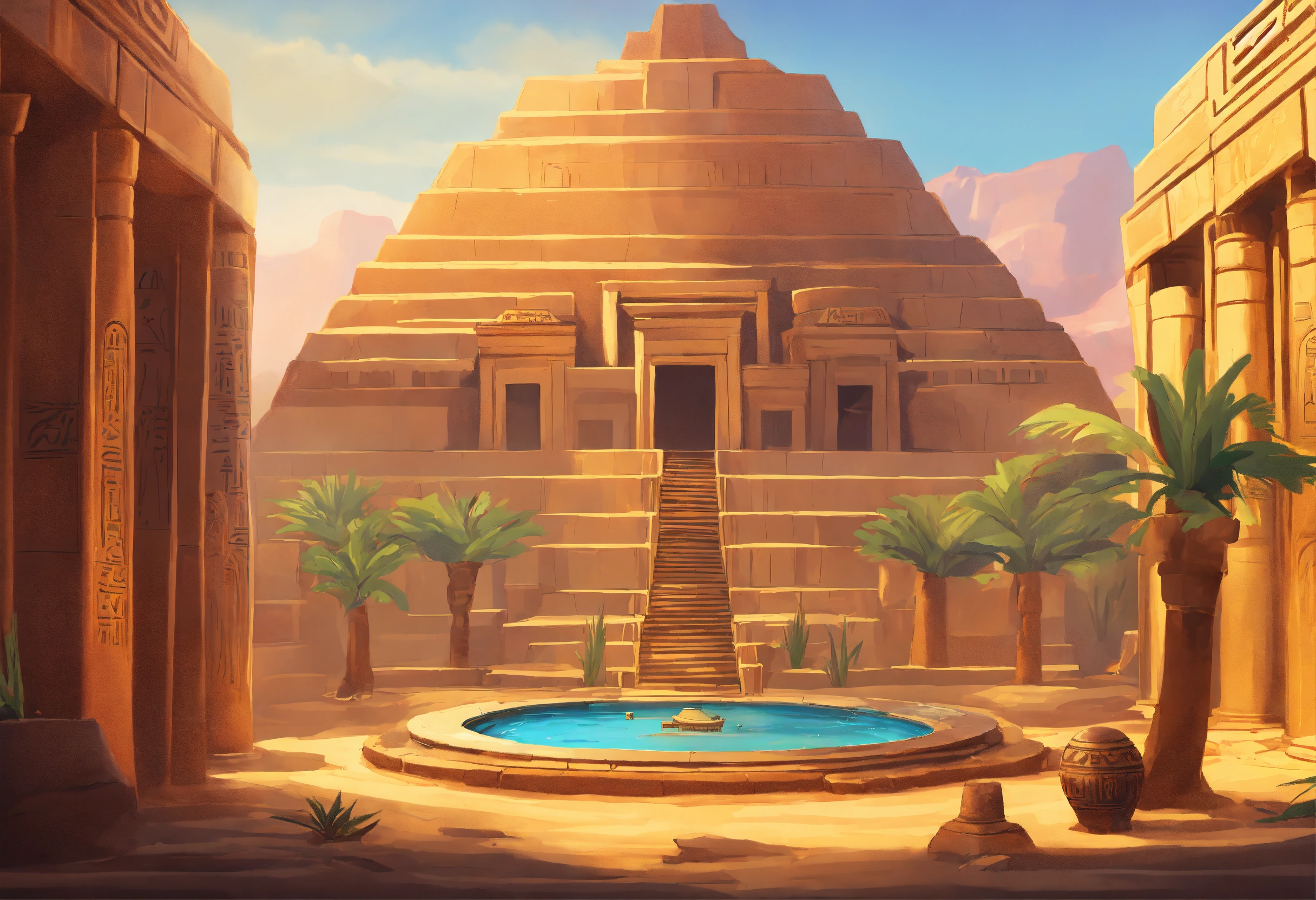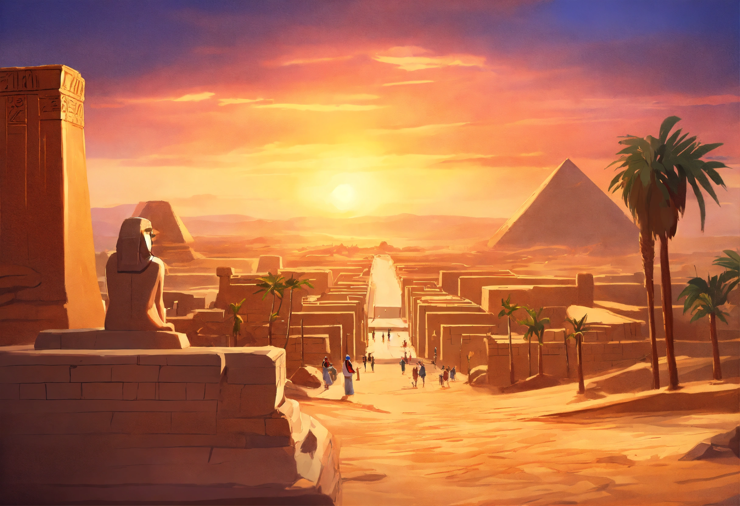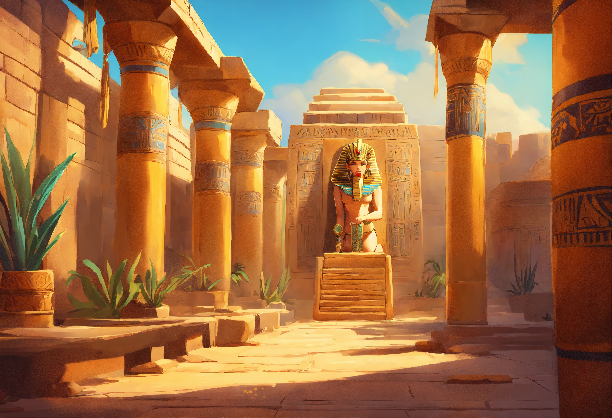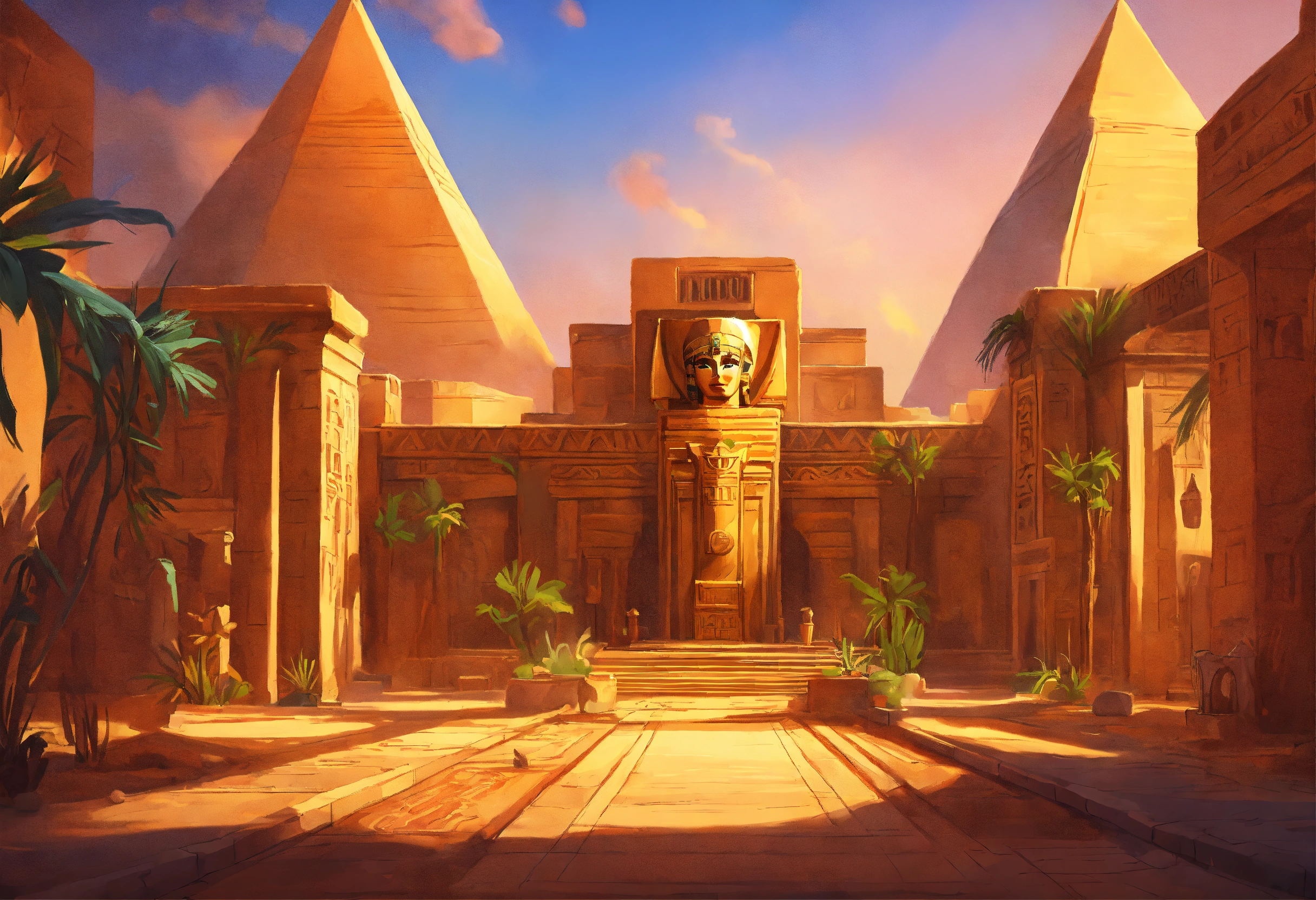 Egyptian ancient city, spin background for the slot game, realistic cartoon oil paint, 2d illustration style, sharp focus, bright color, digital paint design, trending on artstation, high details, simple lines, art by josé luis ágreda and camilla d'errico.