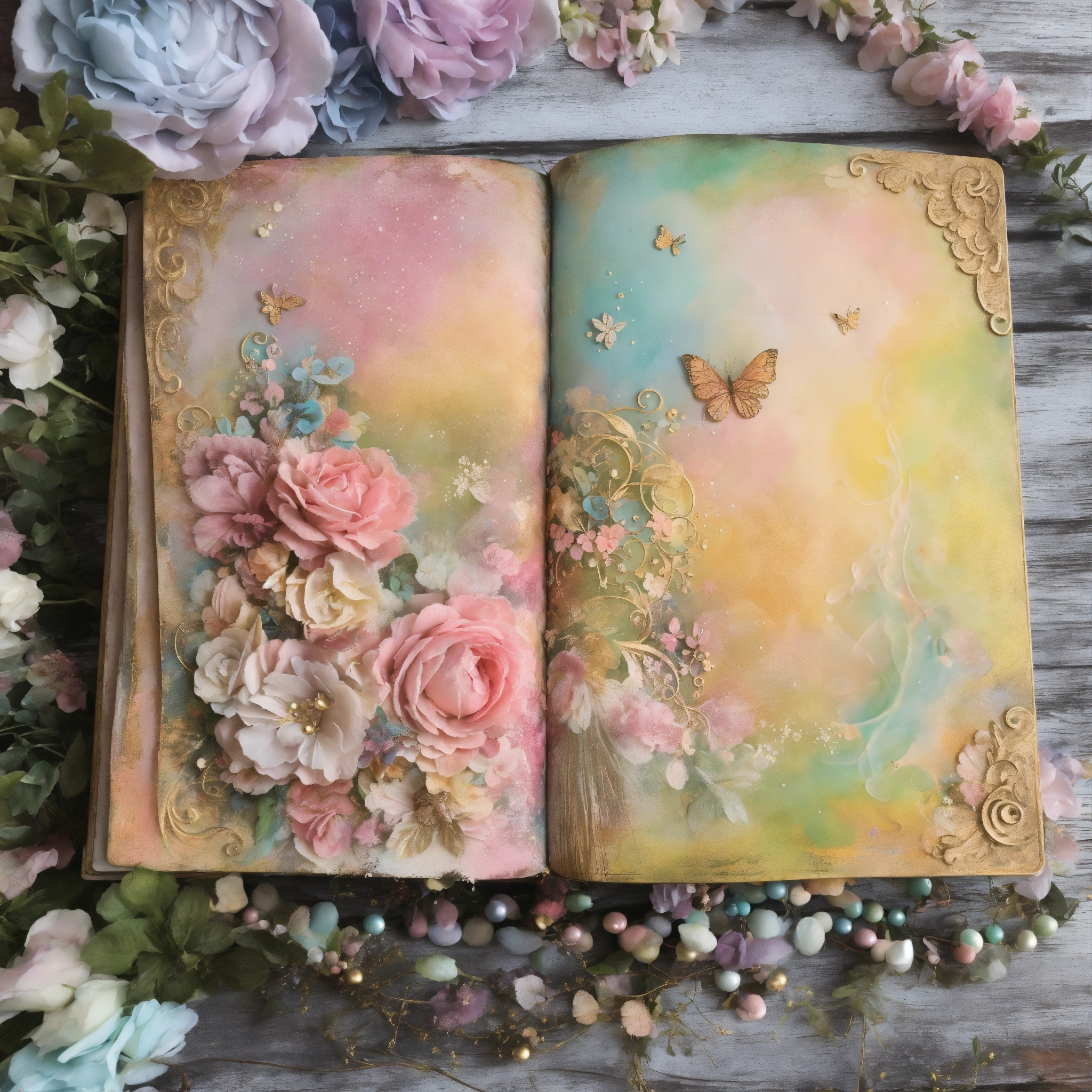 Shabby chic dreamy mist pastel junk journals precious memories swirling magical fairytale abstract art style