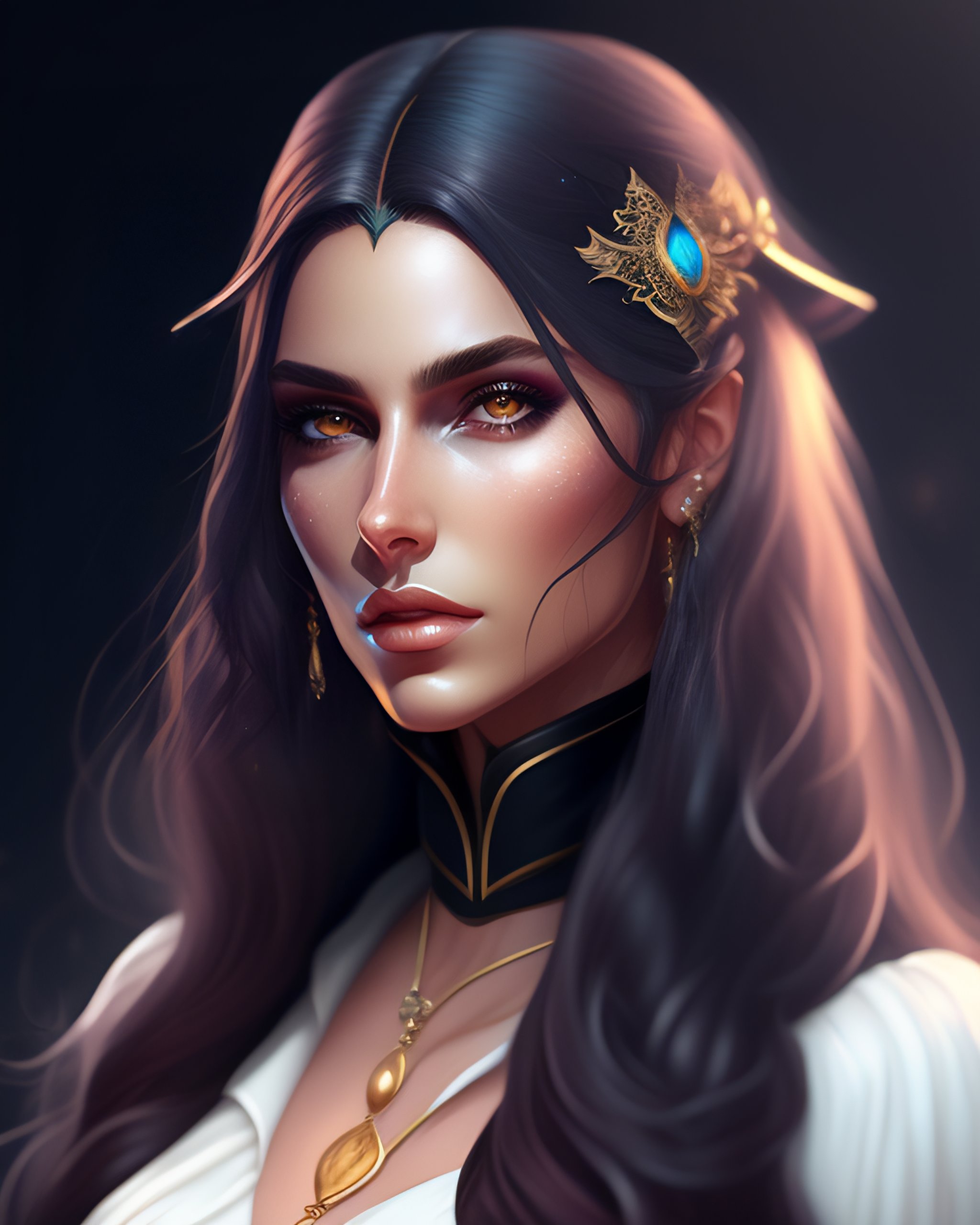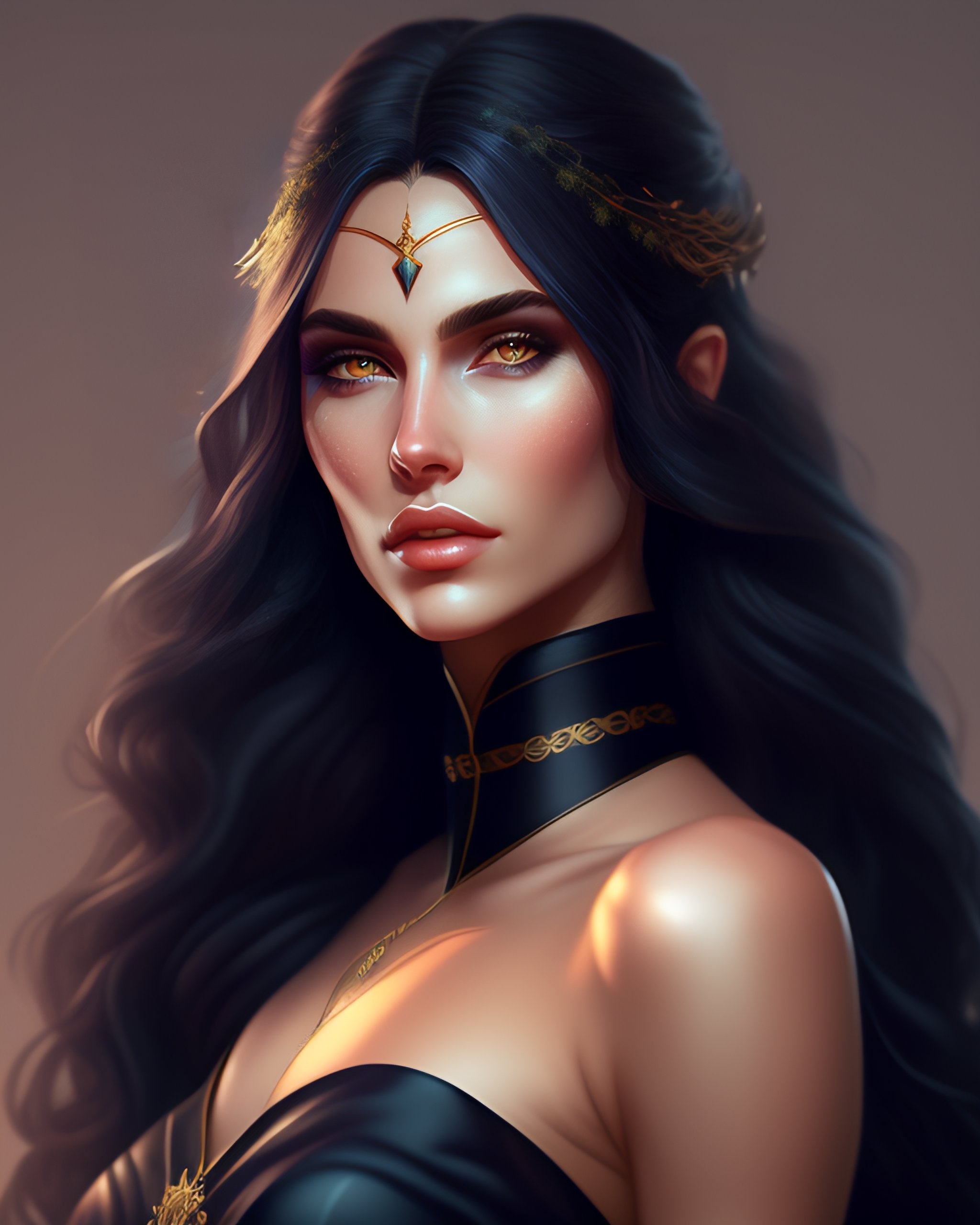“ evil witch, youthful attractive, dark clothes, grace, flowing hair, muted colors, symmetrical face portrait, artstation, cgsociety, highly detailed ”