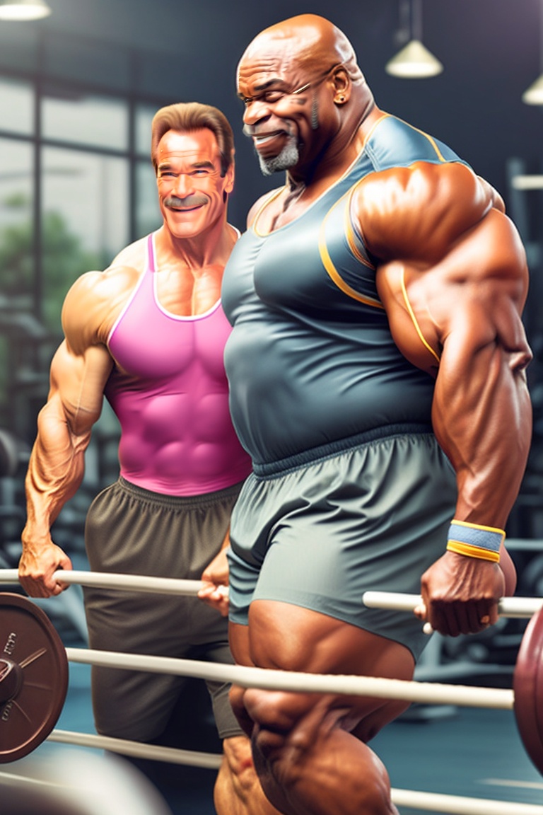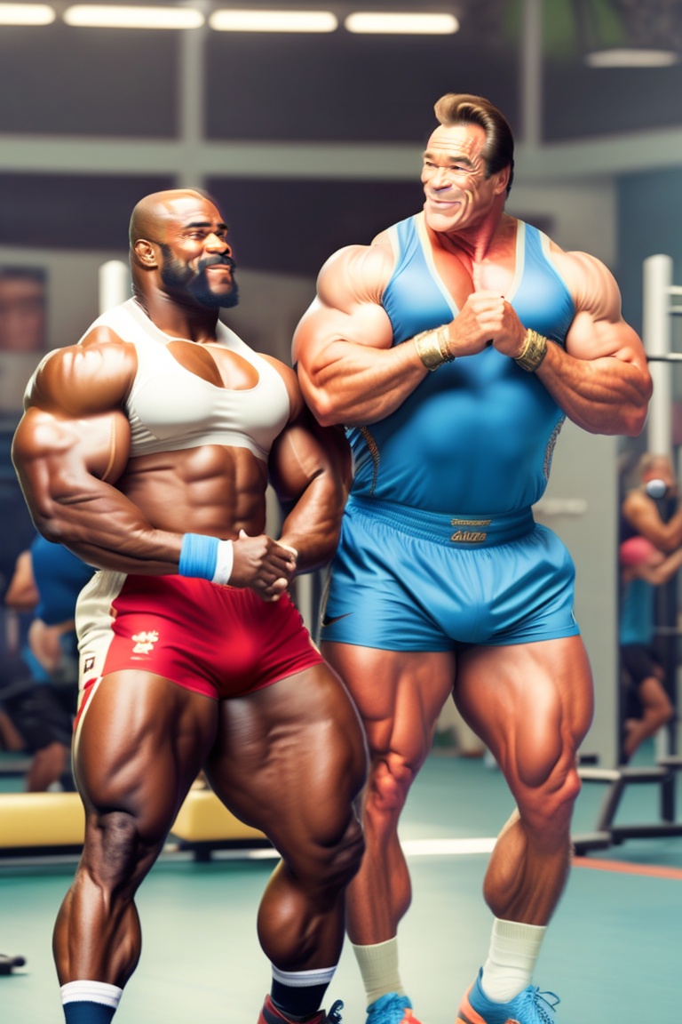 A photo of ronnie coleman and arnold schwarzenegger in old age training in a gym