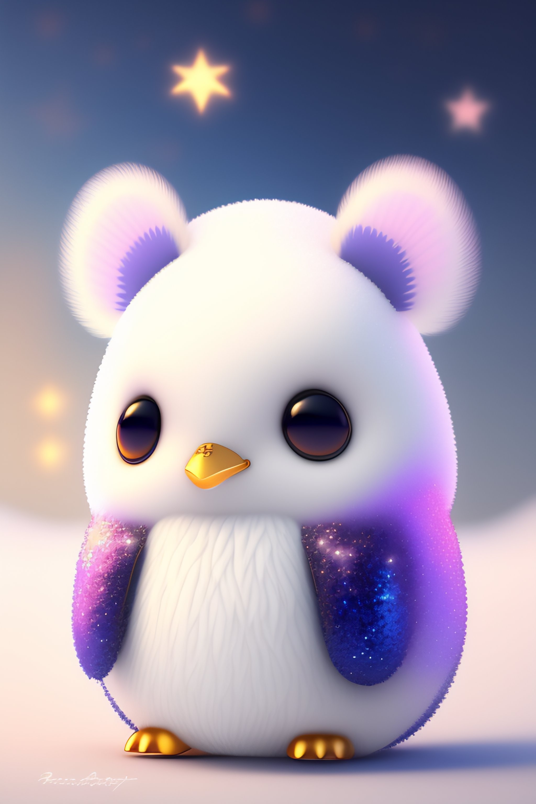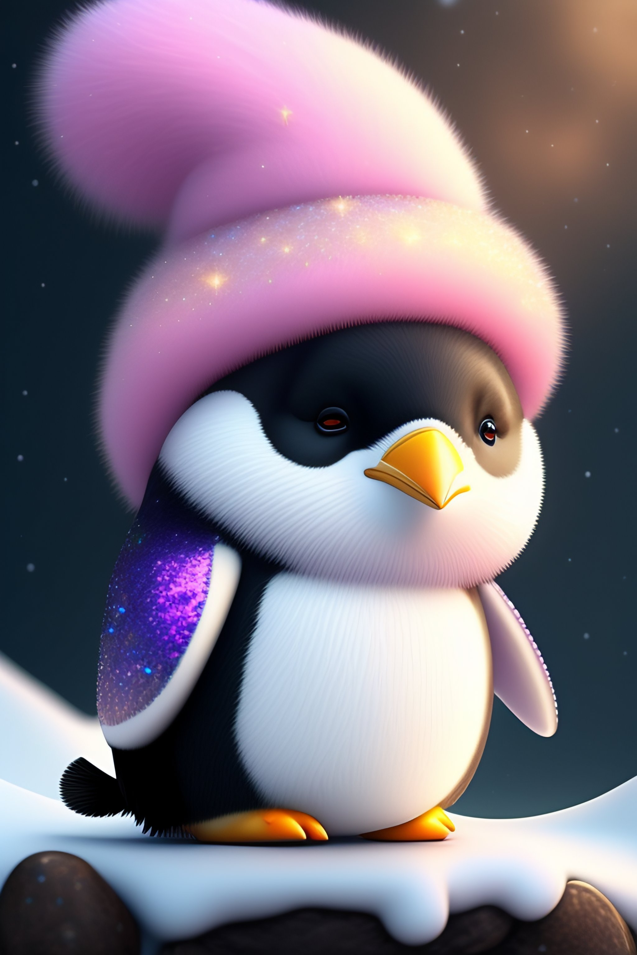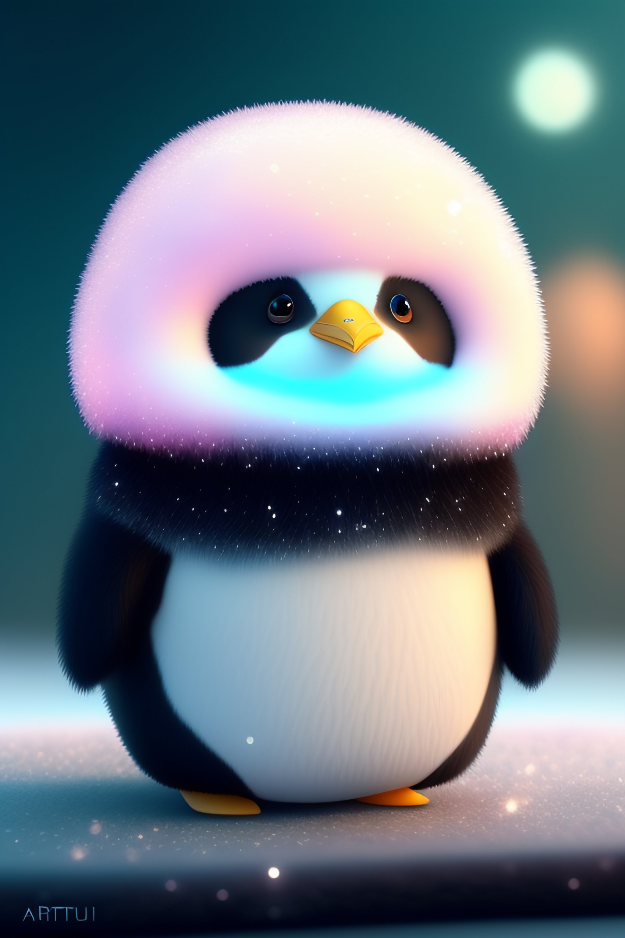 Cute and adorable cartoon fluffy penguin, glitter, white, fantasy, dreamlike, surrealism, super cute, trending on artstation