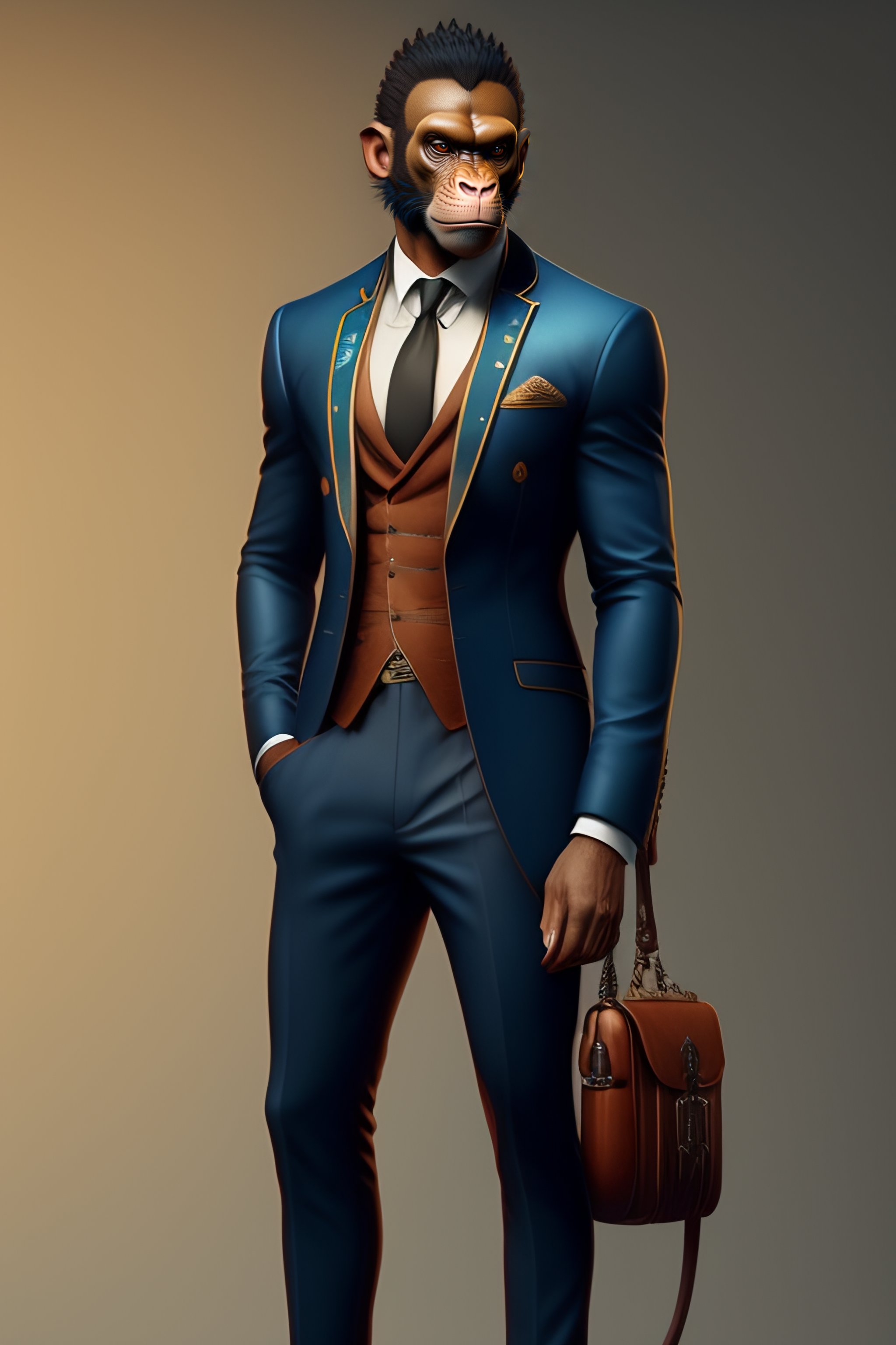 Anthro furry humanoid monkey, three-piece suit, checking watch, character concept design, painting, detailed, vivid, trending on artstation