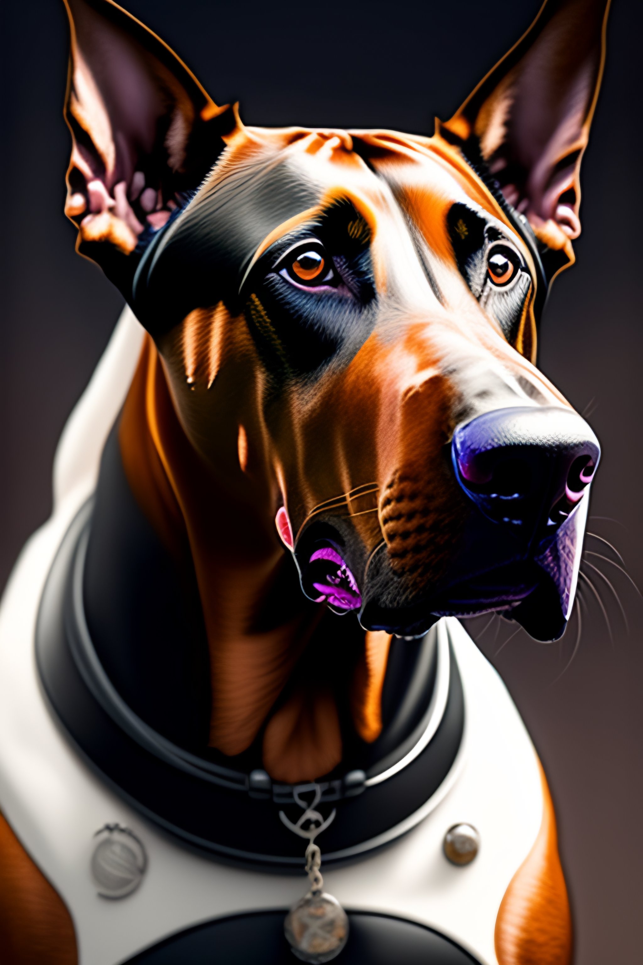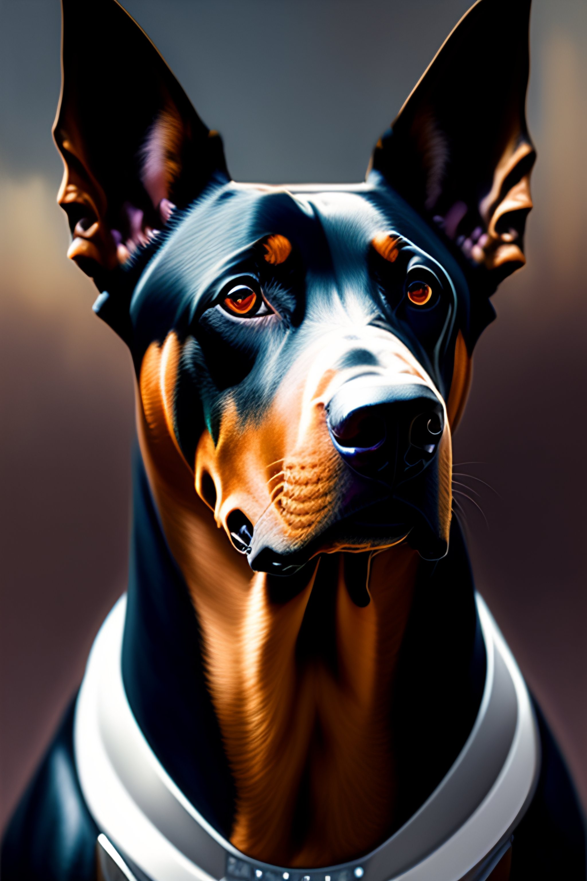 A doberman dog as the doomslayer, realistic scifi cyberpunk power armor robot, closeup portrait art by donato giancola and greg rutkowski, vintage retro scifi, realistic face, digital art, trending on artstation, symmetry