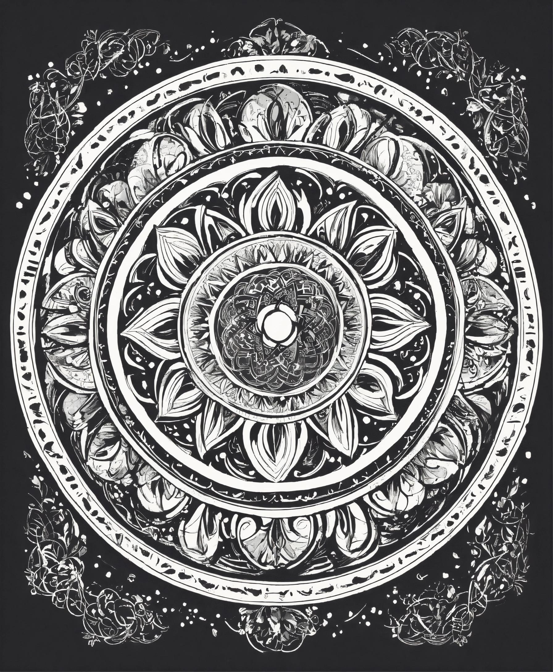 Perfect drawing of a magical circle mandala white symbol with few strokes and forms