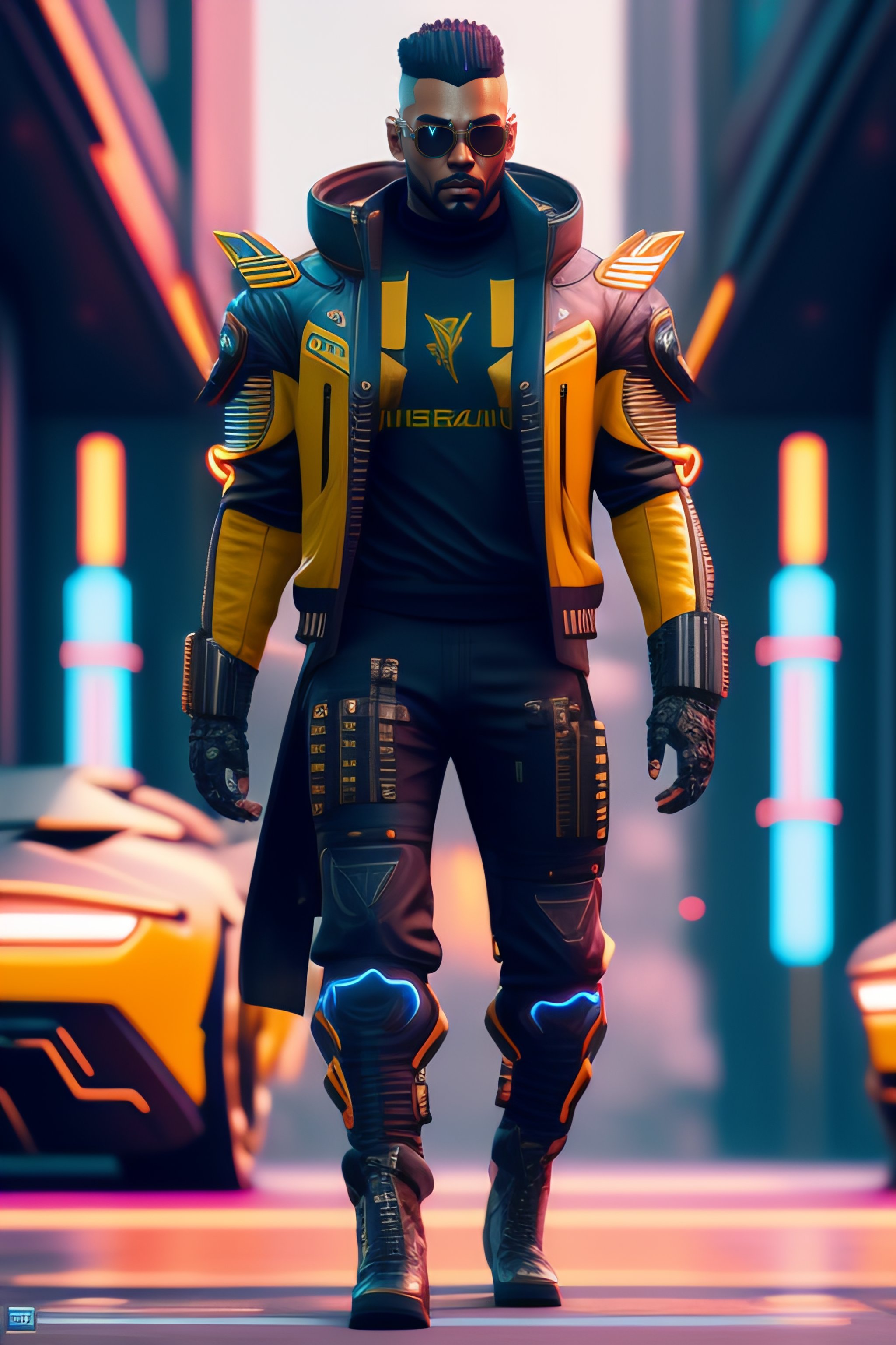 Cyberpunk 2077 full oufit on male character, fhd, unreal engine 5, trending on artstation, intricate detail, futuristic fashion, cyberpunk fashion