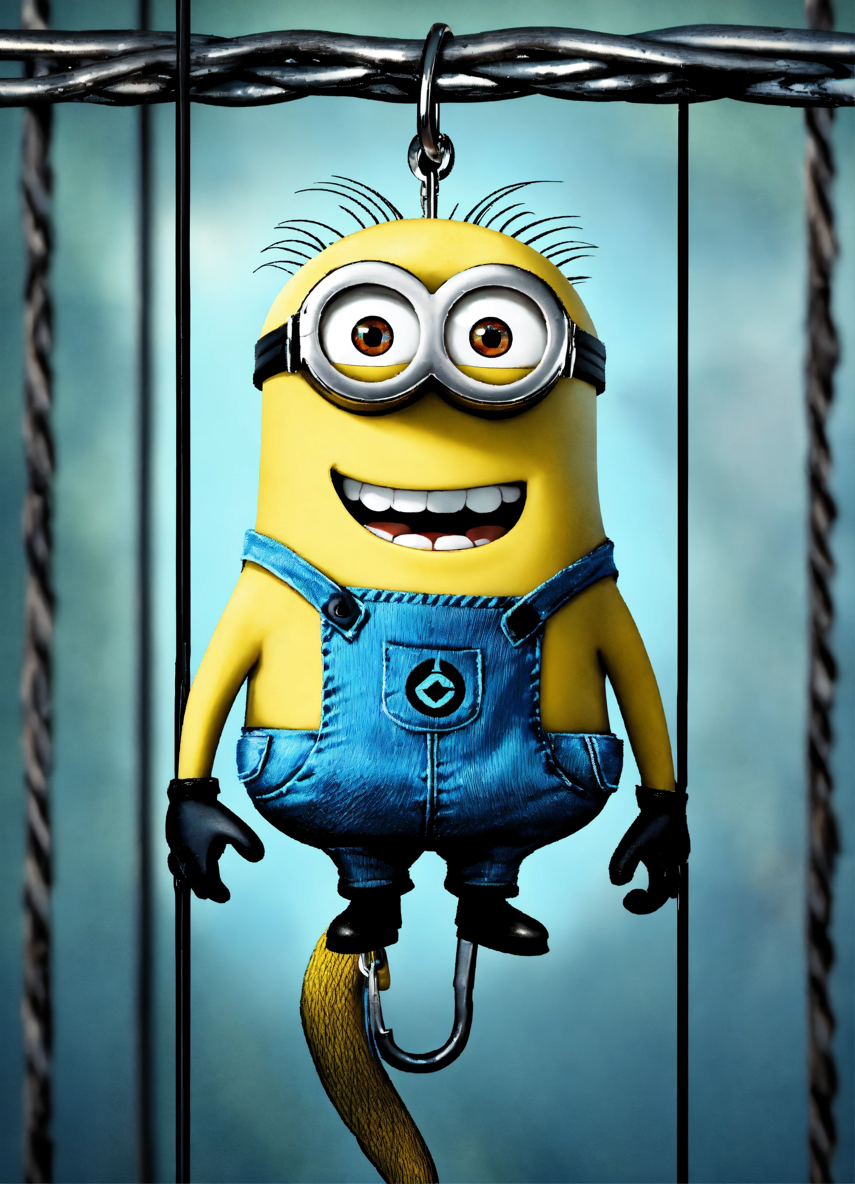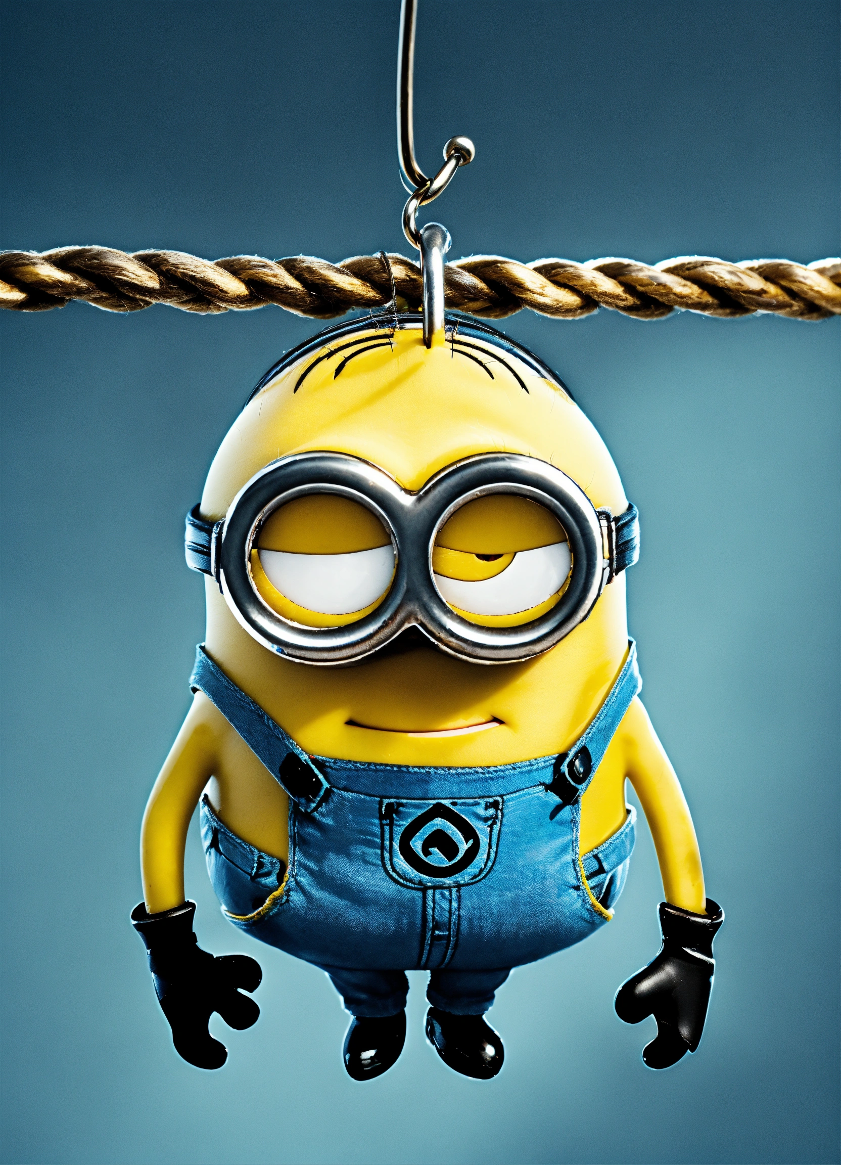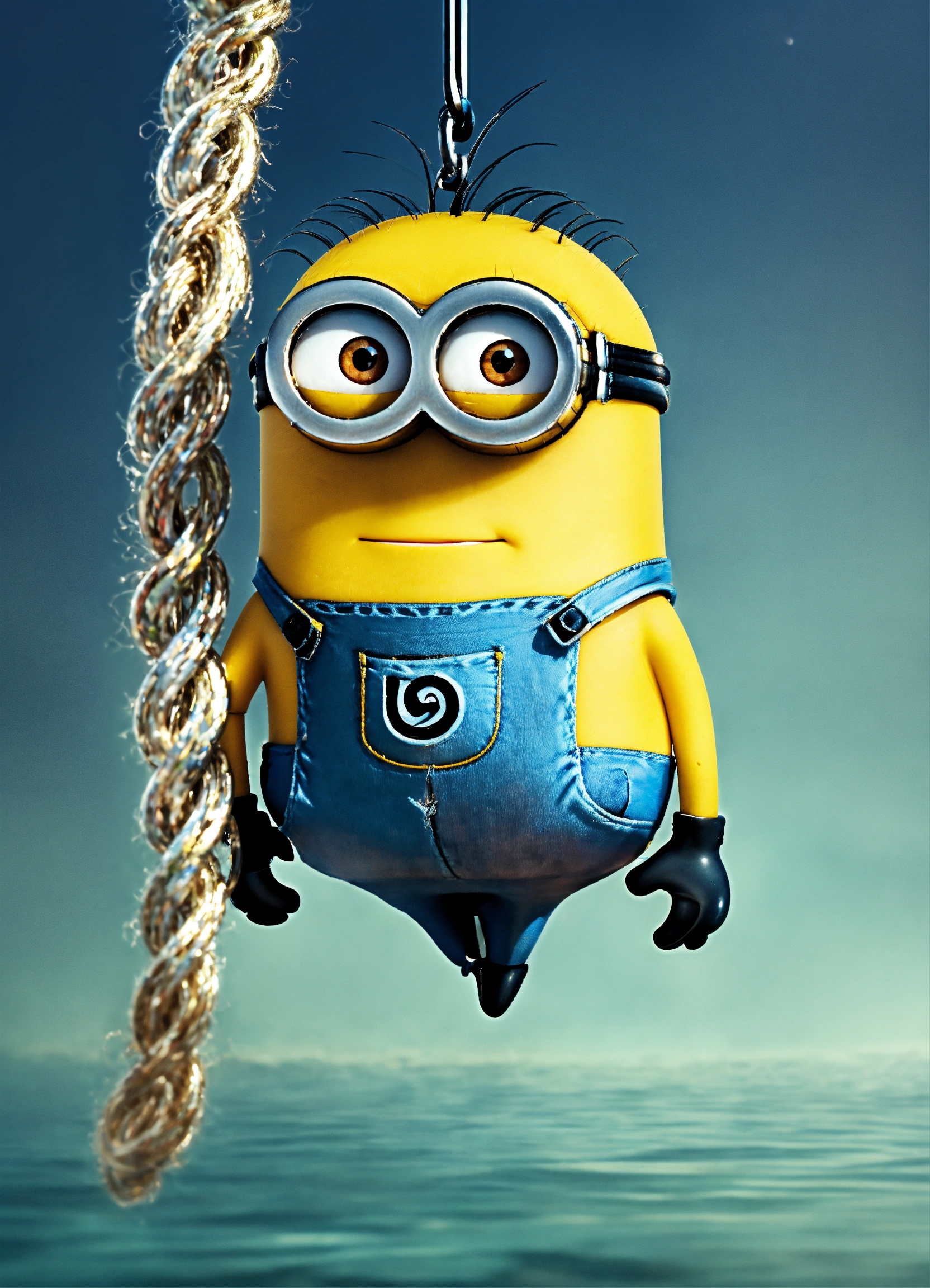 A minion hanging on a fishhook