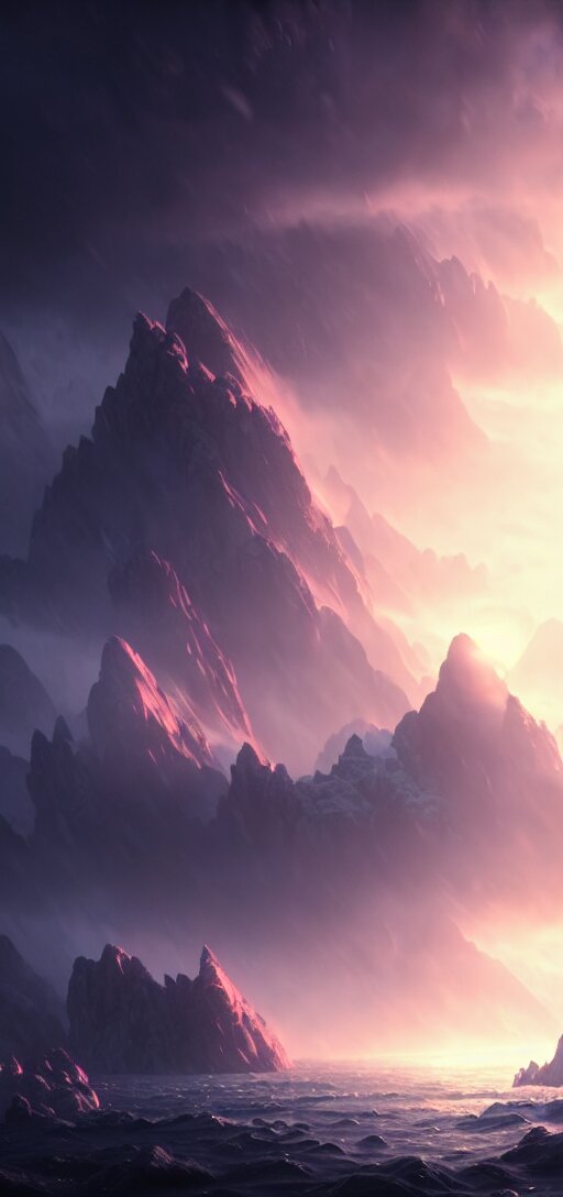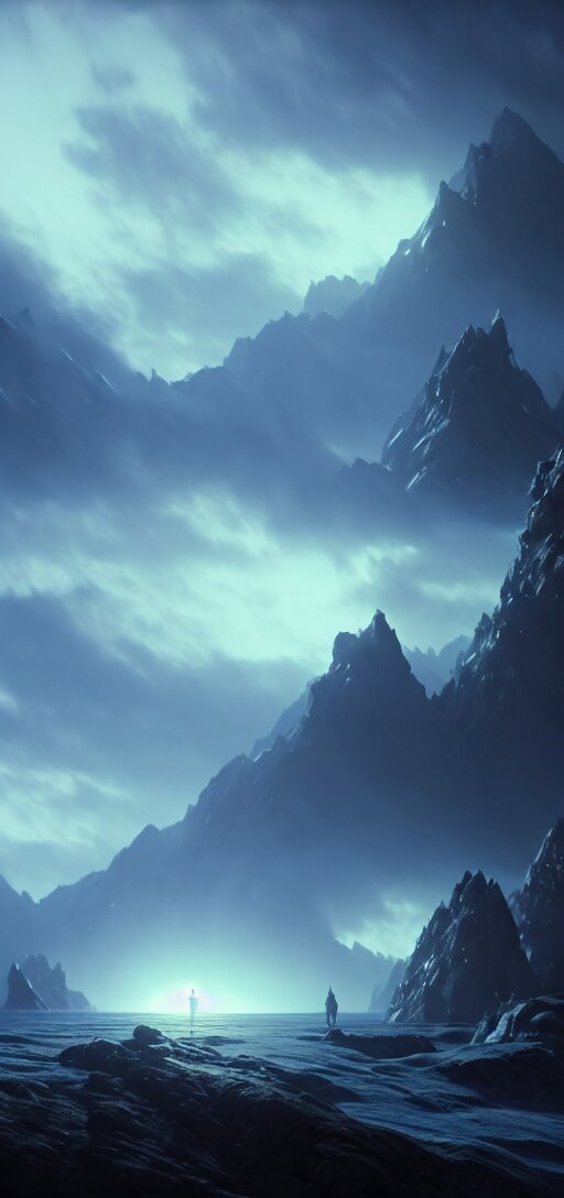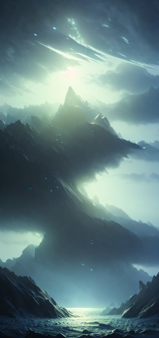 Octane render uhd, filmic lighting, cinematic art shot, hyperrealistic, hyperdetailed, super detailed, 8 k, high resolution, alien fodd on a plate, 8 k uhd matte painting by ross tran and ivan aivazovsky, mega high white mountain, midnight