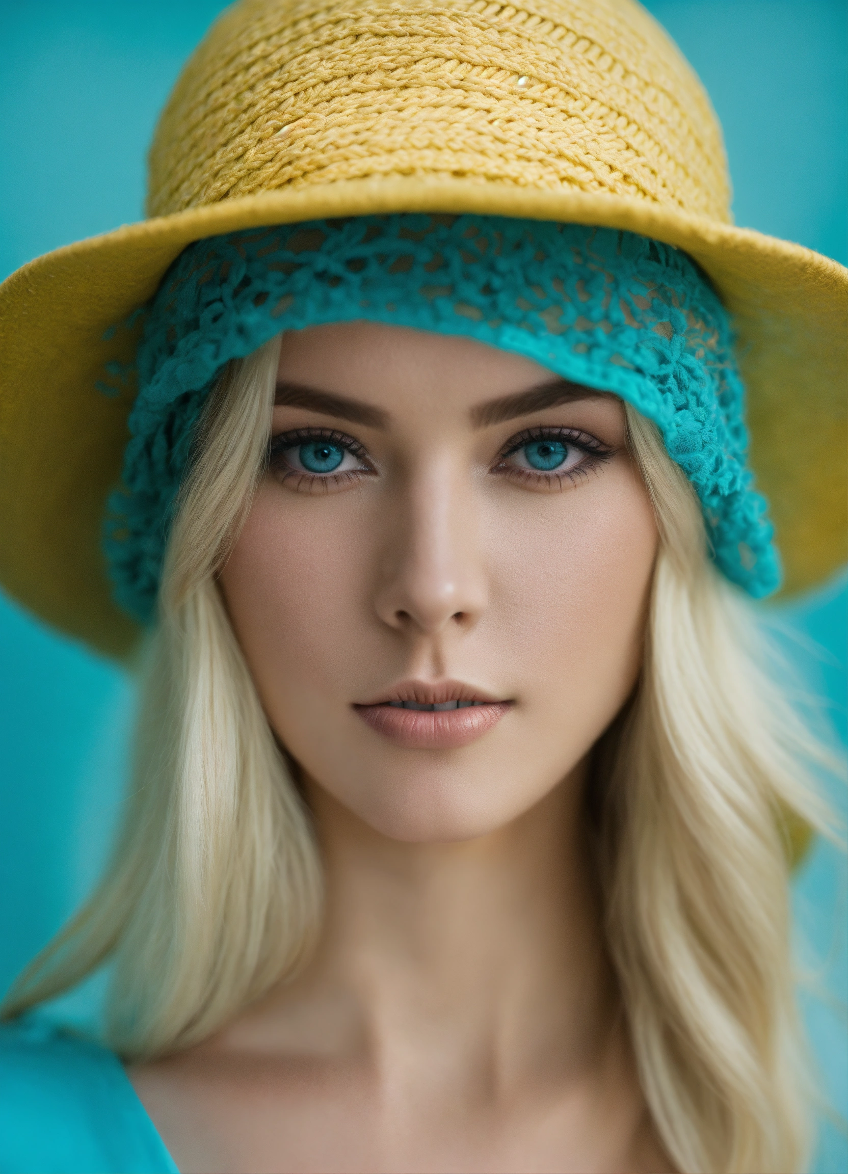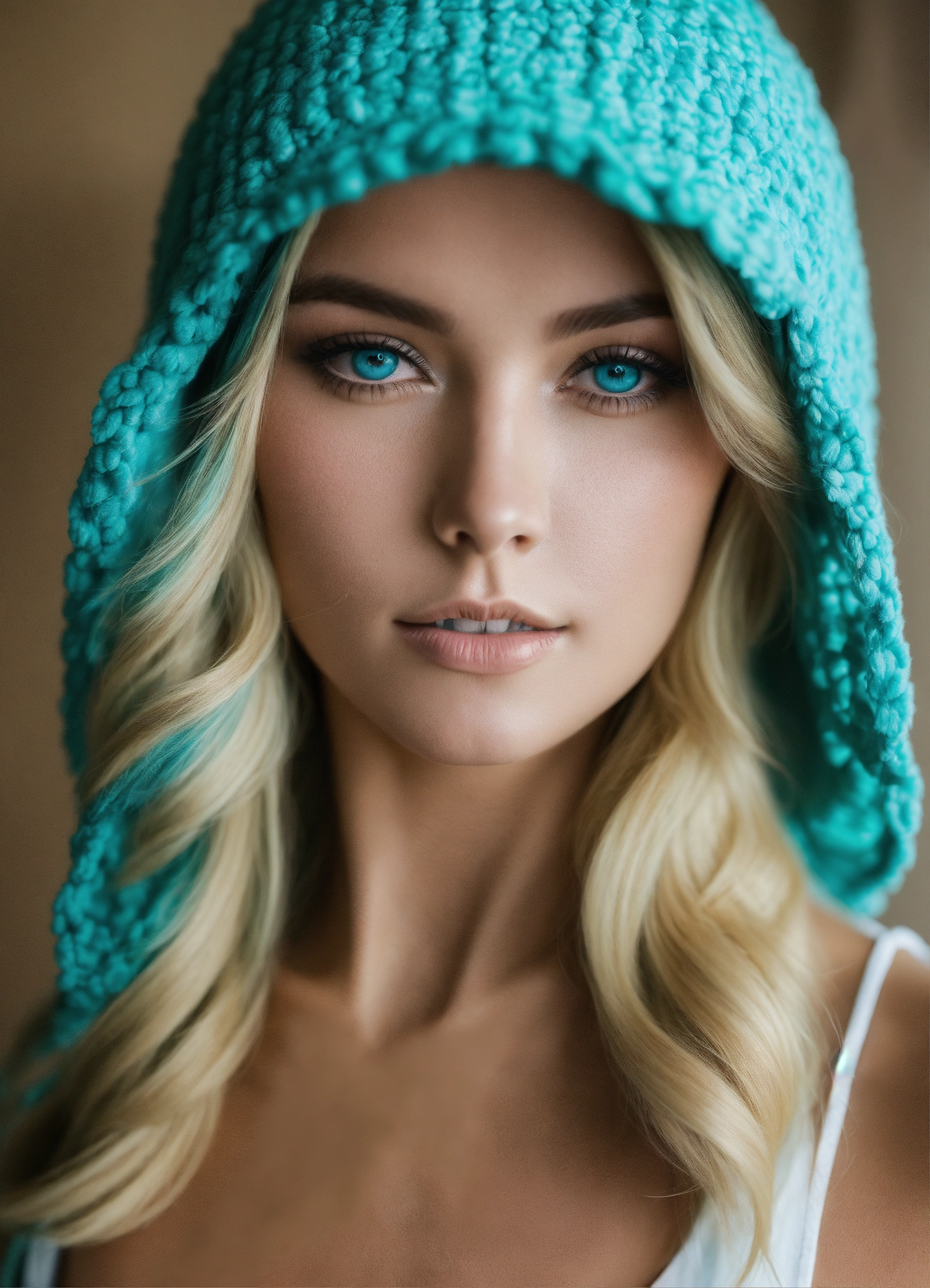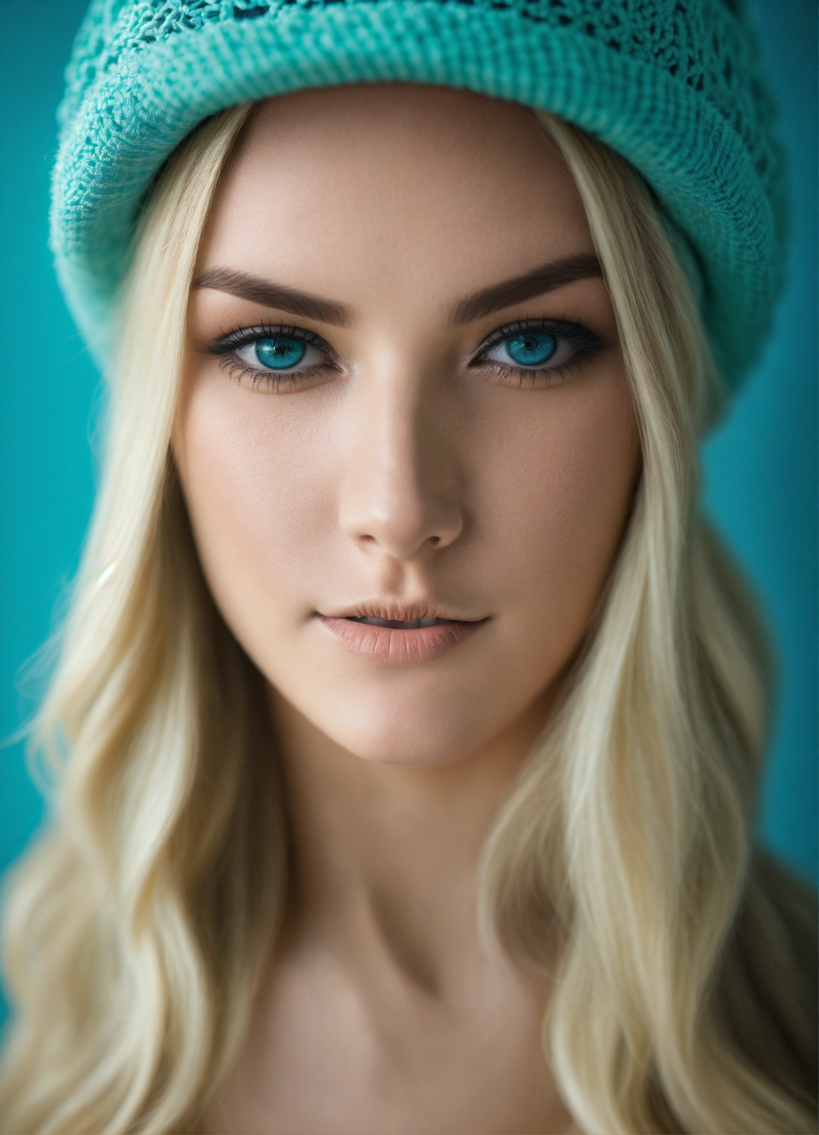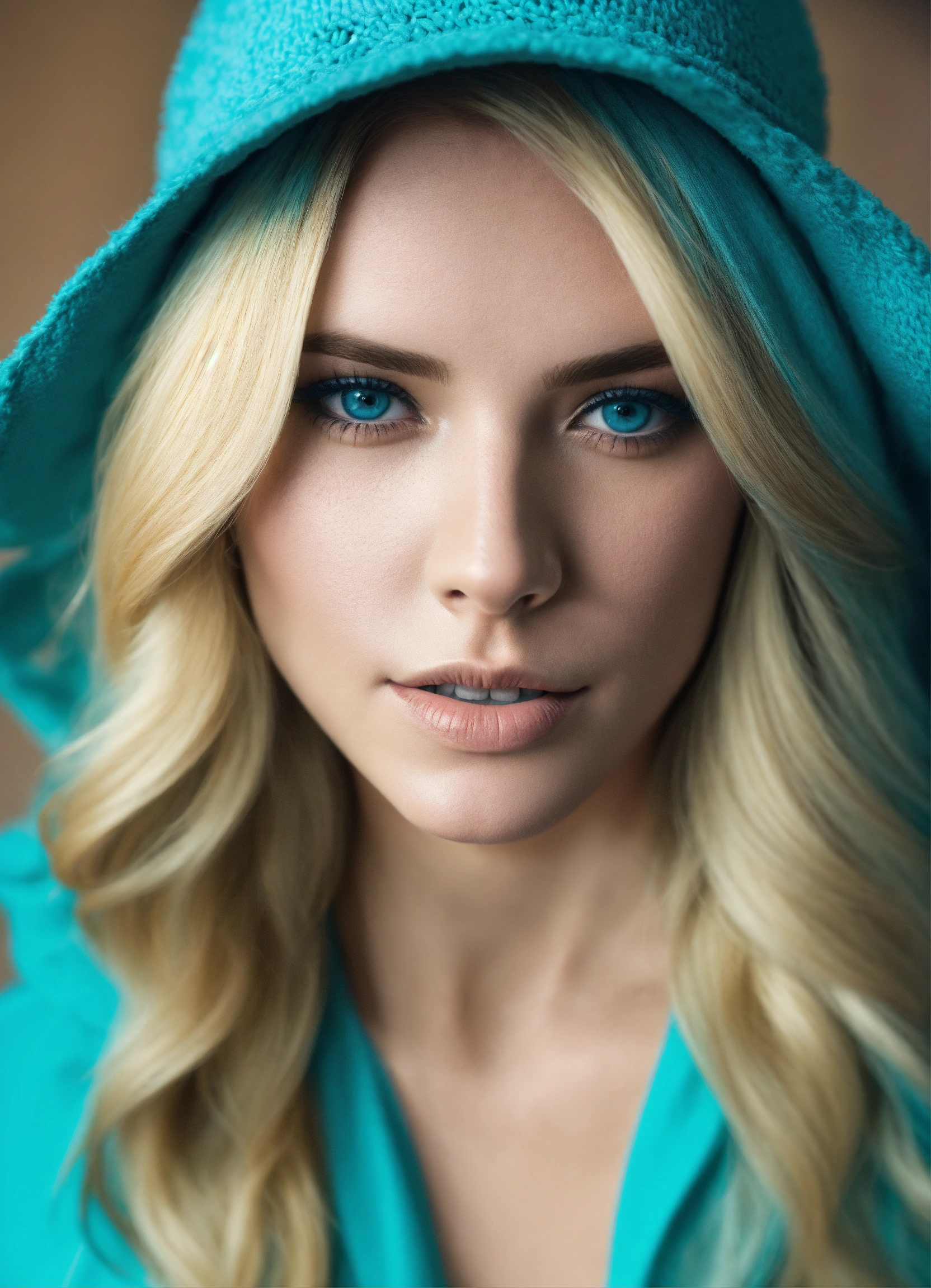 Femme blonde magnifique aux yeux bleu turquoise en amande. d'une poitrine bonnet d, vu de la tête aux pieds. en 4k
