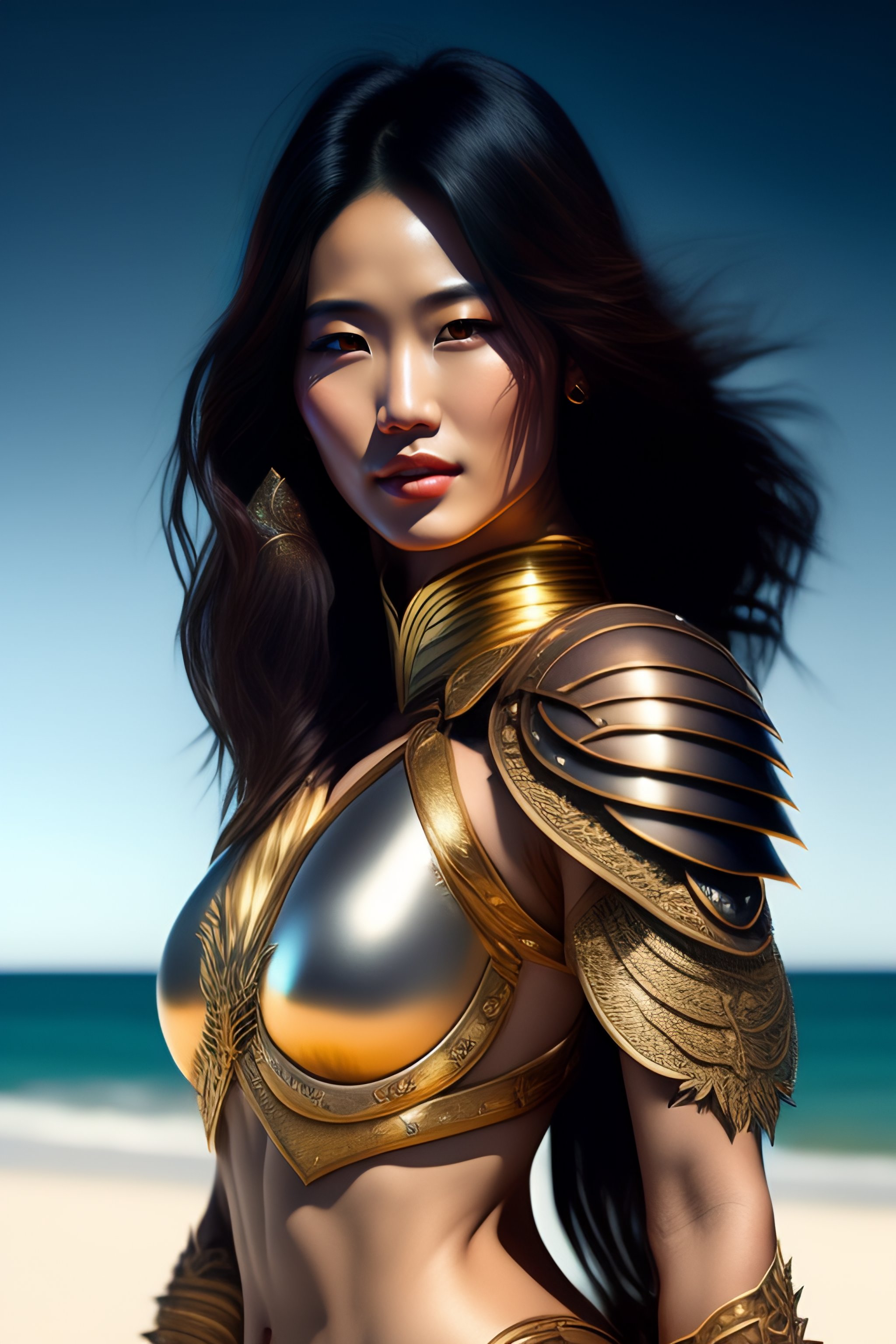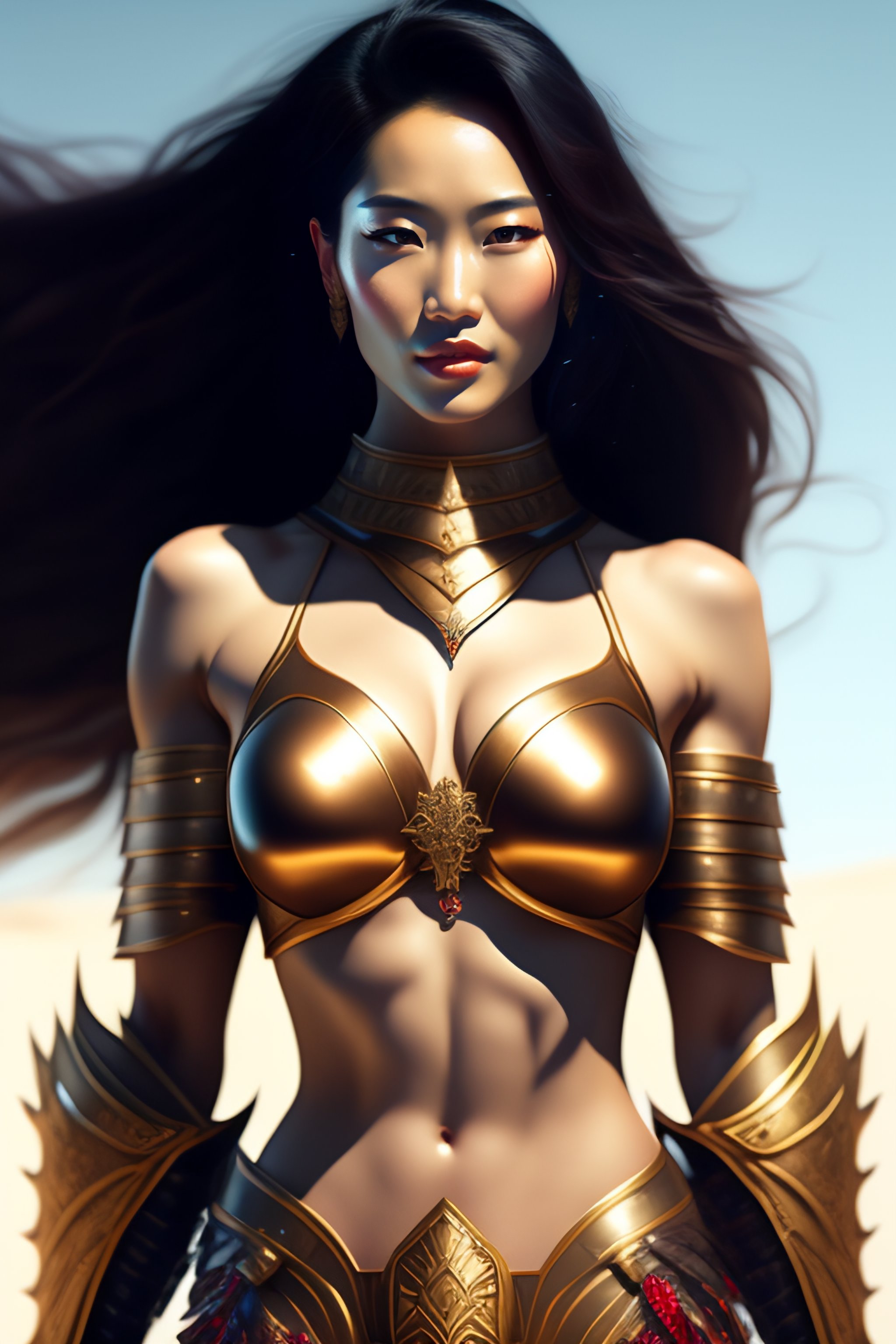Beautiful portrait of claudia kim dressed in a bikini armor, beautiful barbarian, abdomen muscles, six packs, abs, sexy, dramatic lighting, intricate, wild, highly detailed, digital painting, artstation, concept art, smooth, sharp focus, illustration, art by artgerm and greg rutkowski and alphonse mucha, footage from space camera