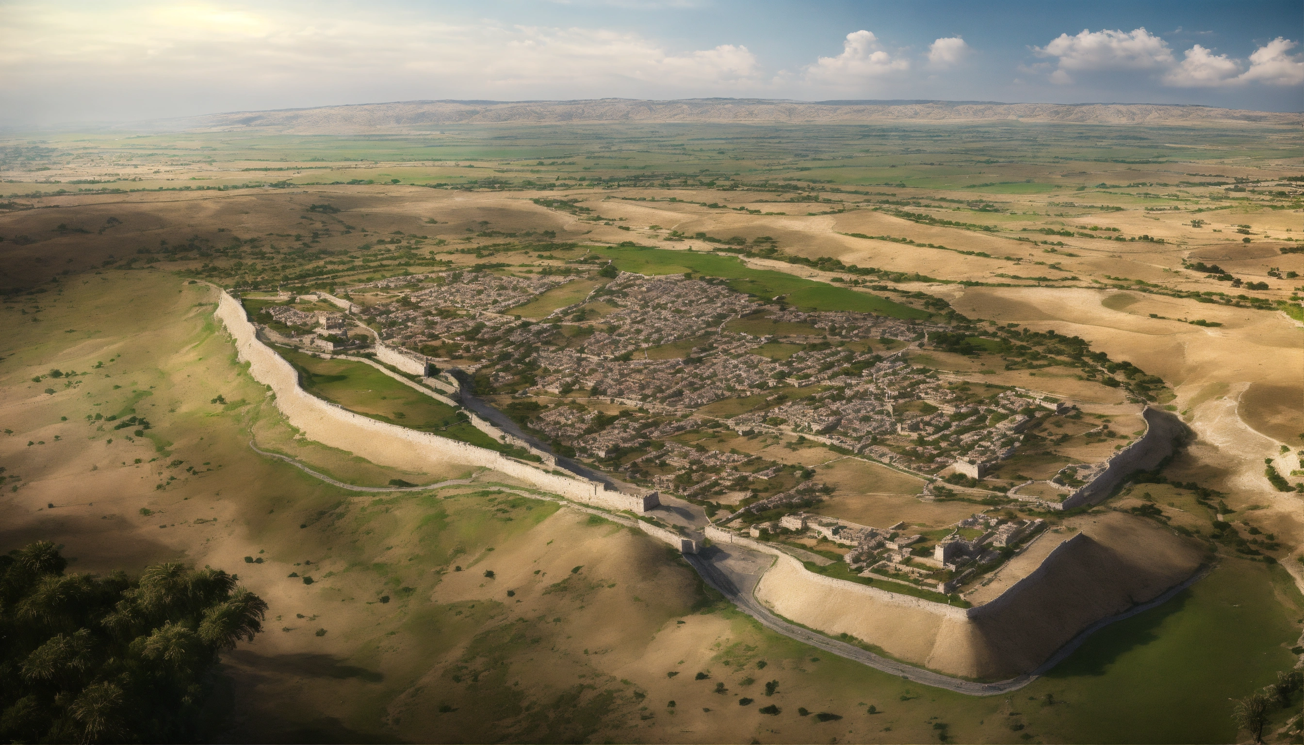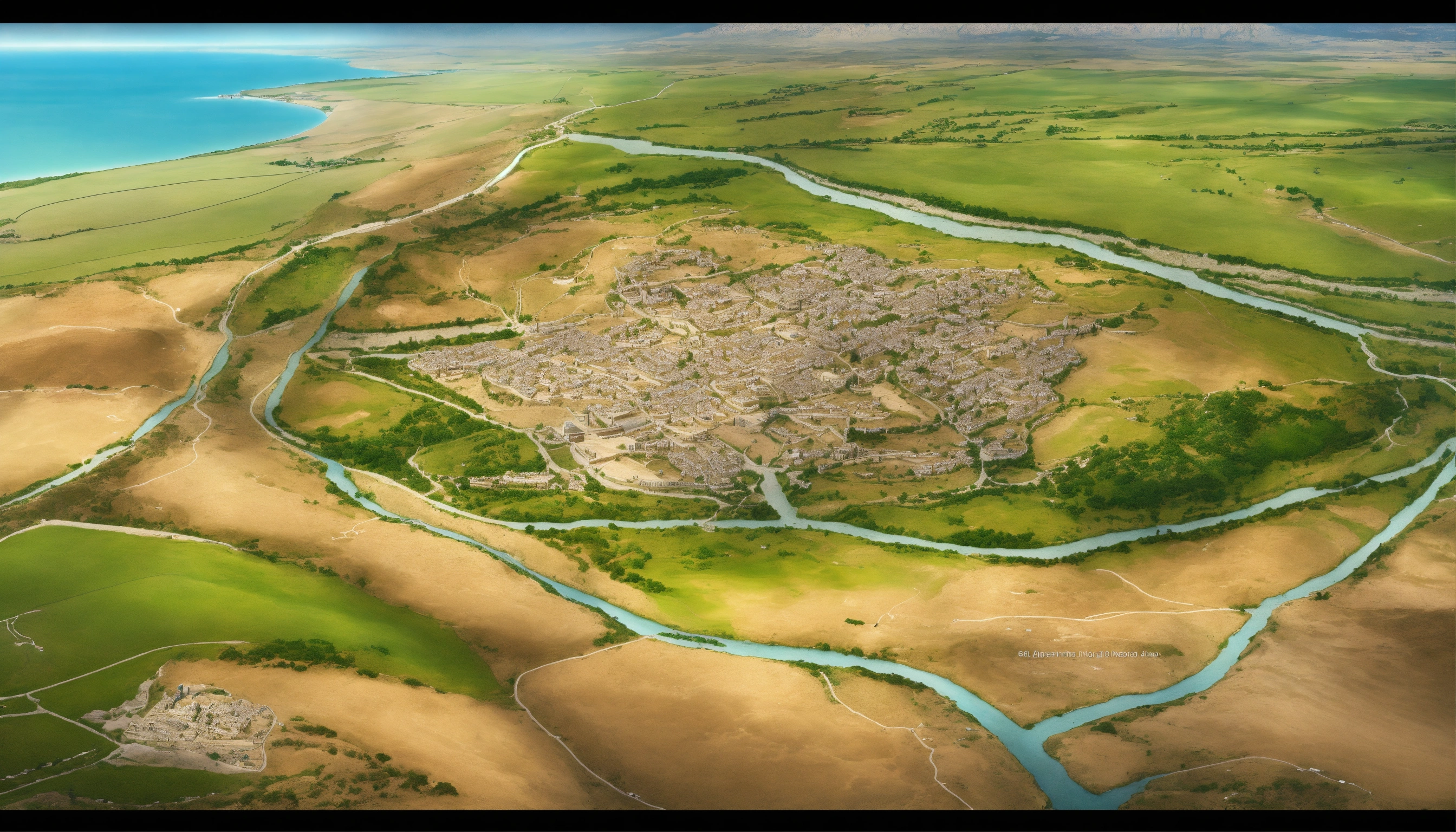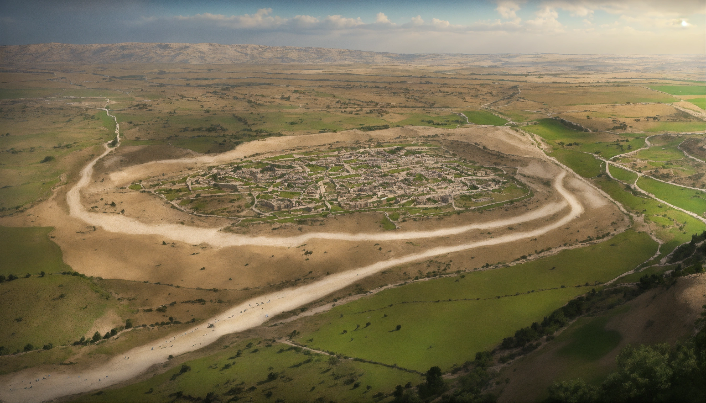 A map of tel megiddo in israel, 100 miles to the north and south. 4k quality. hdr animation. sharp edges to art.