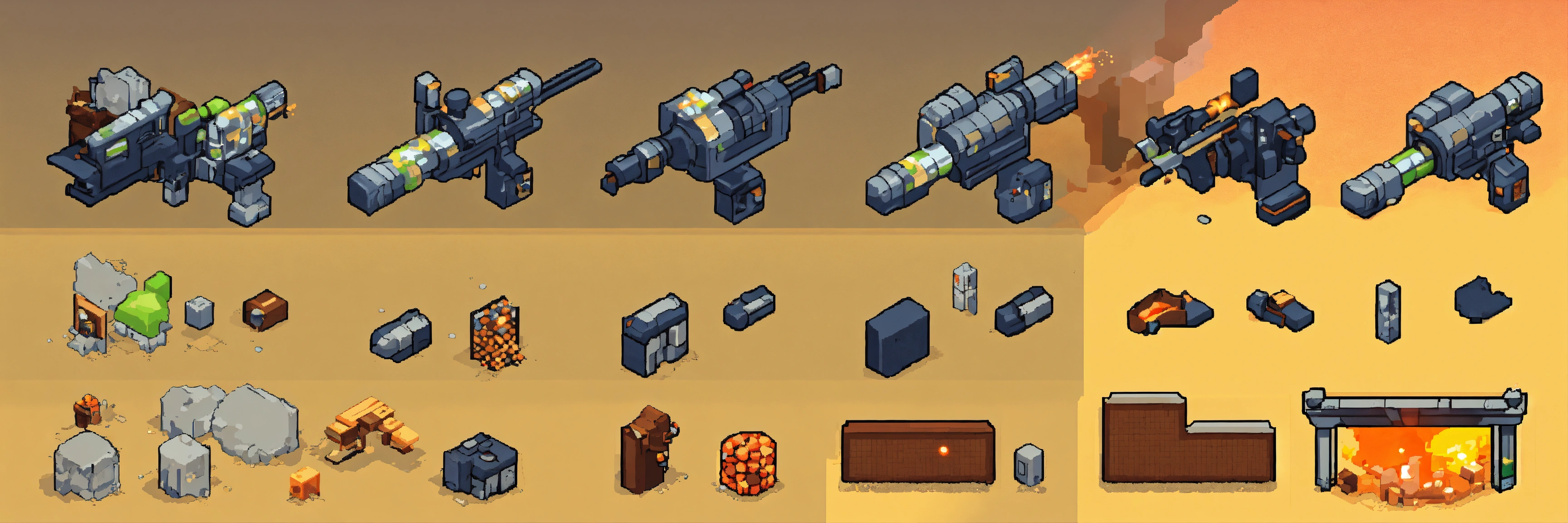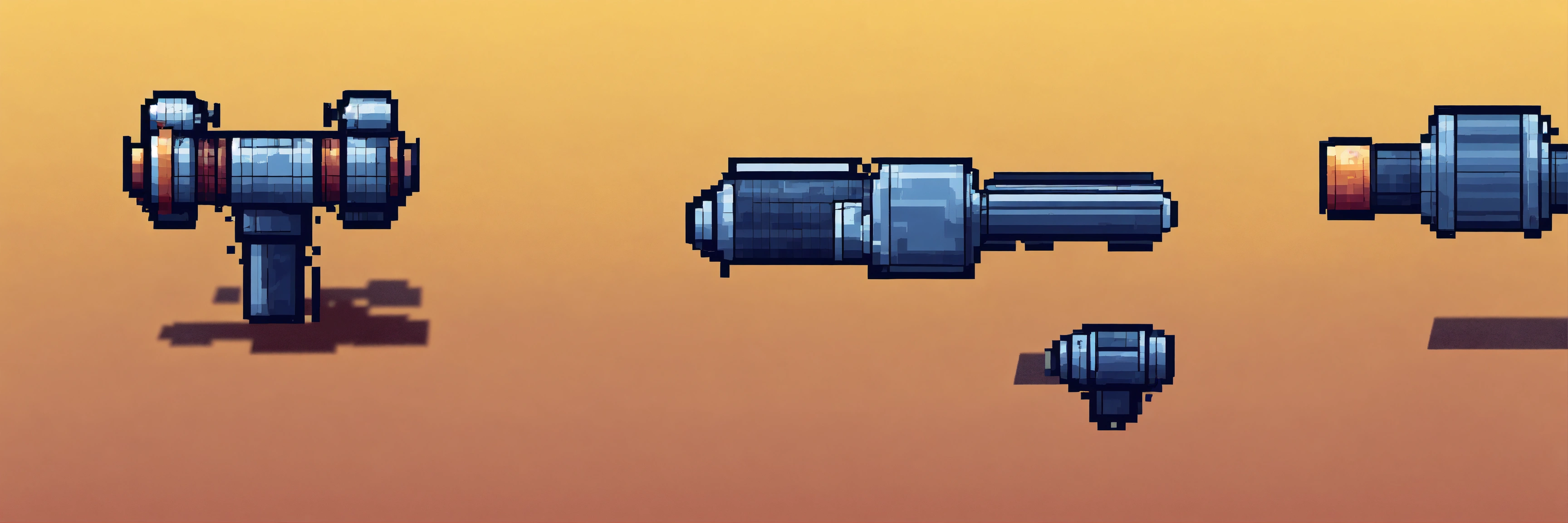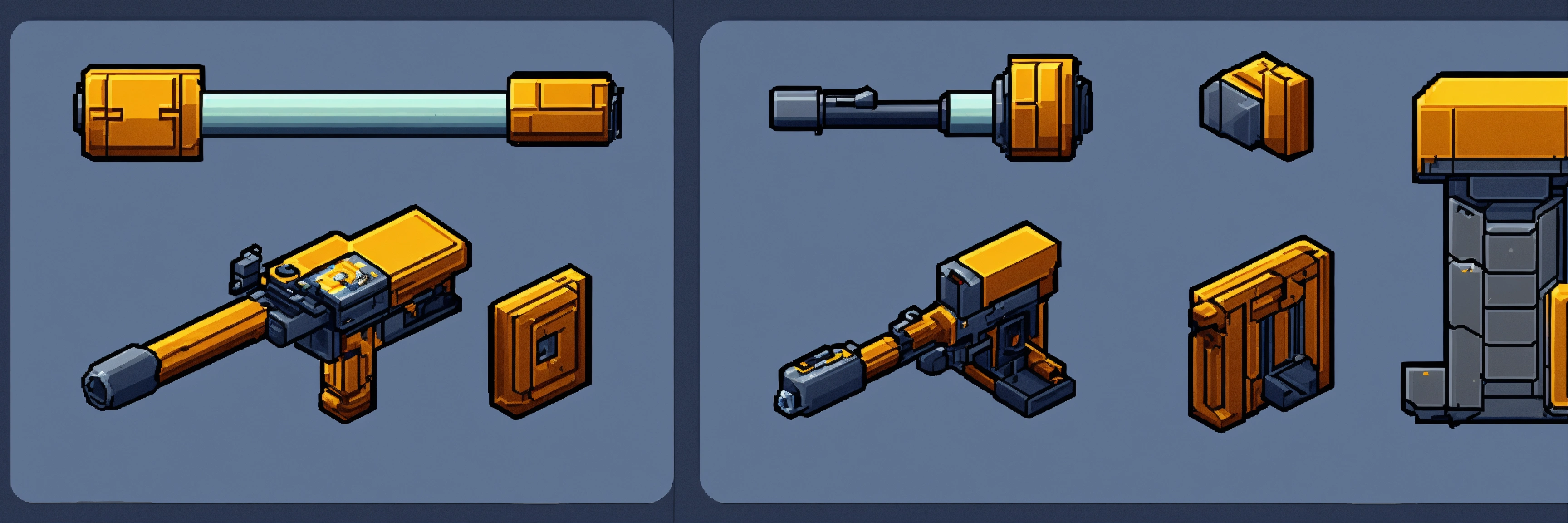 Isometric, upgrade progression of a weapon shot graphic, top down isometric mobile game extremely simplistic pixel art, low res blocky